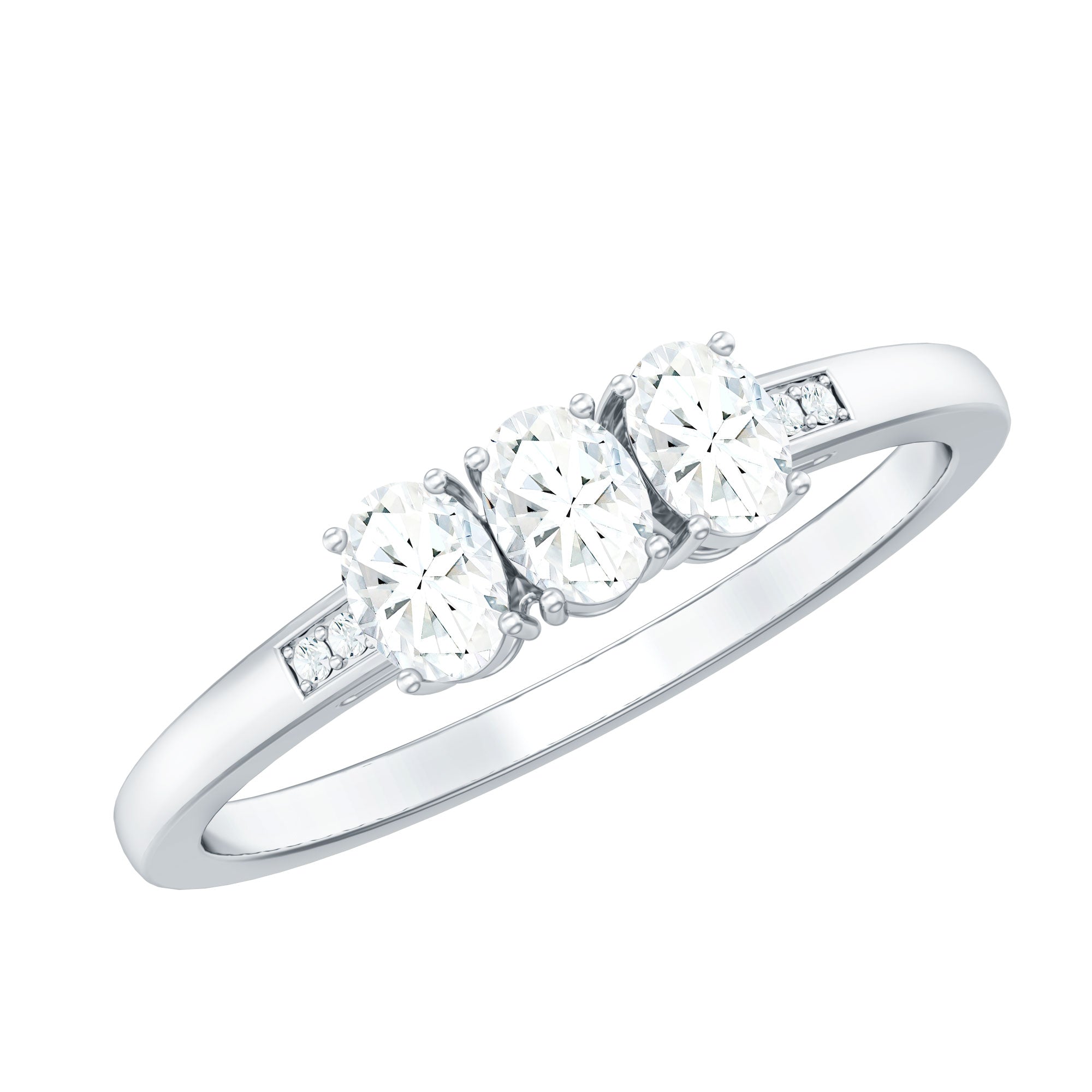 A symbol of love and commitment, the Moissanite 3 Stone Ring beautifully represents the journey shared between two hearts. Featuring three sparkling 3X5 MM oval shaped moissanites set in secure prong setting, this Trilogy Ring captures the past, present, and future of your relationship. Small round moissanite stones line the sides of the band, adding extra shine and elegance to the design. Each moissanite sparkles with D color and VS1 clarity, making this Oval Three Stone Ring a stunning choice to symbolize promises made and memories created together. The simple yet elegant style of this Moissanite Promise Ring suits any taste, with a minimalist design that highlights the beauty of the stones while keeping a timeless look. Whether given as a vow to remain faithful or as a pledge to support each other through life’s journey, this Oval Moissanite Ring stands for trust, loyalty, and devotion. Perfect for engagements, anniversaries, or special milestones, this Past Present and Future Ring offers a meaningful way to express your feelings.