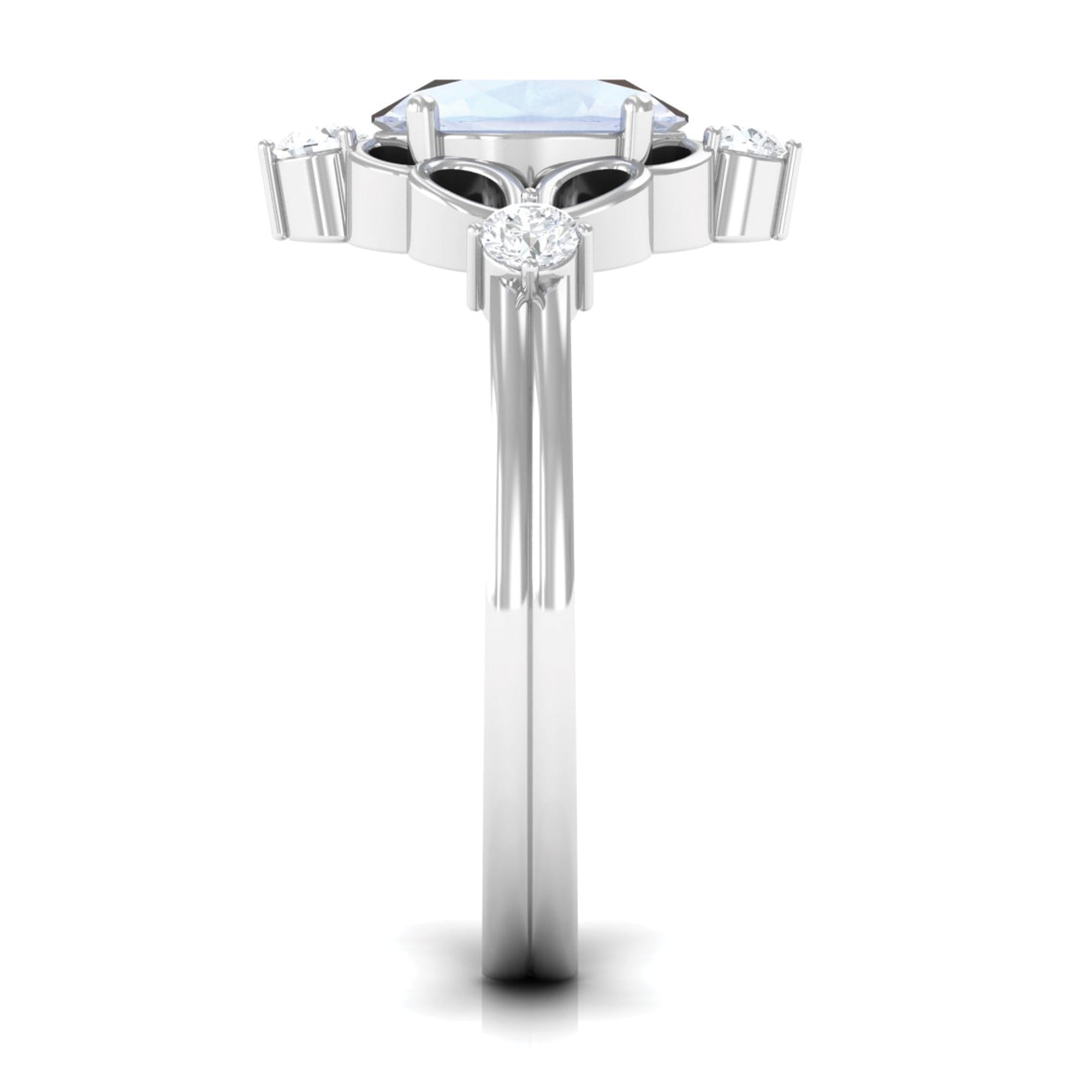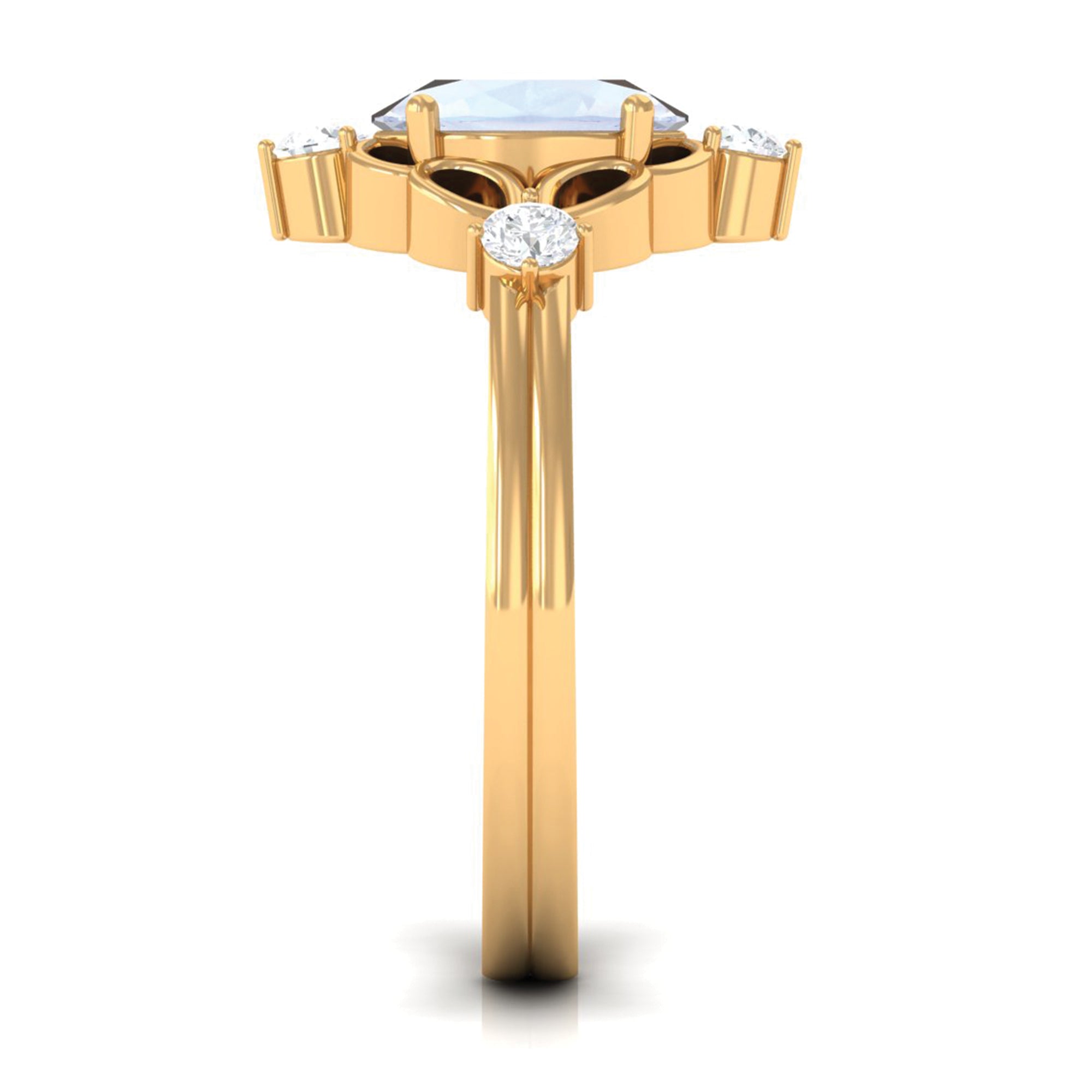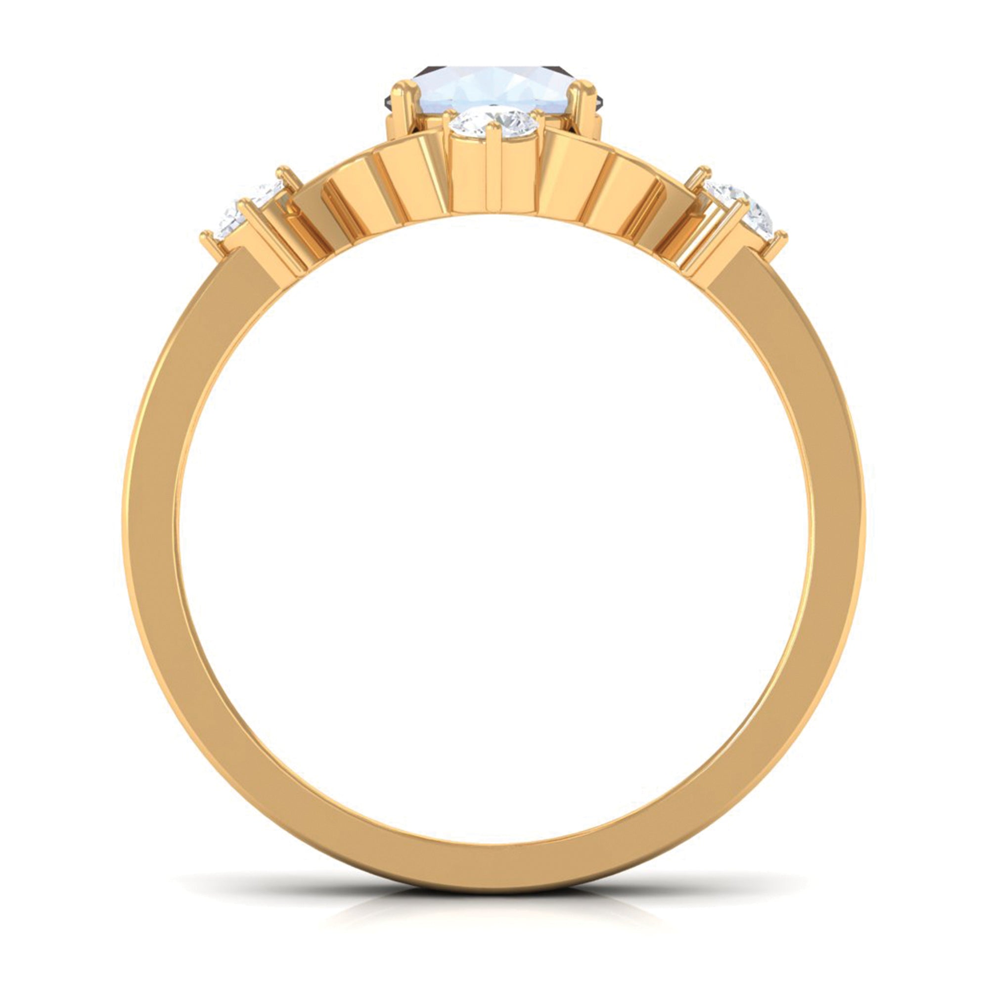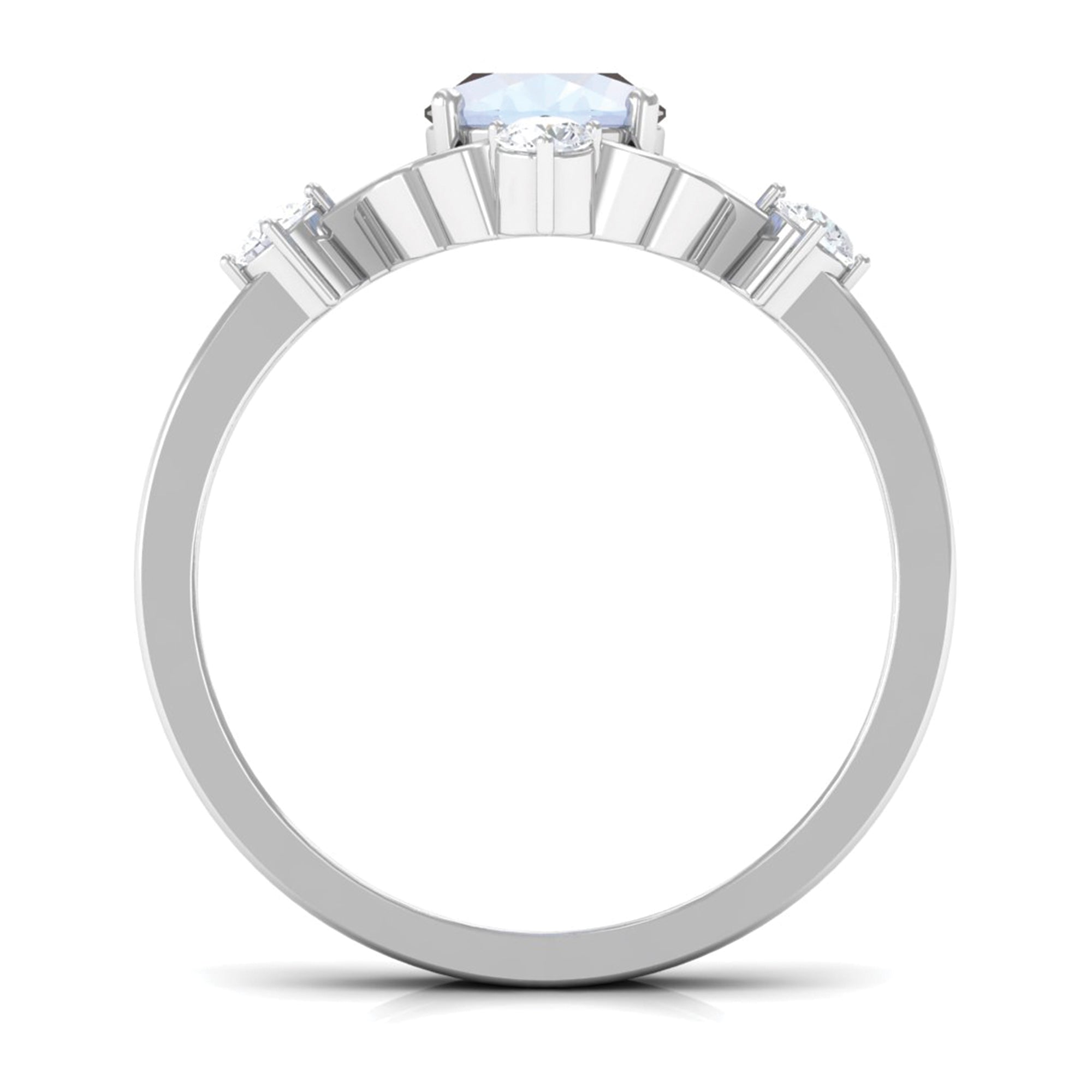 An oval moonstone sits majestically at the center of this beautifully crafted cocktail ring that exudes a surreal charm. The ornate metal detailing is accompanied with a round Diamond lends a hint of exquisiteness to this design. The center stone is prong set and draws the eye. With its luminous shank, the moonstone solitaire ring is sure to add a bit of sparkle to your look.