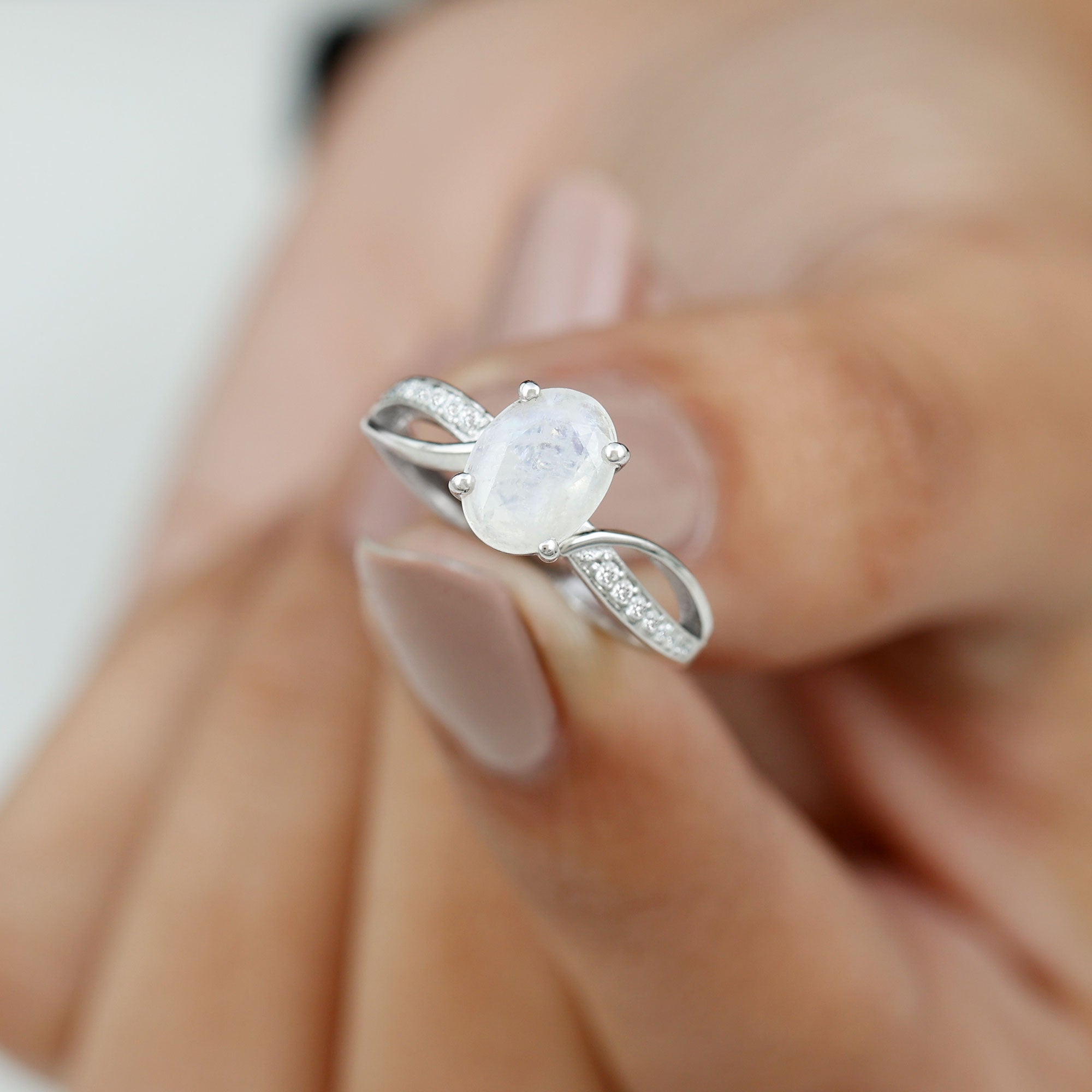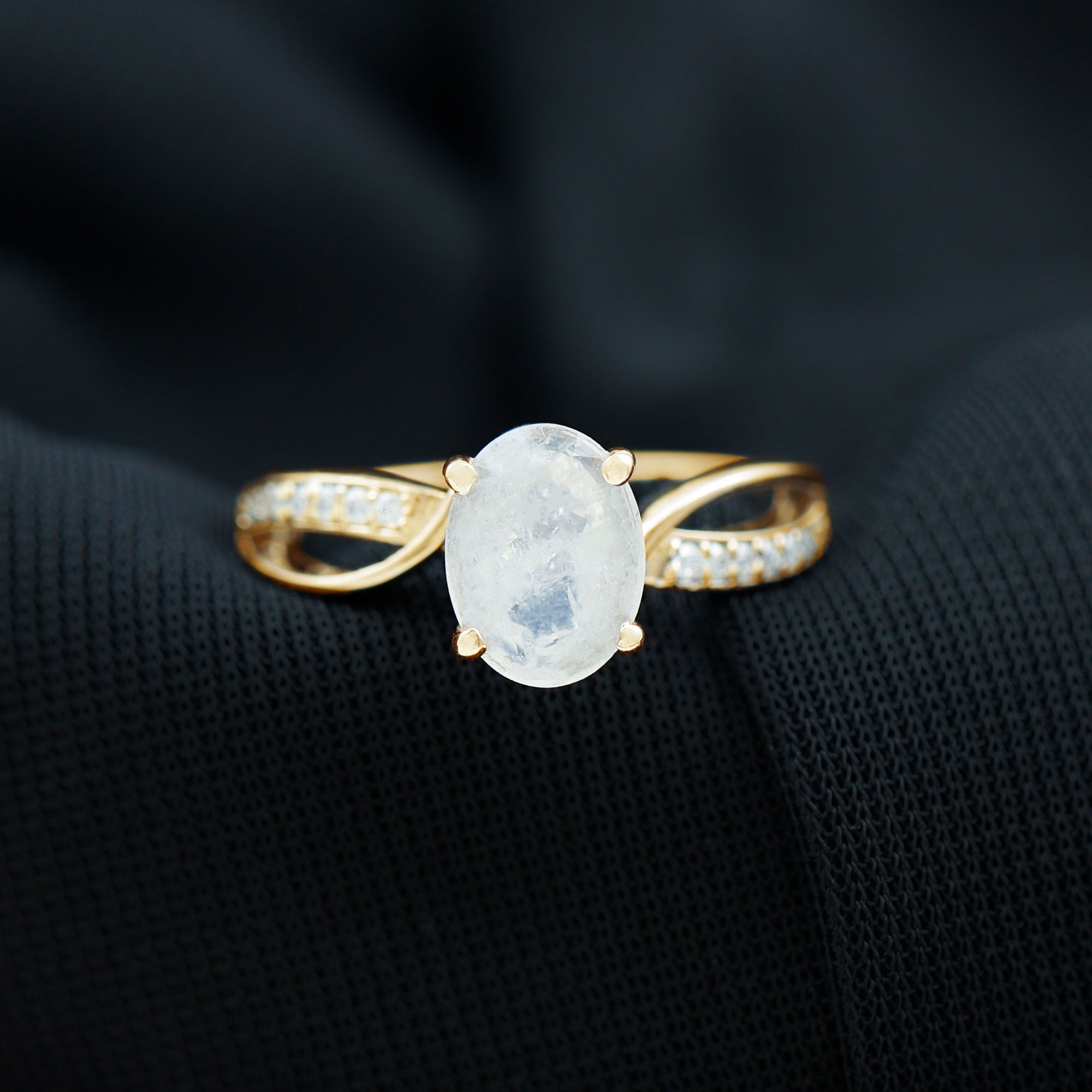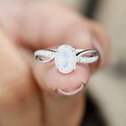 Oval Moonstone Solitaire Engagement Ring with Split Shank