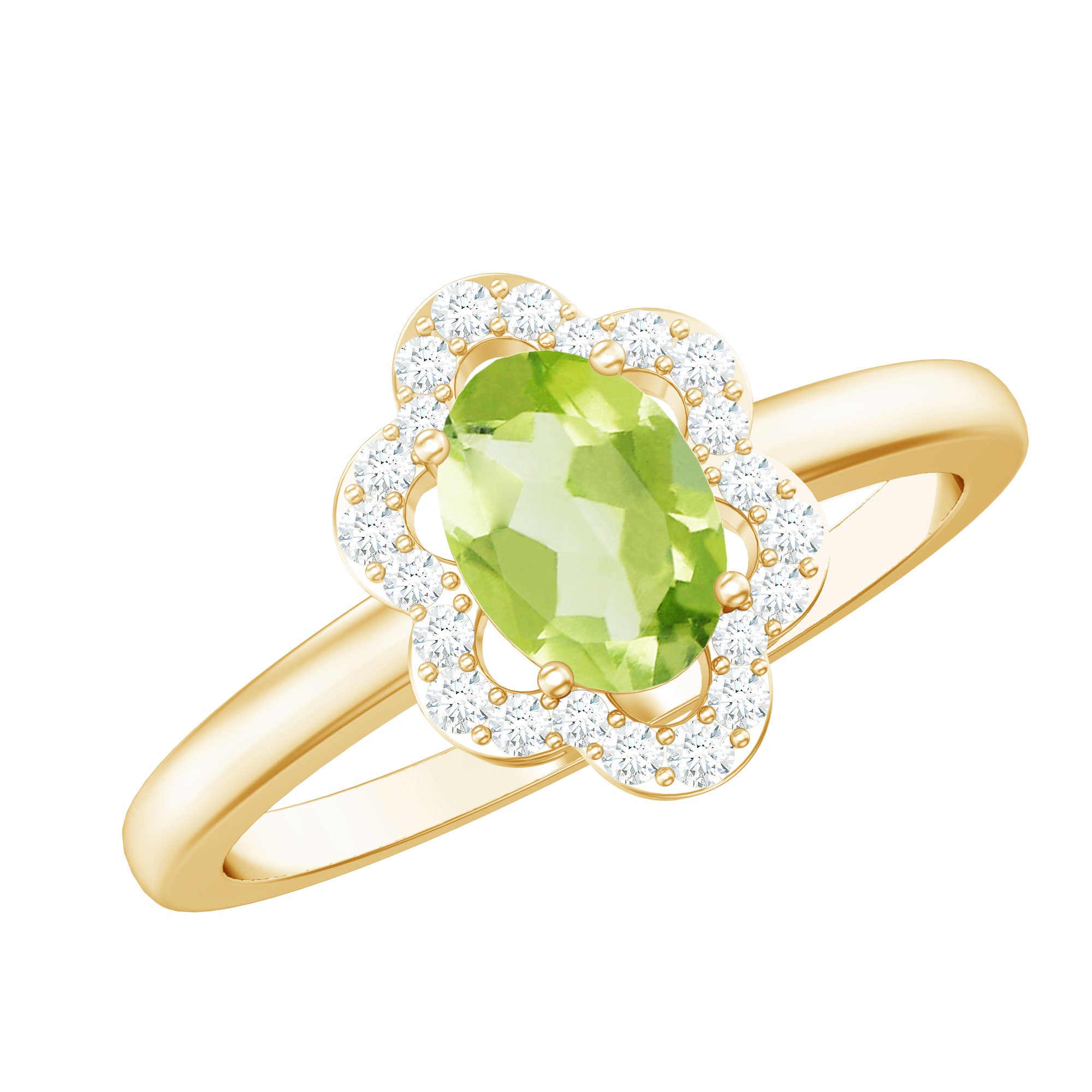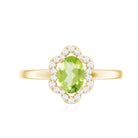 Oval Peridot Cocktail Flower Ring with Diamond