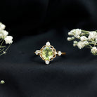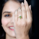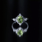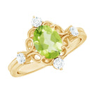 With a combination of elaborate detailing, round Diamond and a radiating oval peridot, the cocktail ring has everything you seek in a modish and contemporary piece of jewelry. The chartreuse hue of the peridot is sure to impress and stun everyone, regardless of the occasion. Secured in a prong setting, the peridot ring creates an effortlessly elegant solitaire style. Can be set in your preferred metal that adds some personal touches to the enchanting ring.