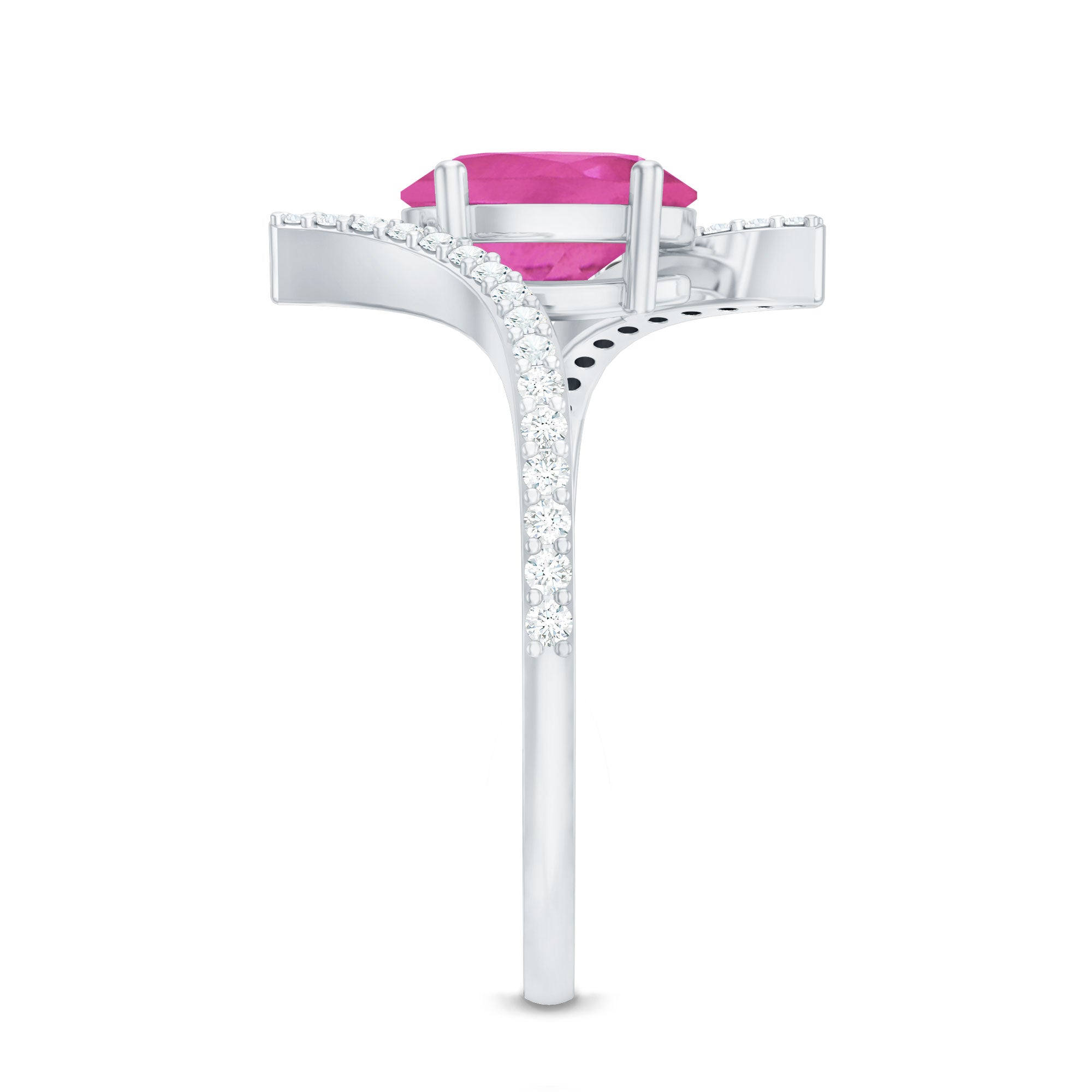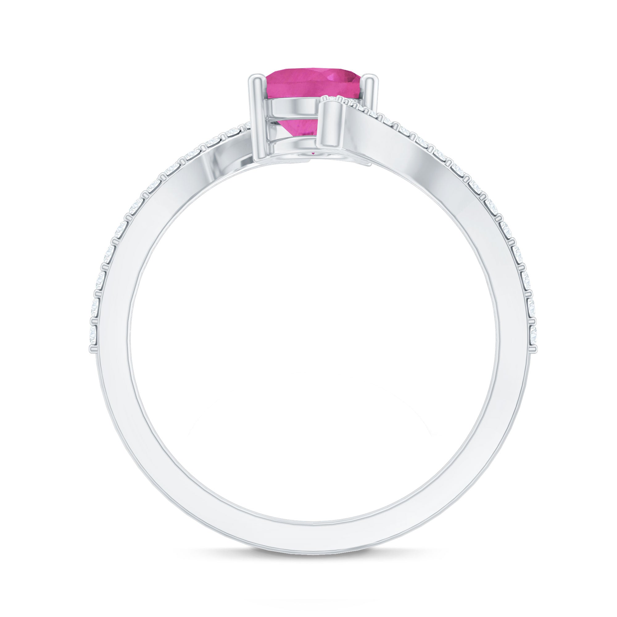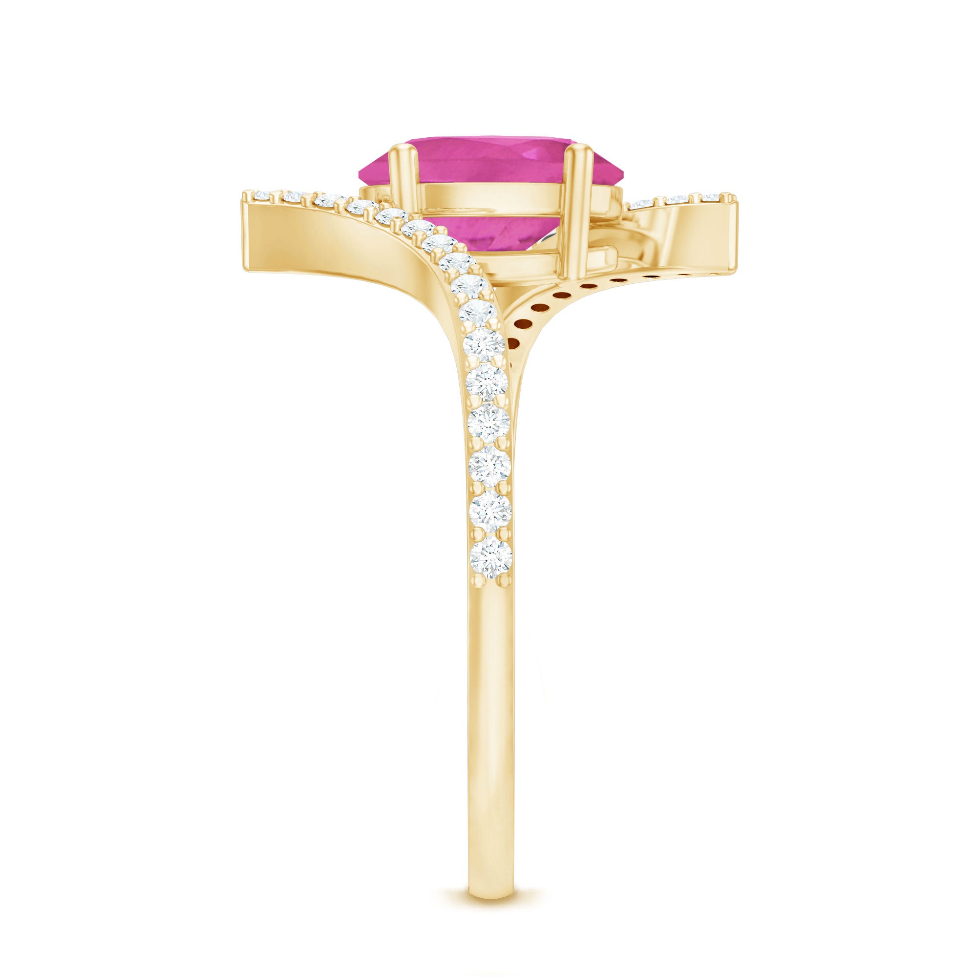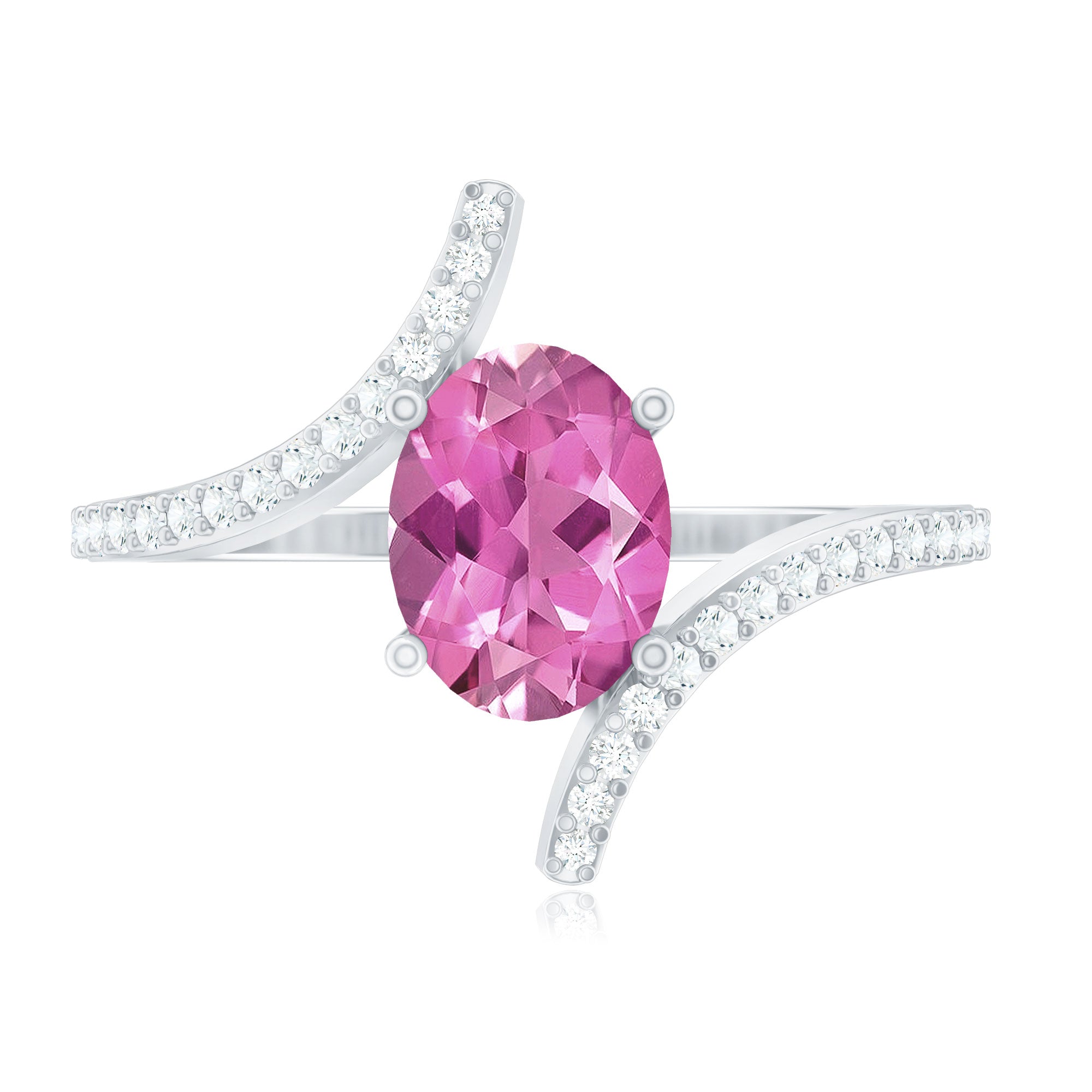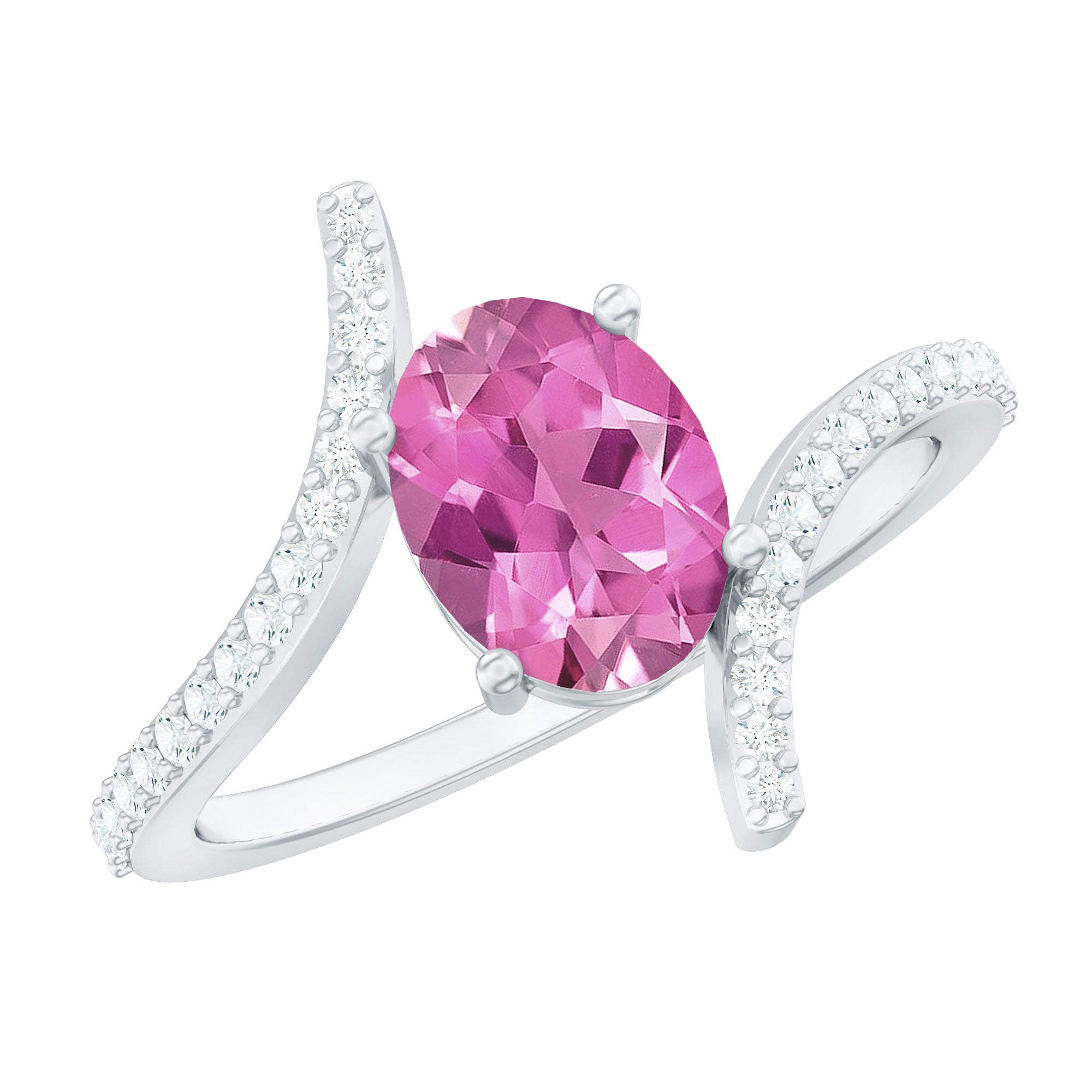 Oval Pink Tourmaline Solitaire Bypass Ring with Diamond