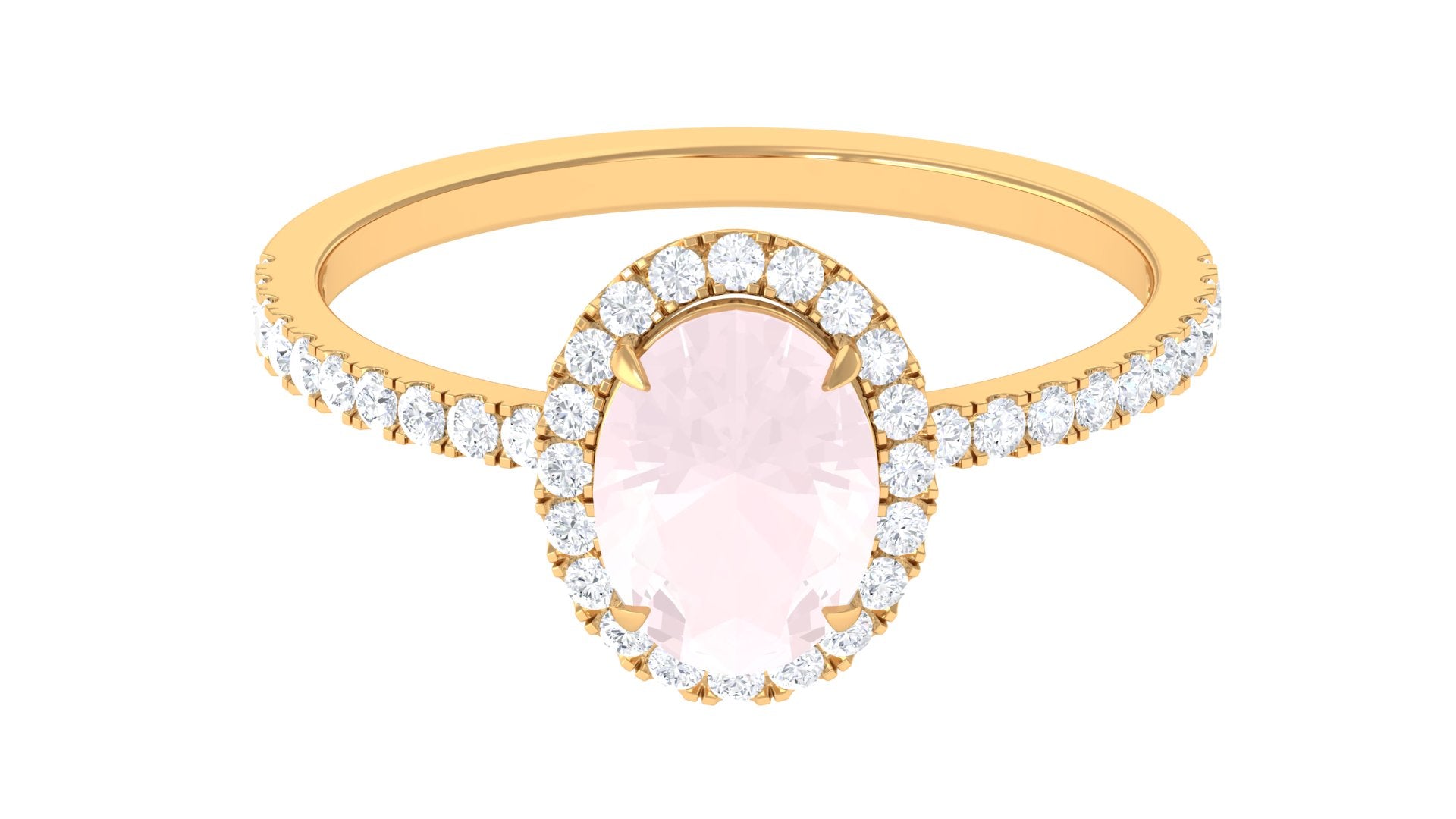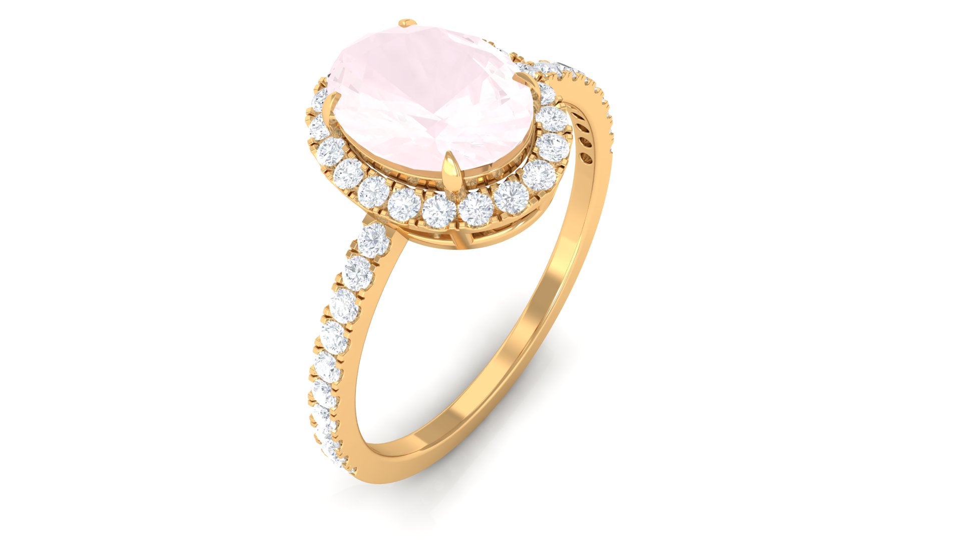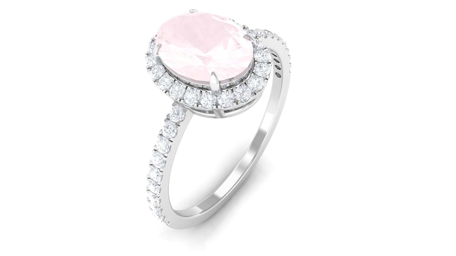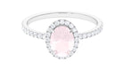 Oval Rose Quartz Halo Engagement Ring with Diamond