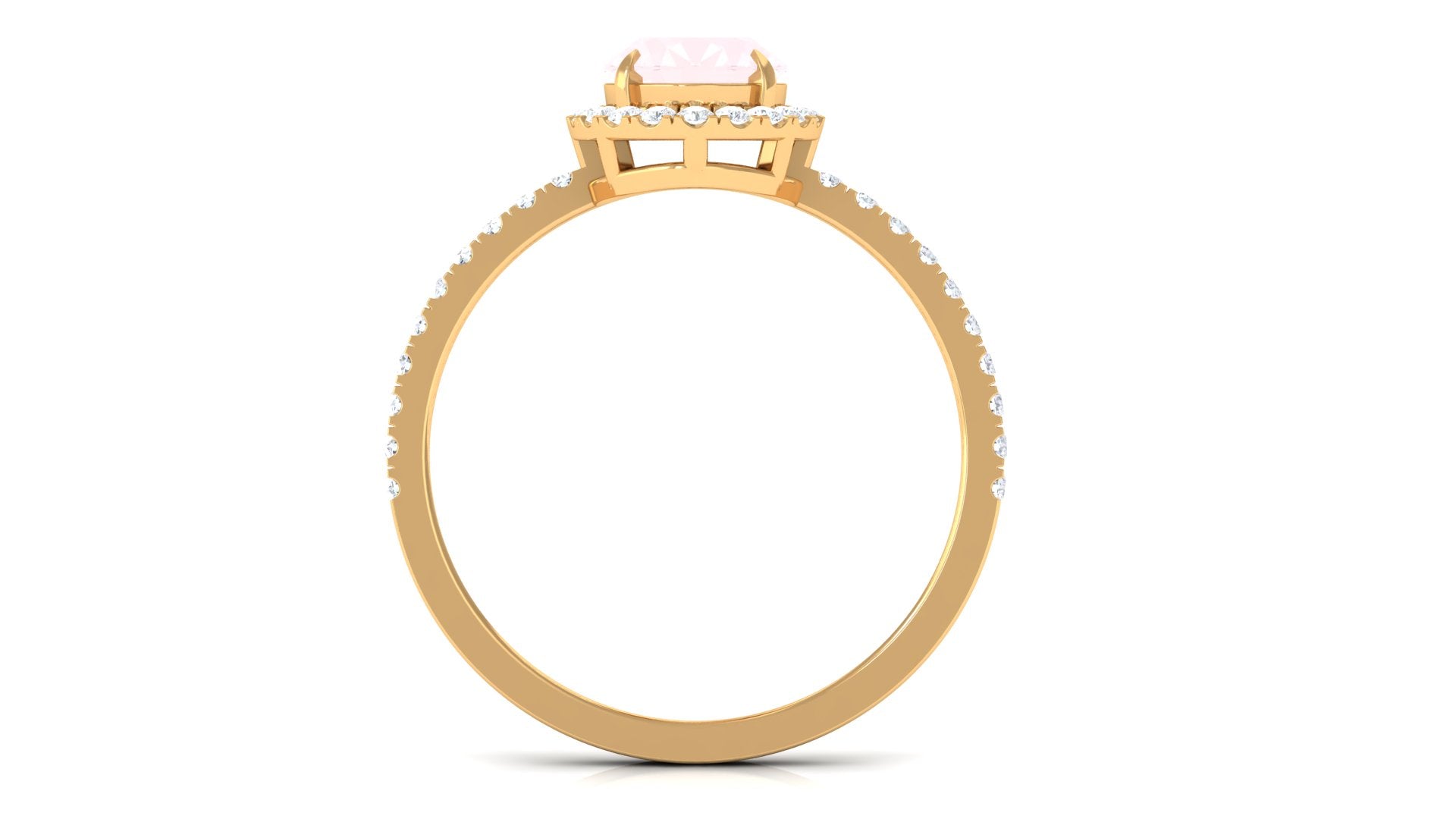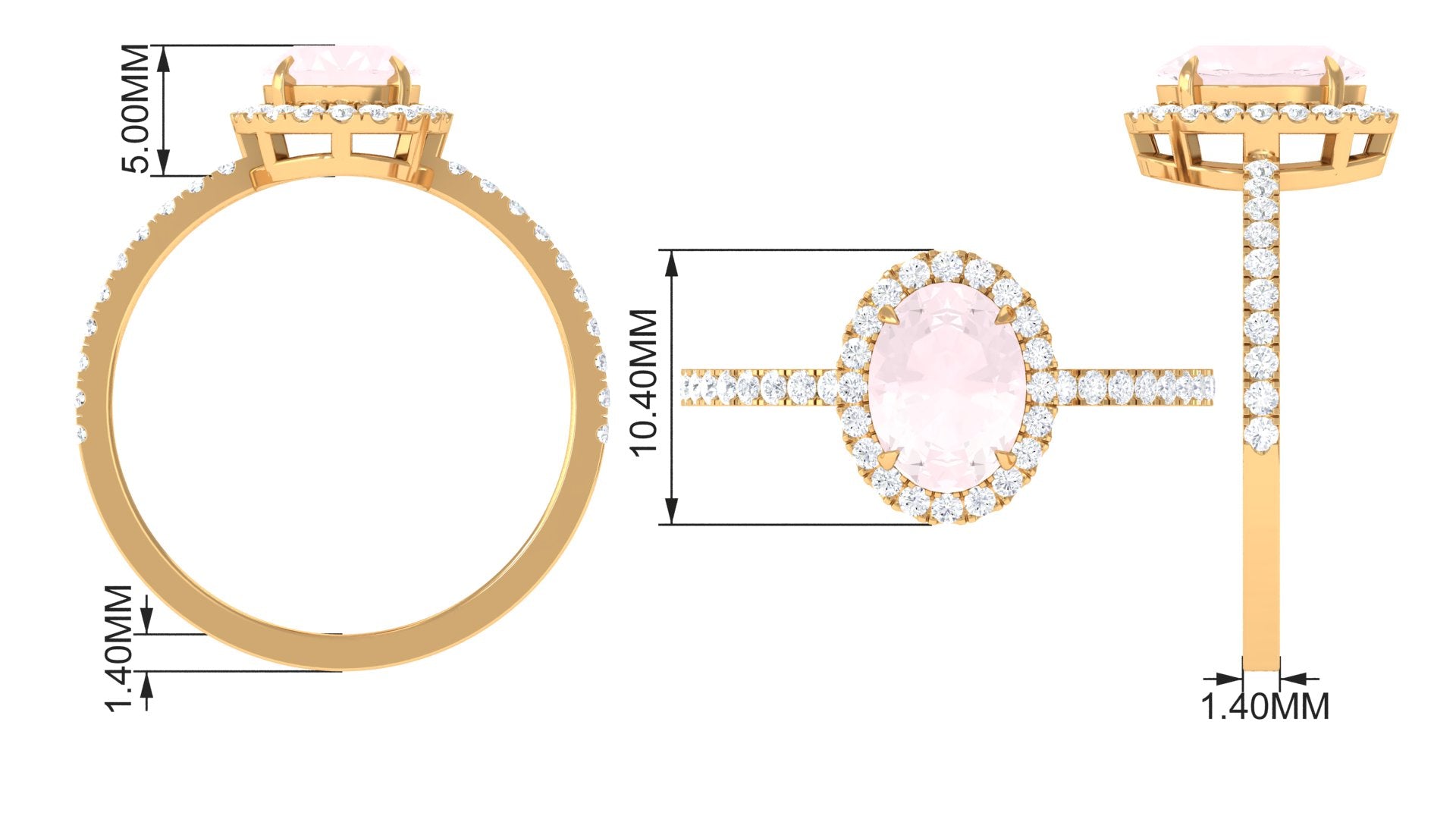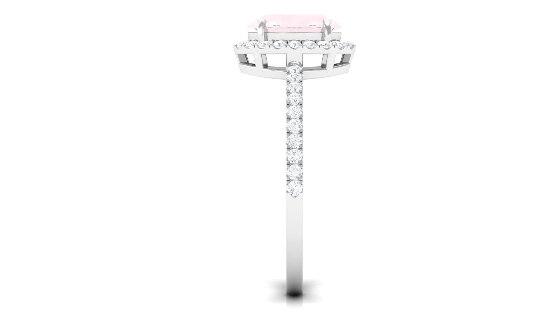 Oval Rose Quartz Halo Engagement Ring with Diamond