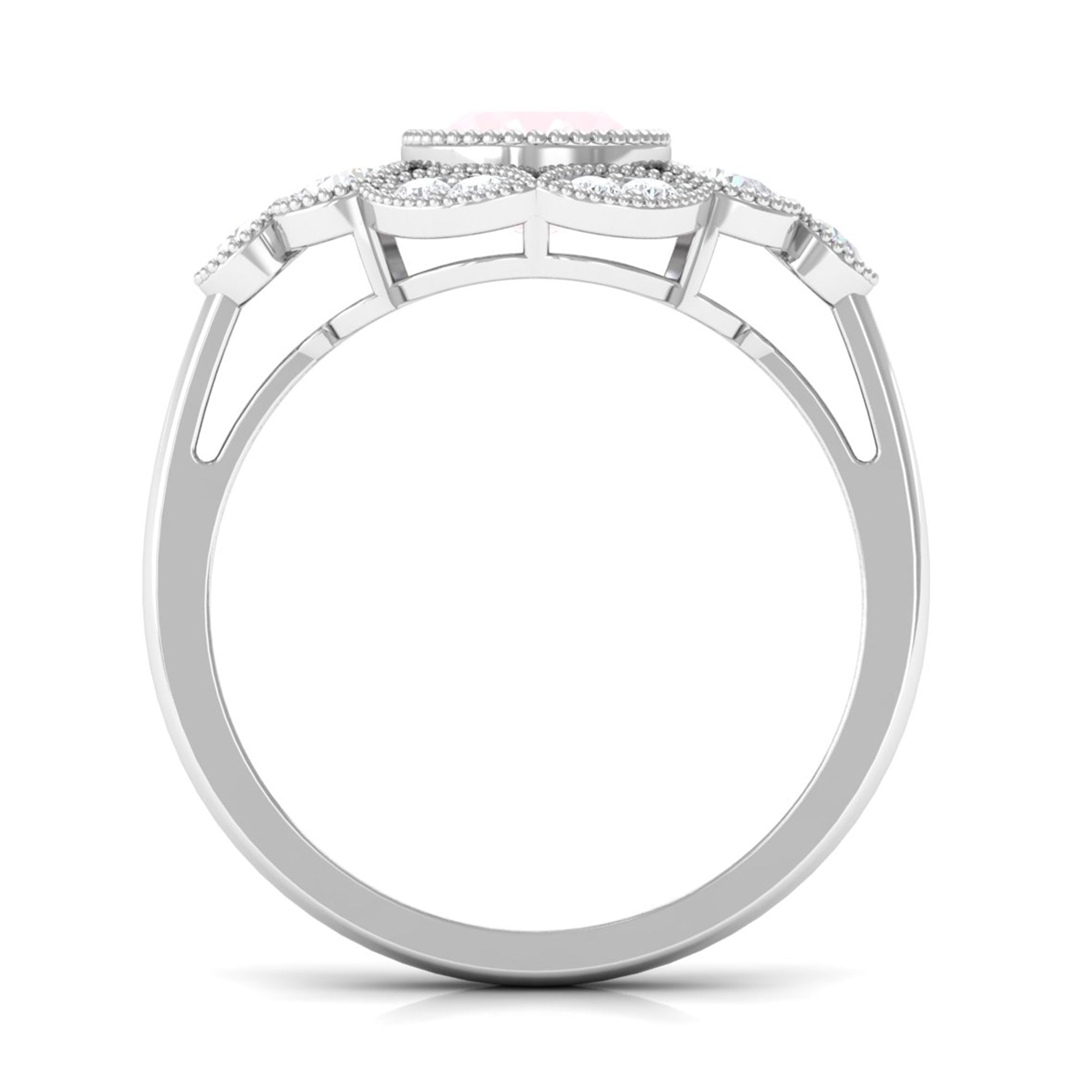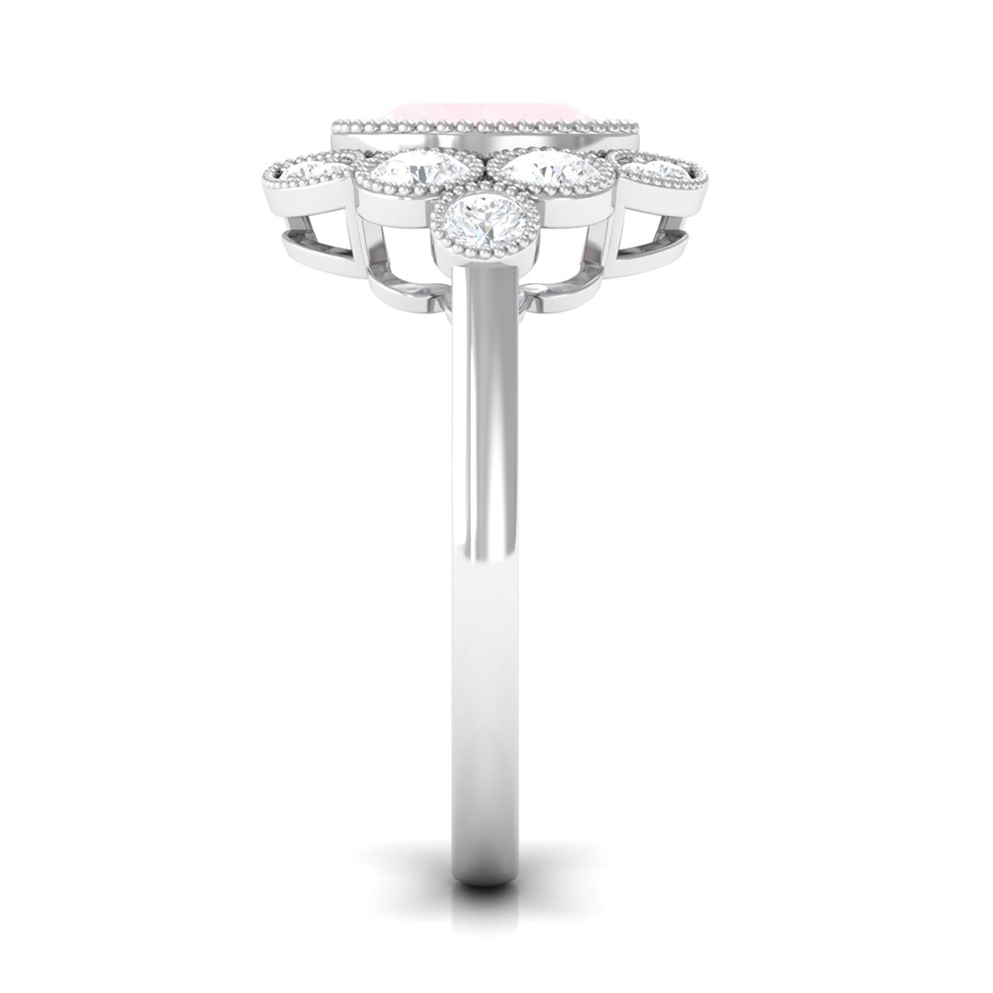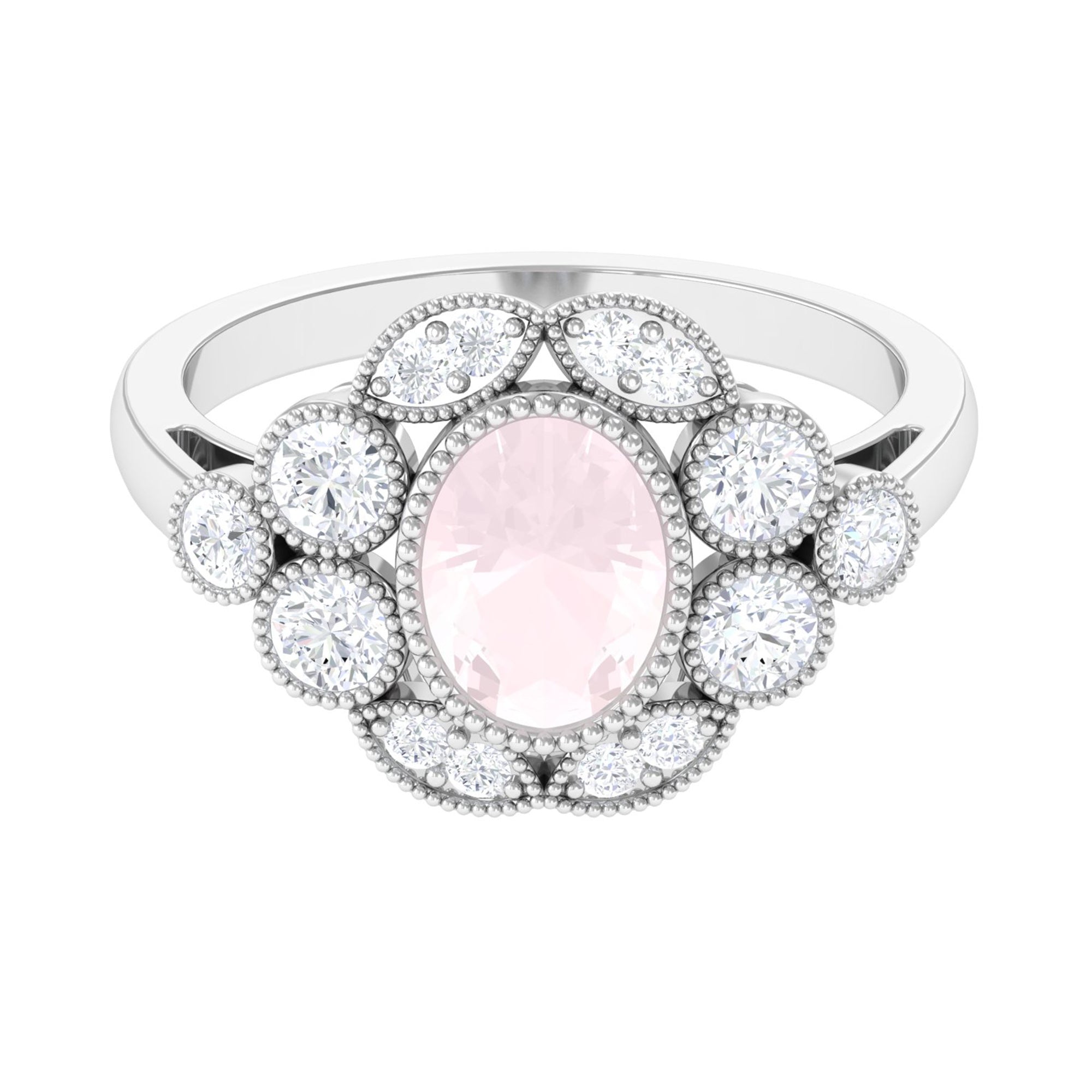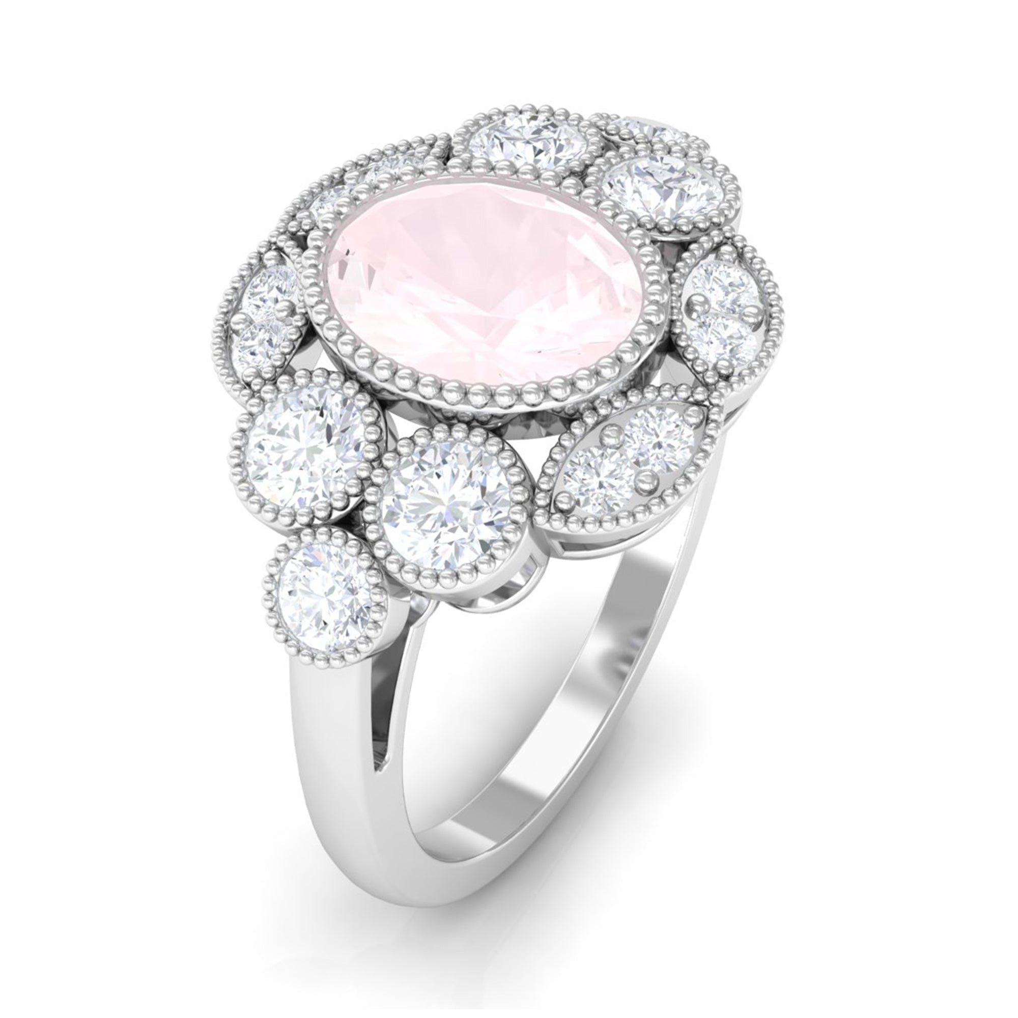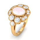 Oval Rose Quartz Statement Engagement Ring with Moissanite Halo