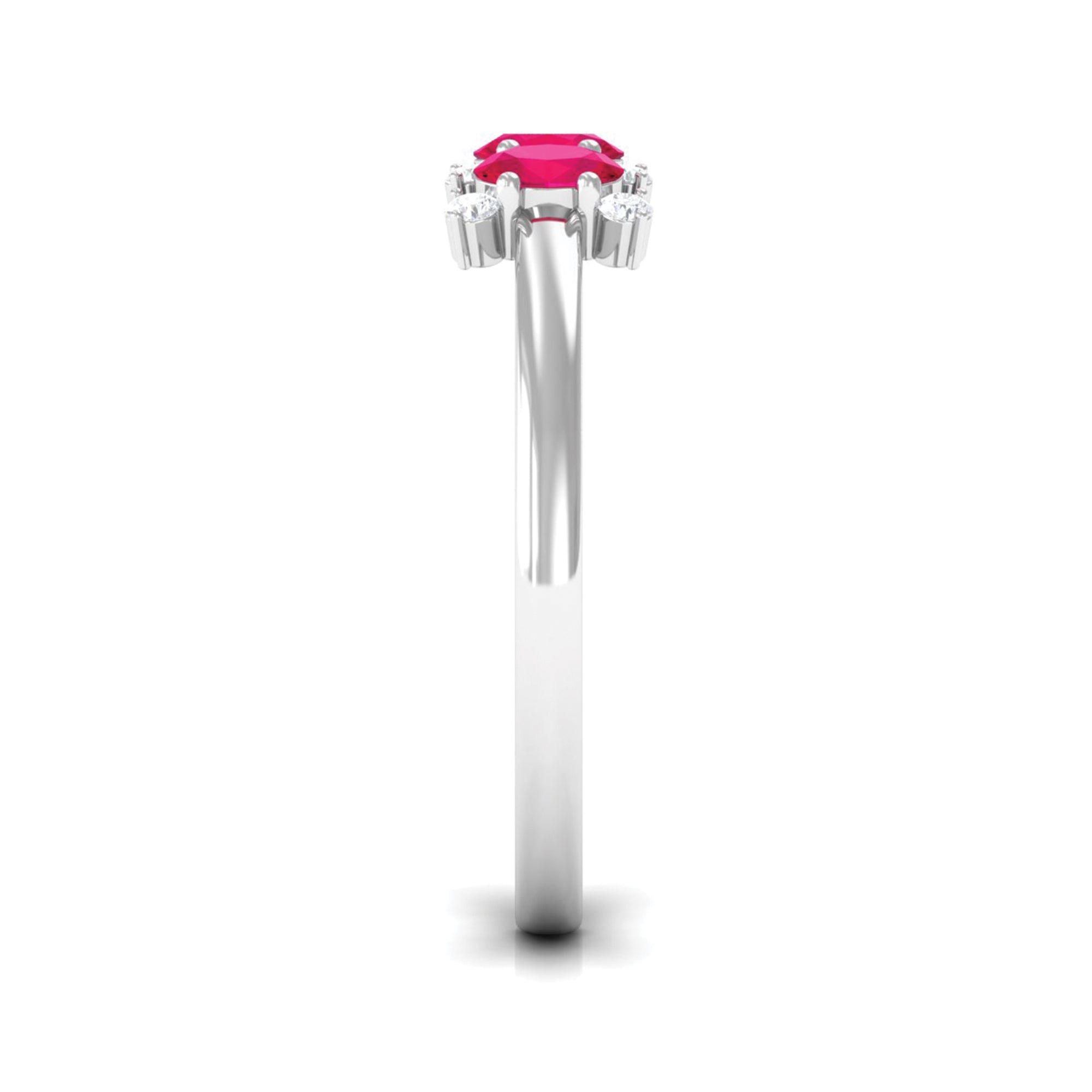 Oval Ruby Three Stone Promise Ring with Diamond