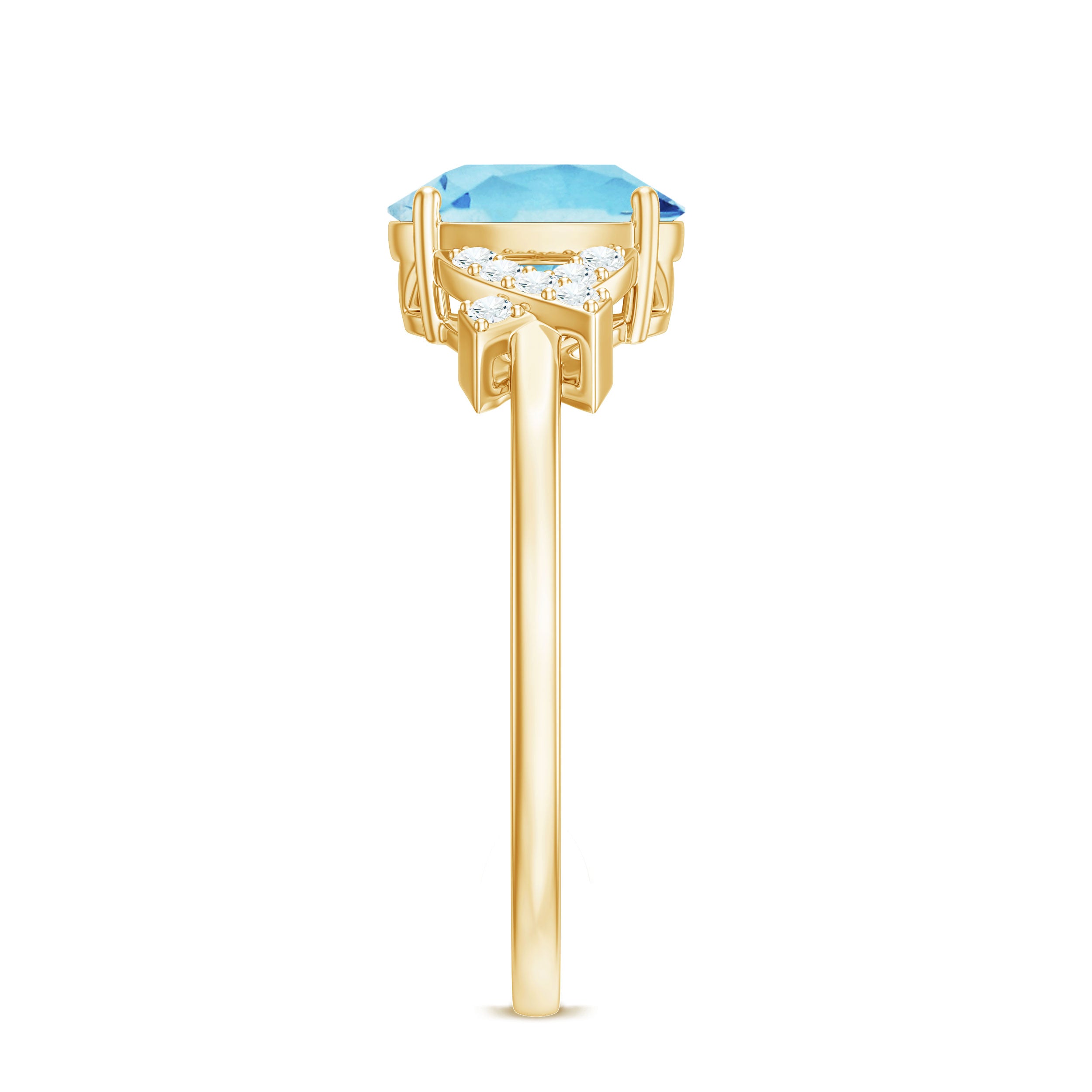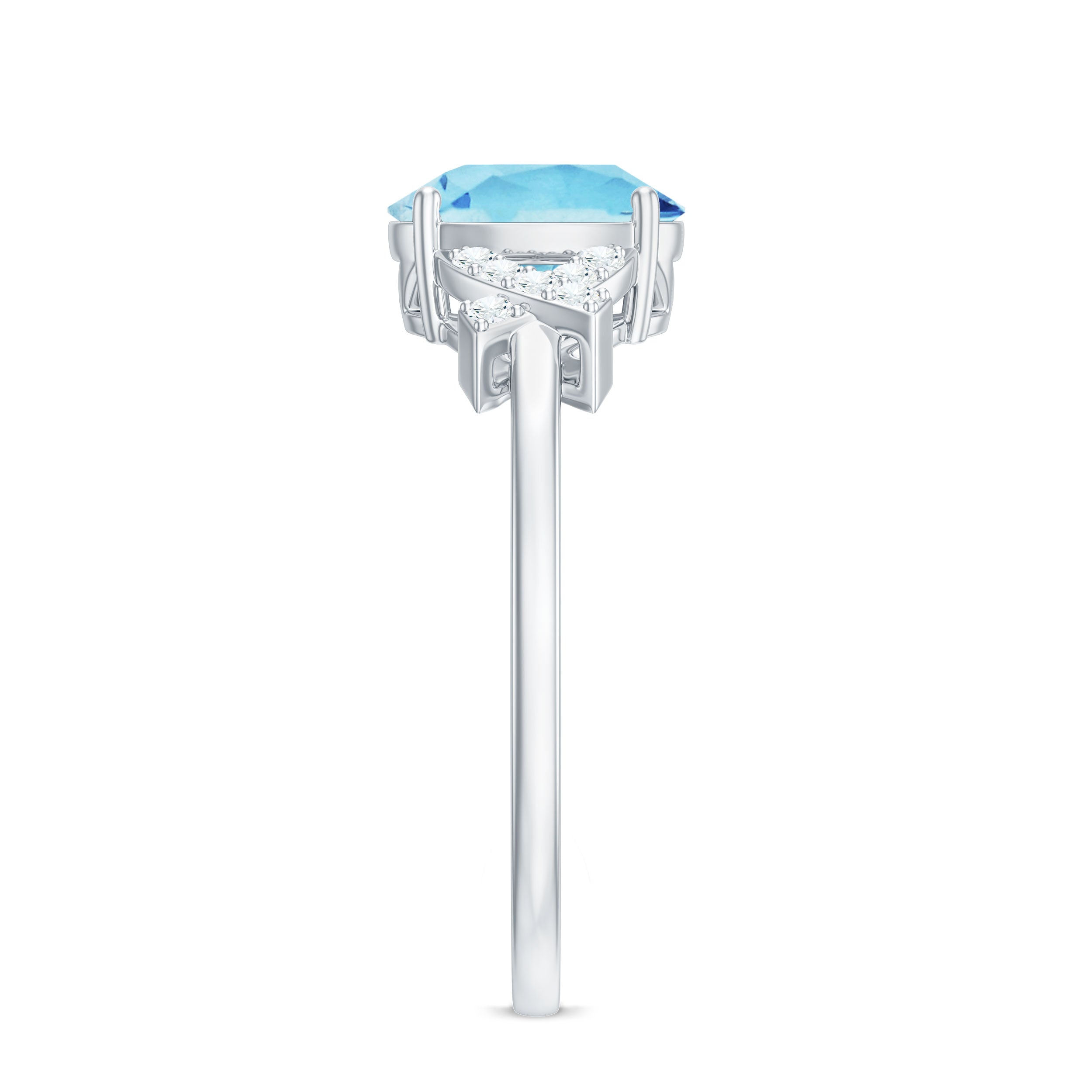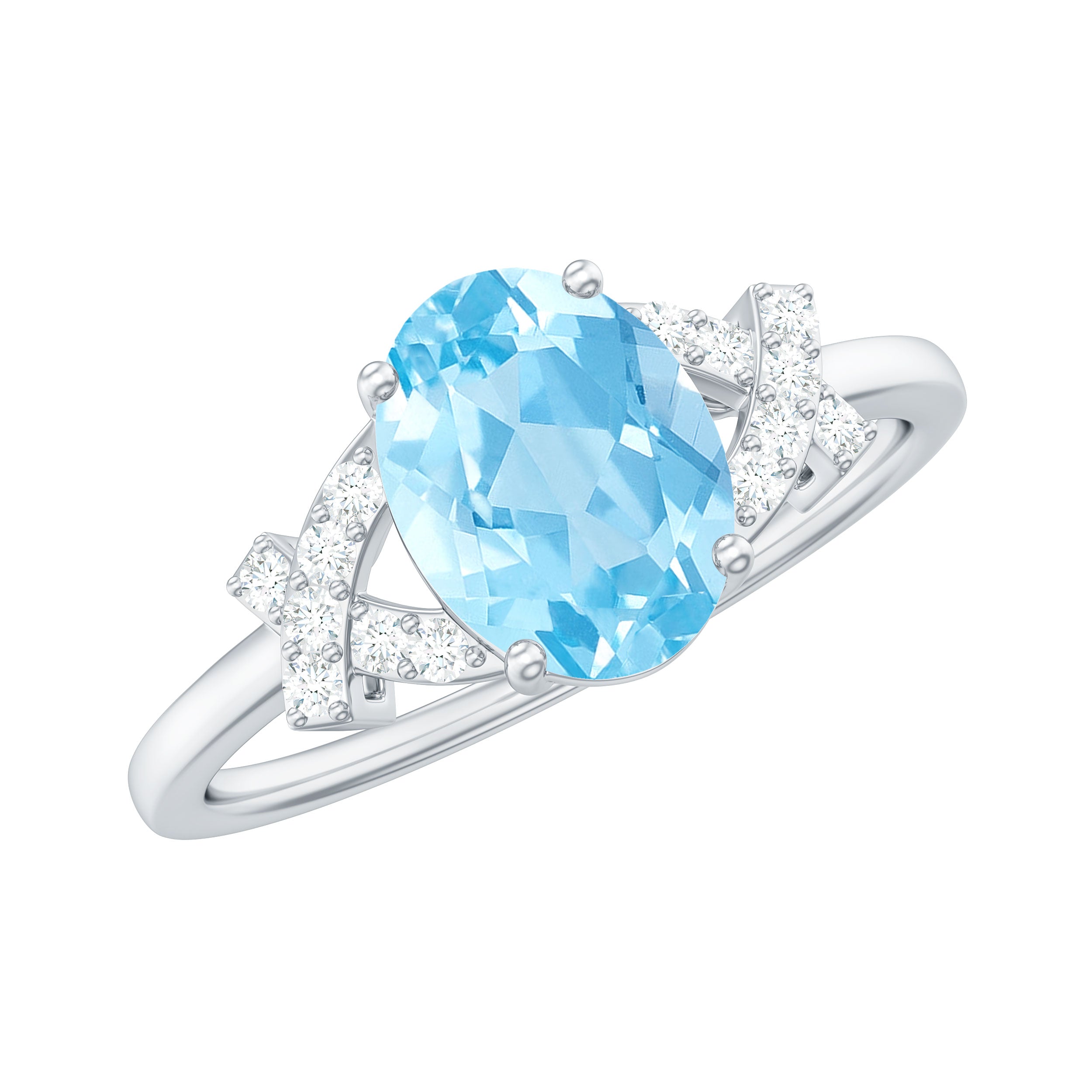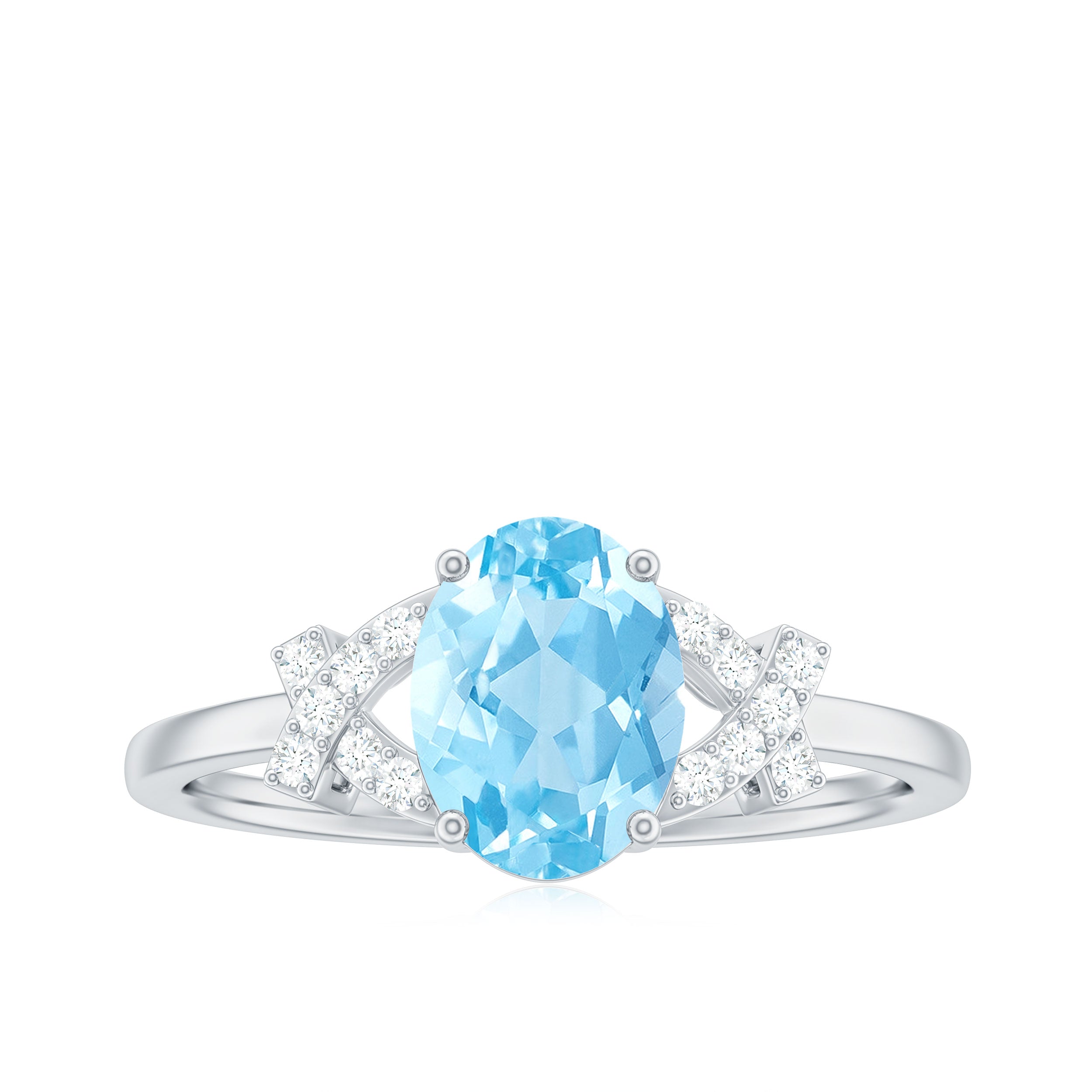 Oval Shape Aquamarine Solitaire Ring with Diamond