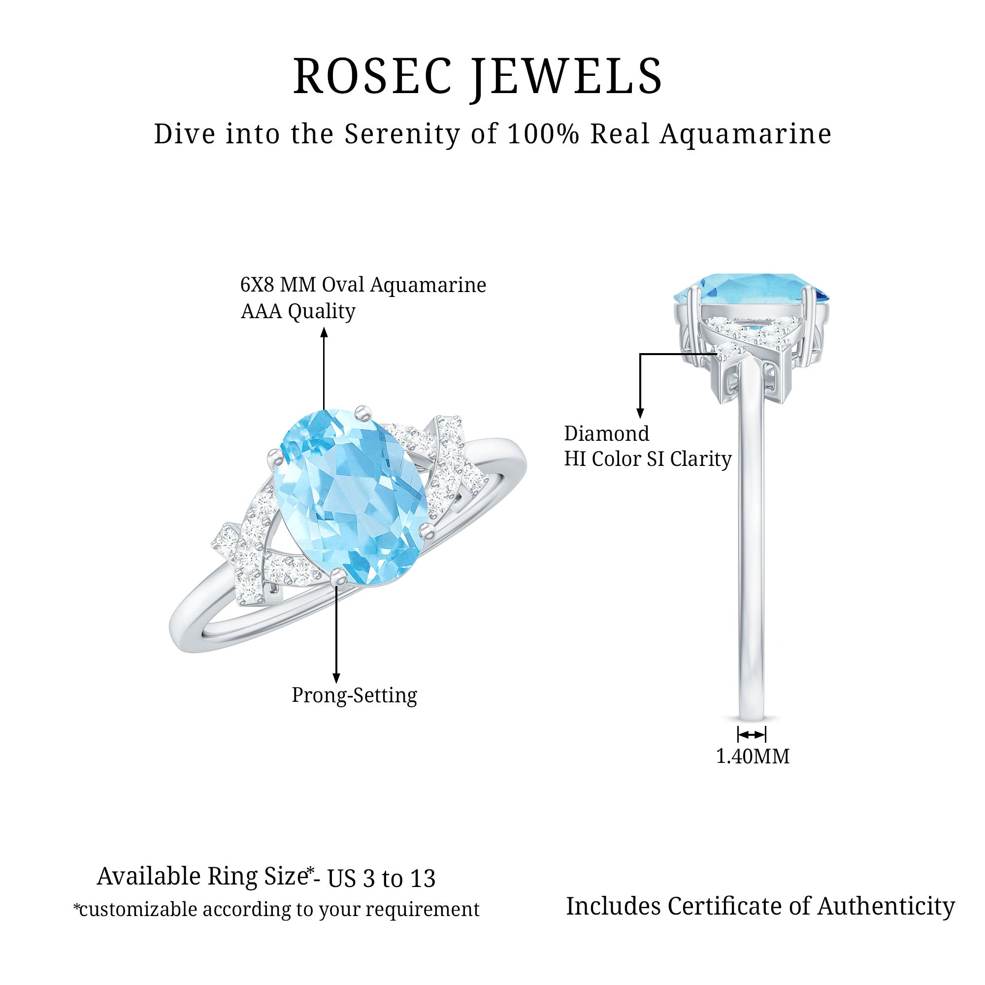 Exude grace and glamour with our Oval Aquamarine Solitaire Ring, featuring Diamond stones and a beautiful split shank design for a touch of sophistication.
