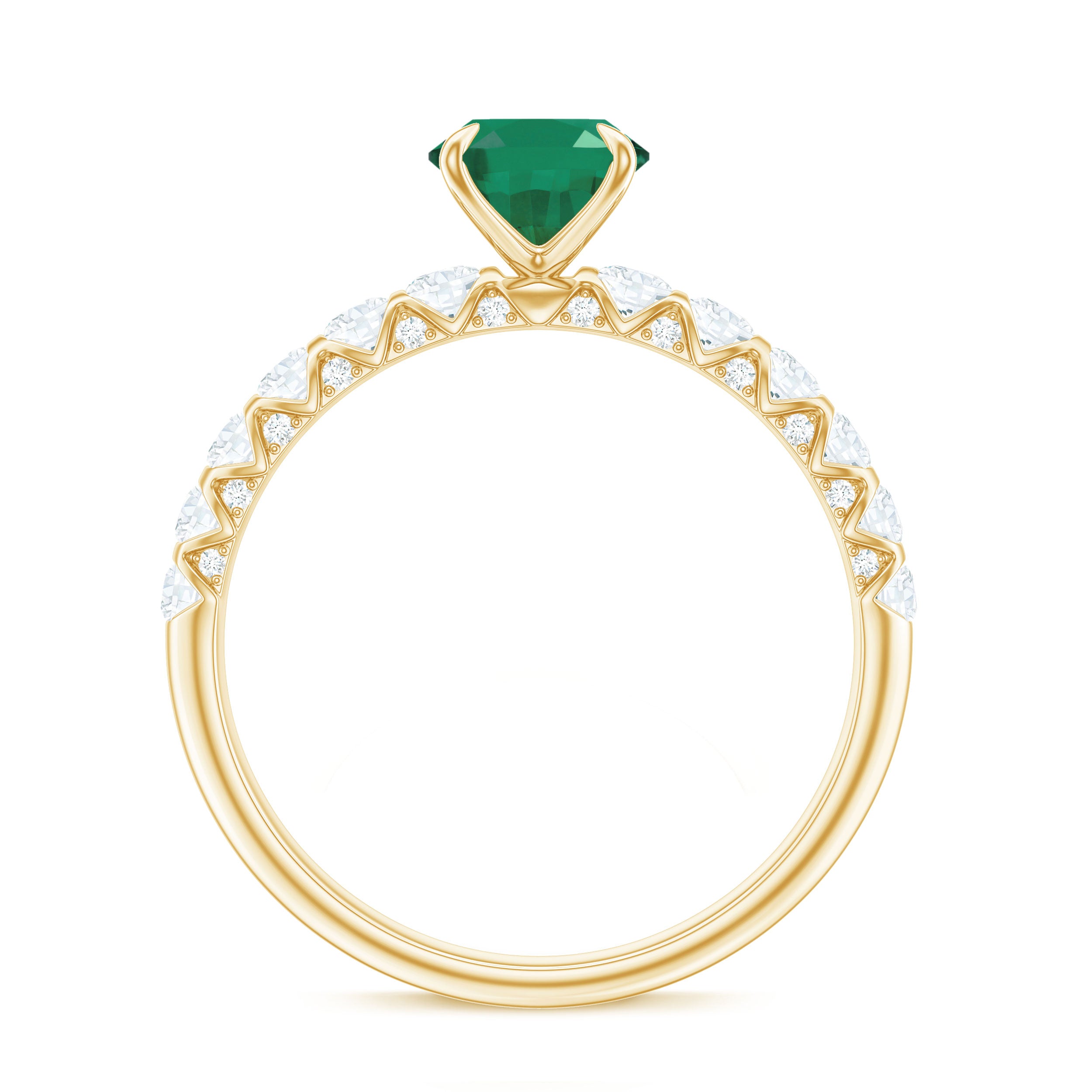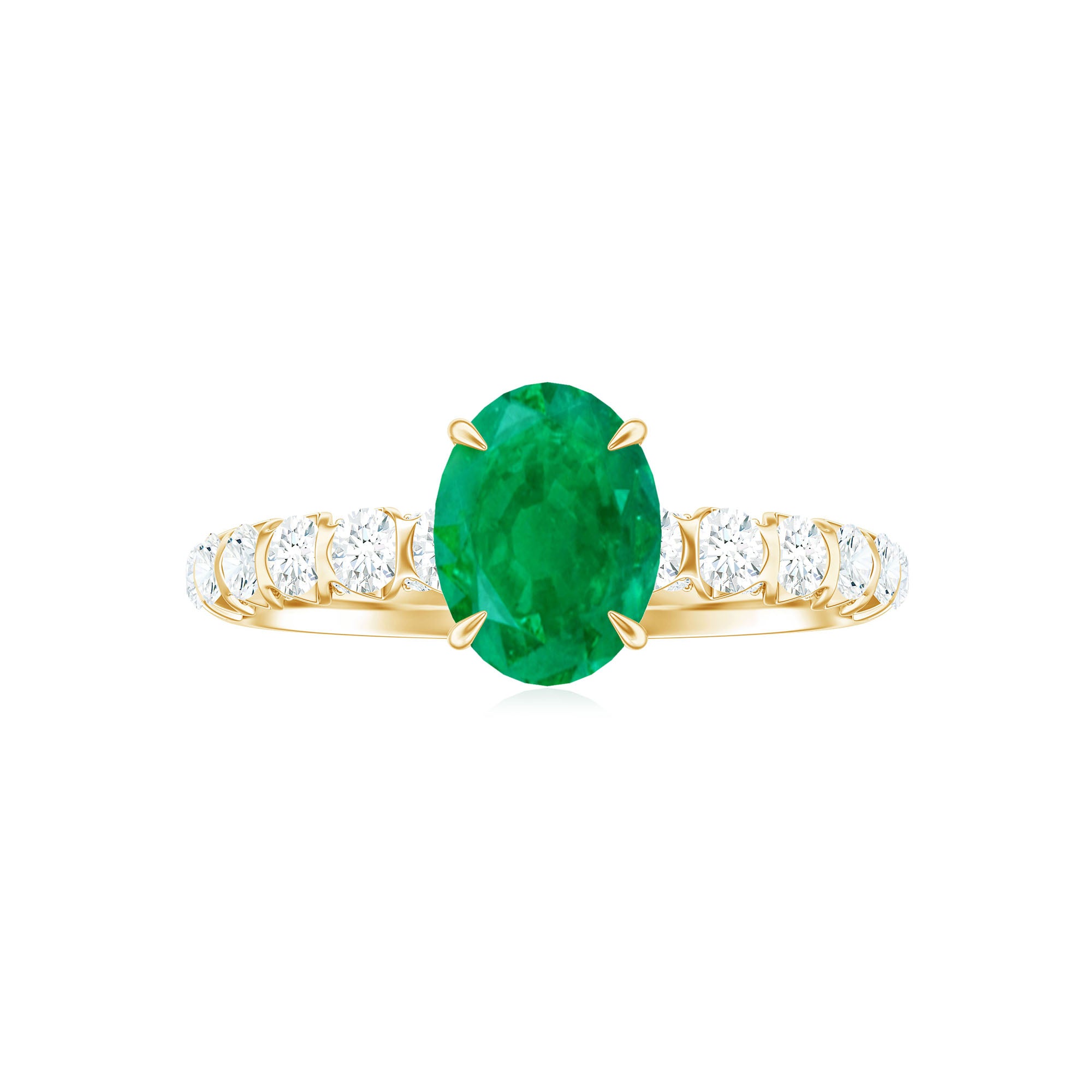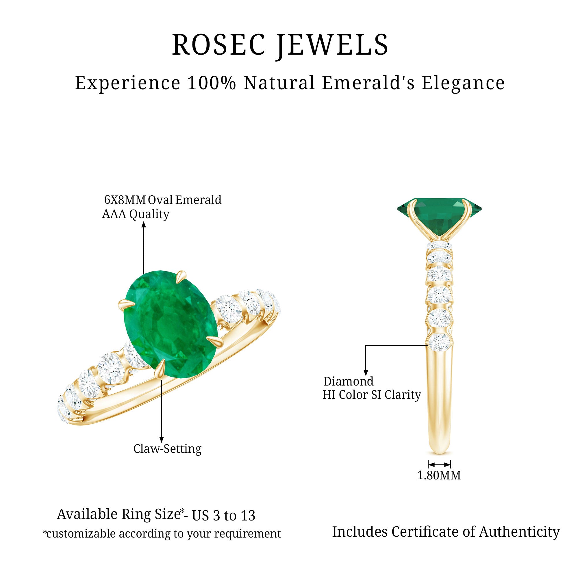 Natural 6X8mm Emerald Oval Engagement Ring with Diamond Side Stones