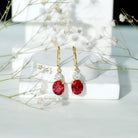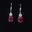 Oval Shape Lab Created Ruby Dangle Drop Earrings with Moissanite
