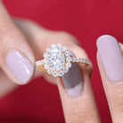 Leave your better half in awe with this Halo Engagement Ring. It boasts an exquisite Oval Shape Lab Grown Diamond, securely cradled in a Prong Setting, with additional Round Lab Grown Diamonds encircling it as a radiant halo and adorning the sides in a prong setting. This Lab Grown Diamond Engagement Ring is a testament to your love, making it the perfect choice for special events, especially those where you want to make a lasting impression.
