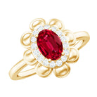 Oval Shape Lab Grown Ruby Floral Ring with Diamond Halo