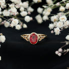 Oval Shape Lab Grown Ruby Solitaire Celtic Knot Ring