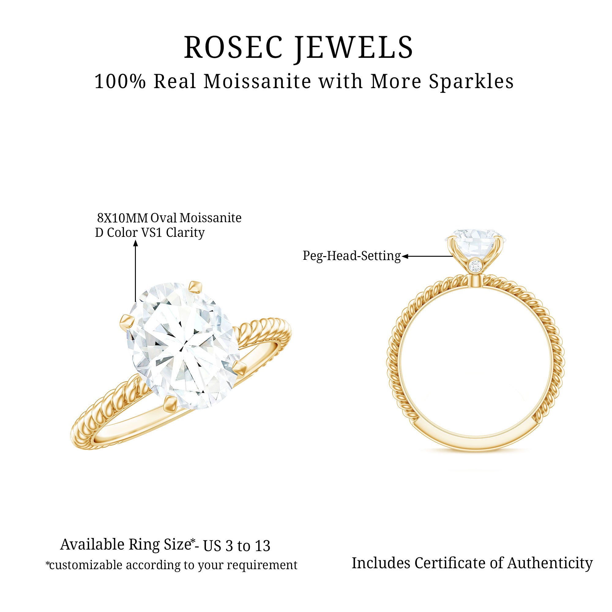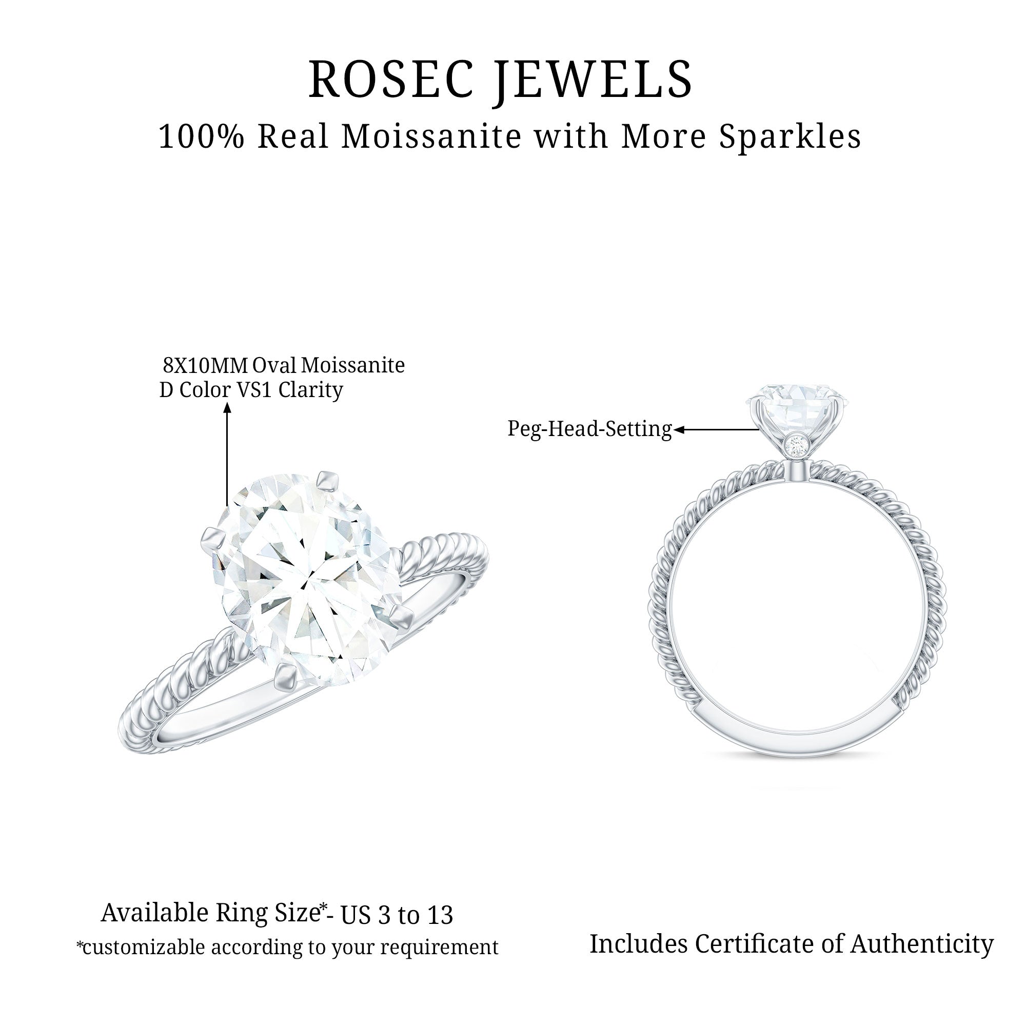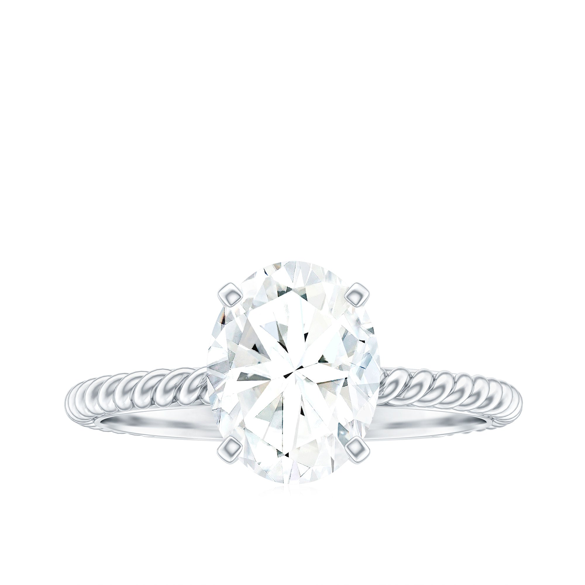 Oval Shape Moissanite Solitaire Engagement Ring with Twisted Rope