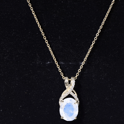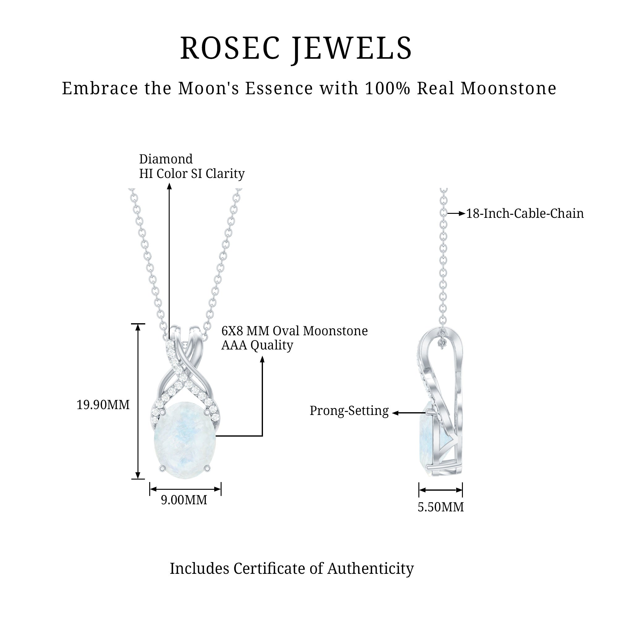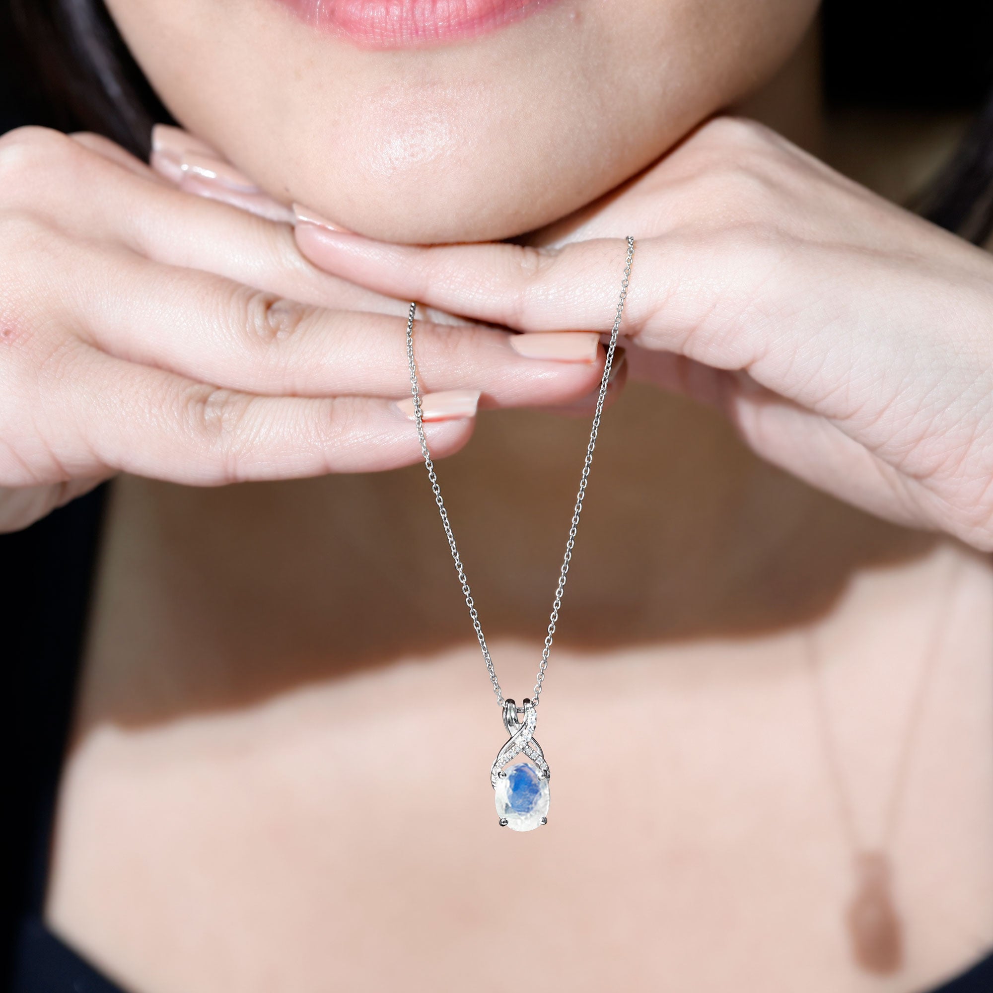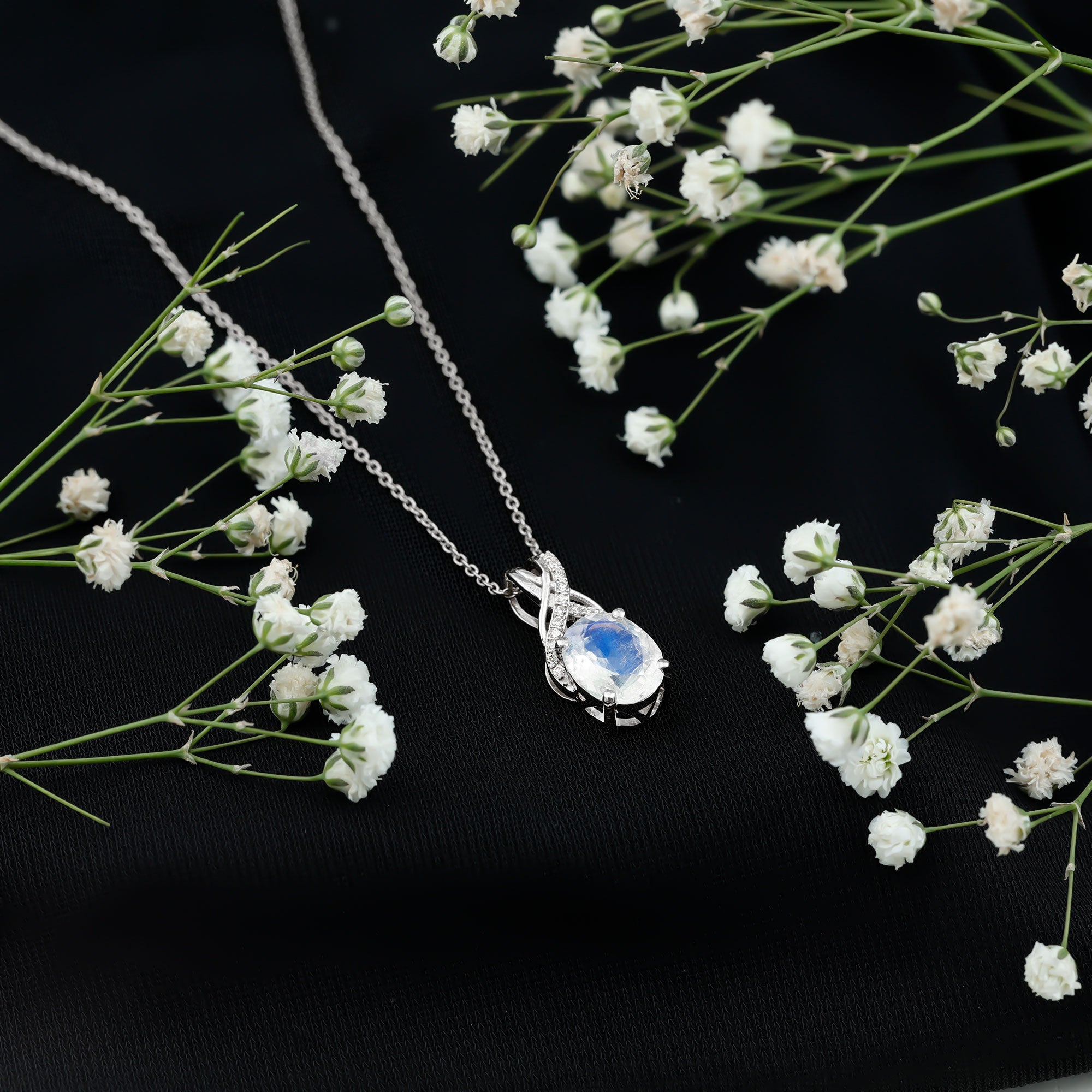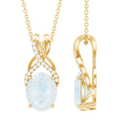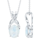 Oval Shape Moonstone Solitaire Pendant with Diamond Twisted Bail