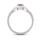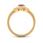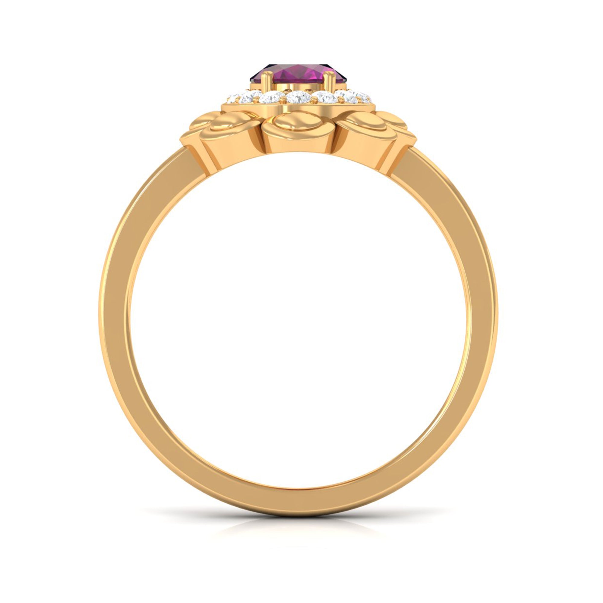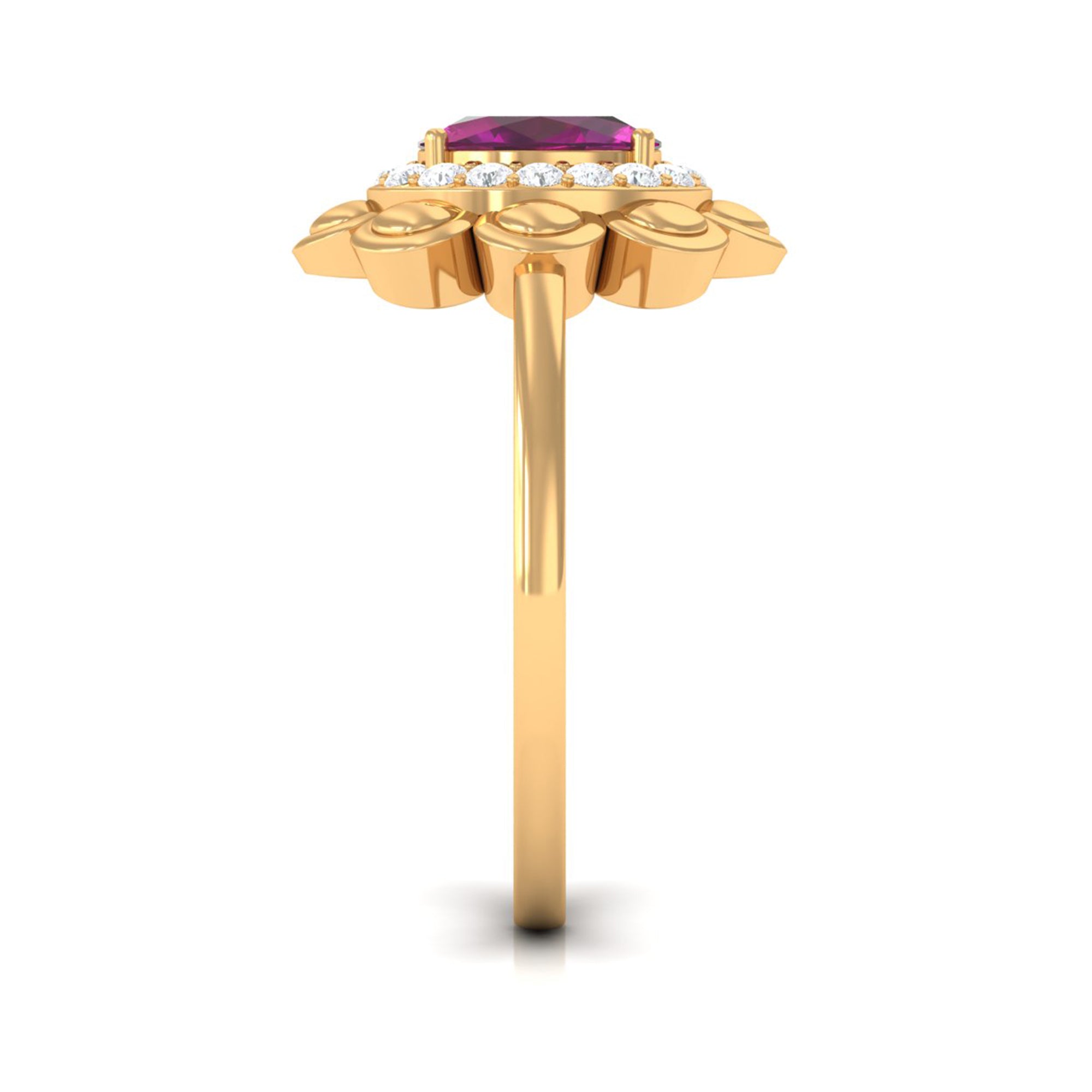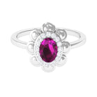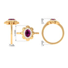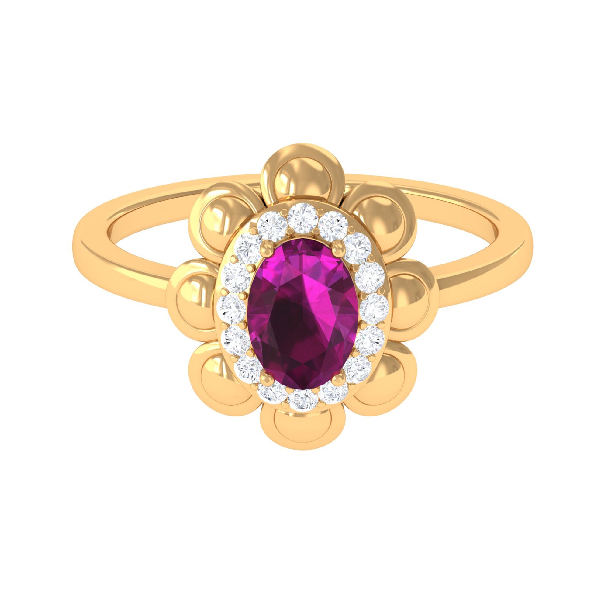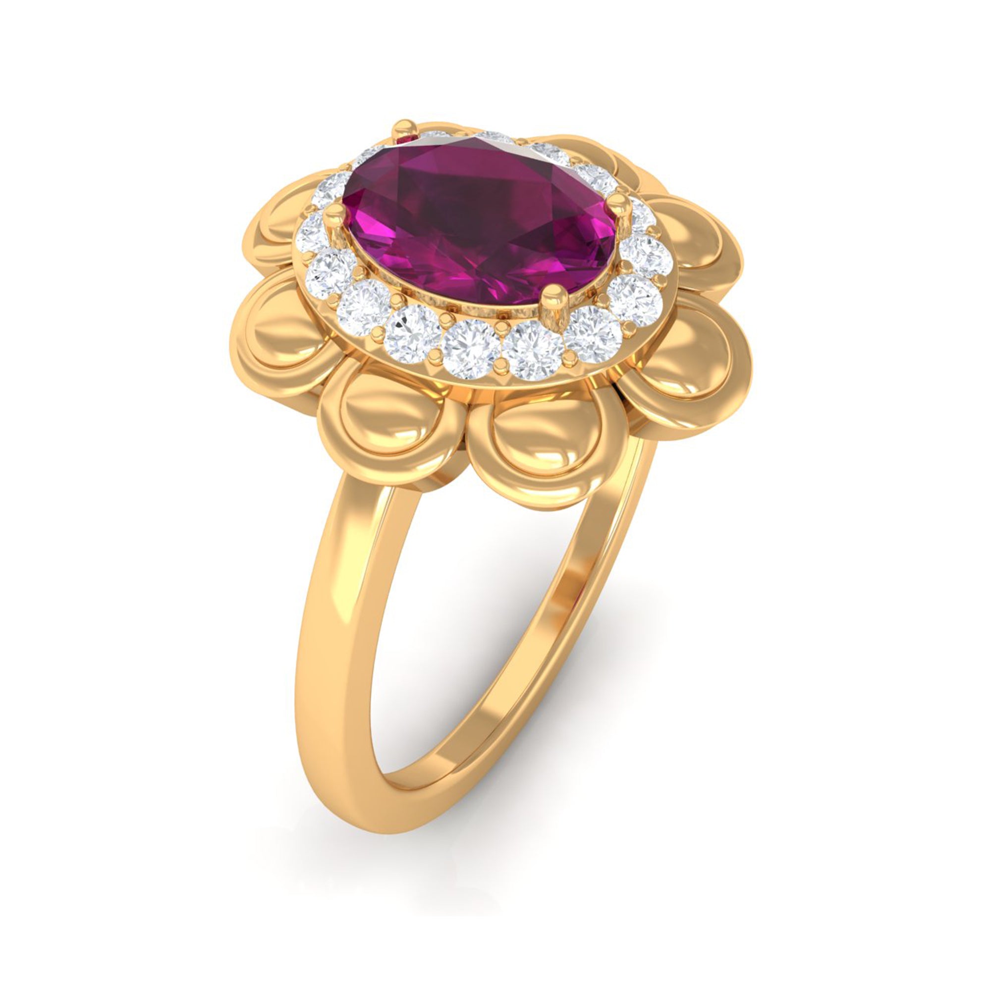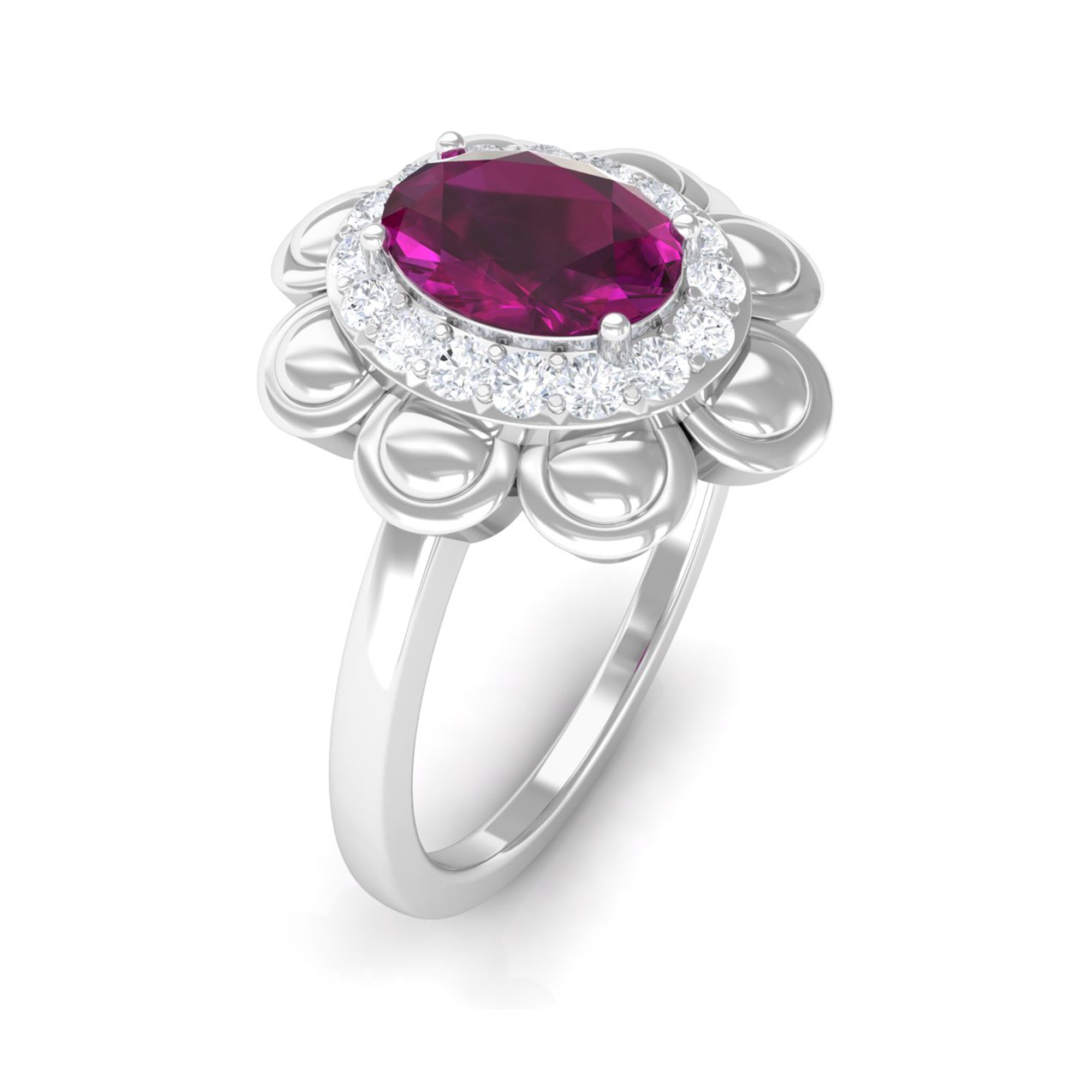 Oval Shape Rhodolite Flower Engagement Ring with Diamond Halo