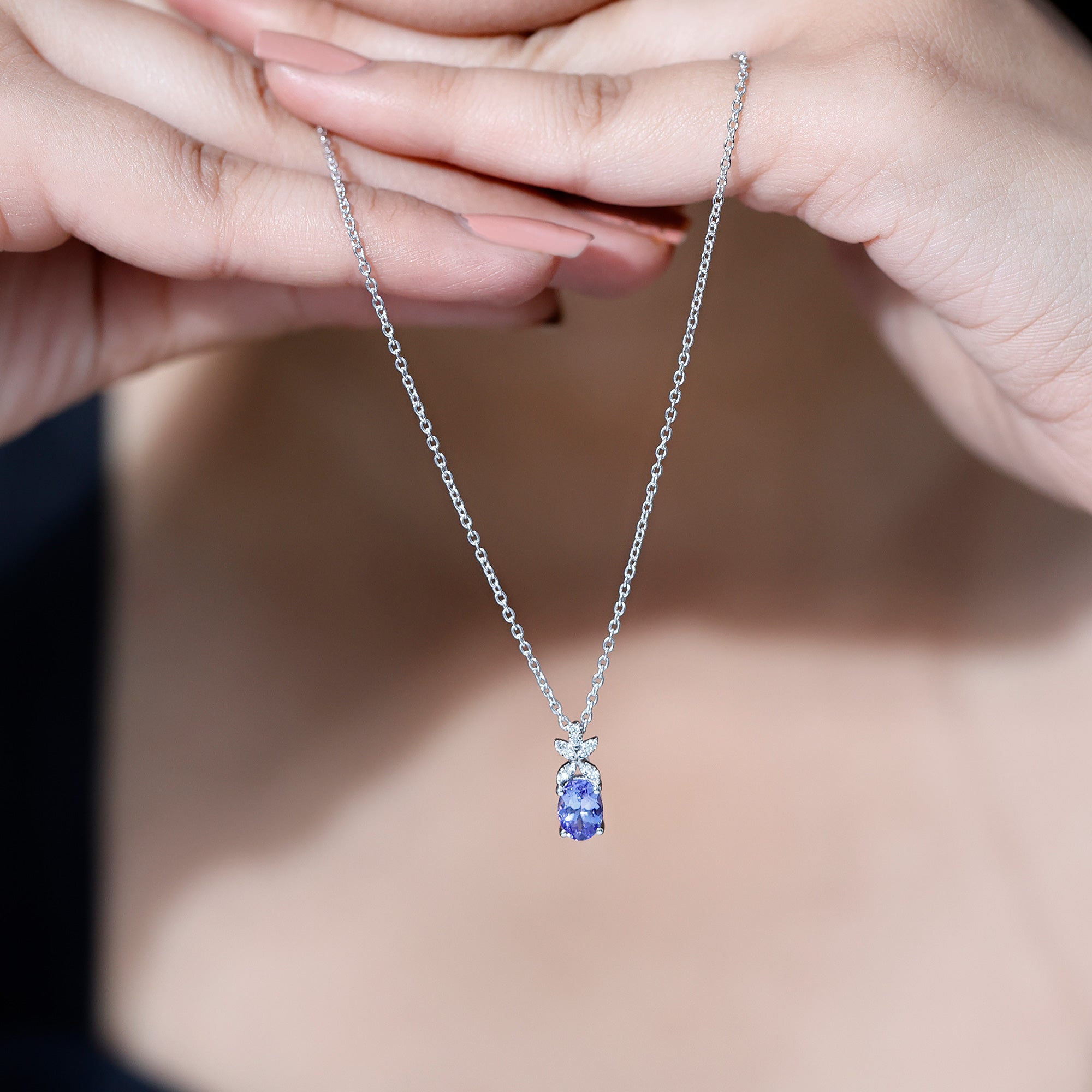 Oval Shaped 5X7 MM Tanzanite Drop Necklace with Diamond