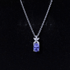 Bring a touch of elegance and charm to your look with this beautifully handcrafted Tanzanite Flower Necklace. Made in 14K white gold plated silver, this delicate piece features a captivating 5X7 MM oval shaped Tanzanite as the centerpiece. Known for its vibrant violet-blue hue, the Tanzanite radiates a soothing, luxurious glow that instantly draws attention. Above the center stone is a graceful floral design, crafted with care and set with sparkling lab grown diamonds. Each petal is shaped to perfection, creating a soft and feminine silhouette that enhances the overall beauty of this Tanzanite and Diamond Necklace. The diamonds catch the light from every angle, adding just the right amount of brilliance to complement the rich tone of the Tanzanite. The combination of nature inspired design and fine craftsmanship gives this Tanzanite Necklace a timeless appeal, making it ideal for both everyday elegance and special occasions. Suspended on a silver chain, this Drop Pendant is lightweight, comfortable to wear, and made to last. Add this stunning piece to your wardrobe today and bring effortless sophistication to your jewelry collection.