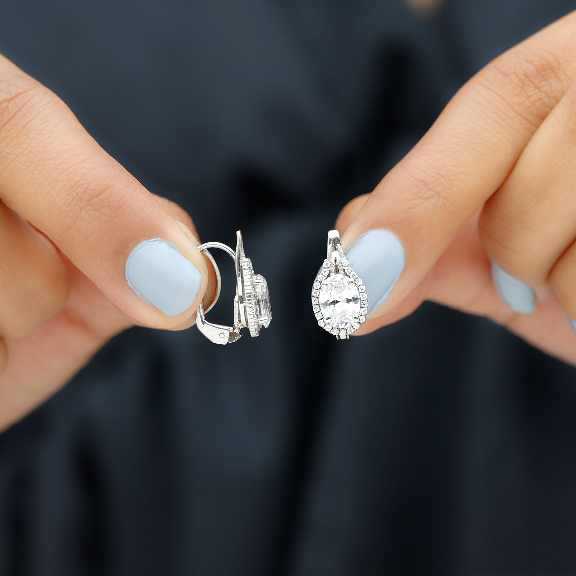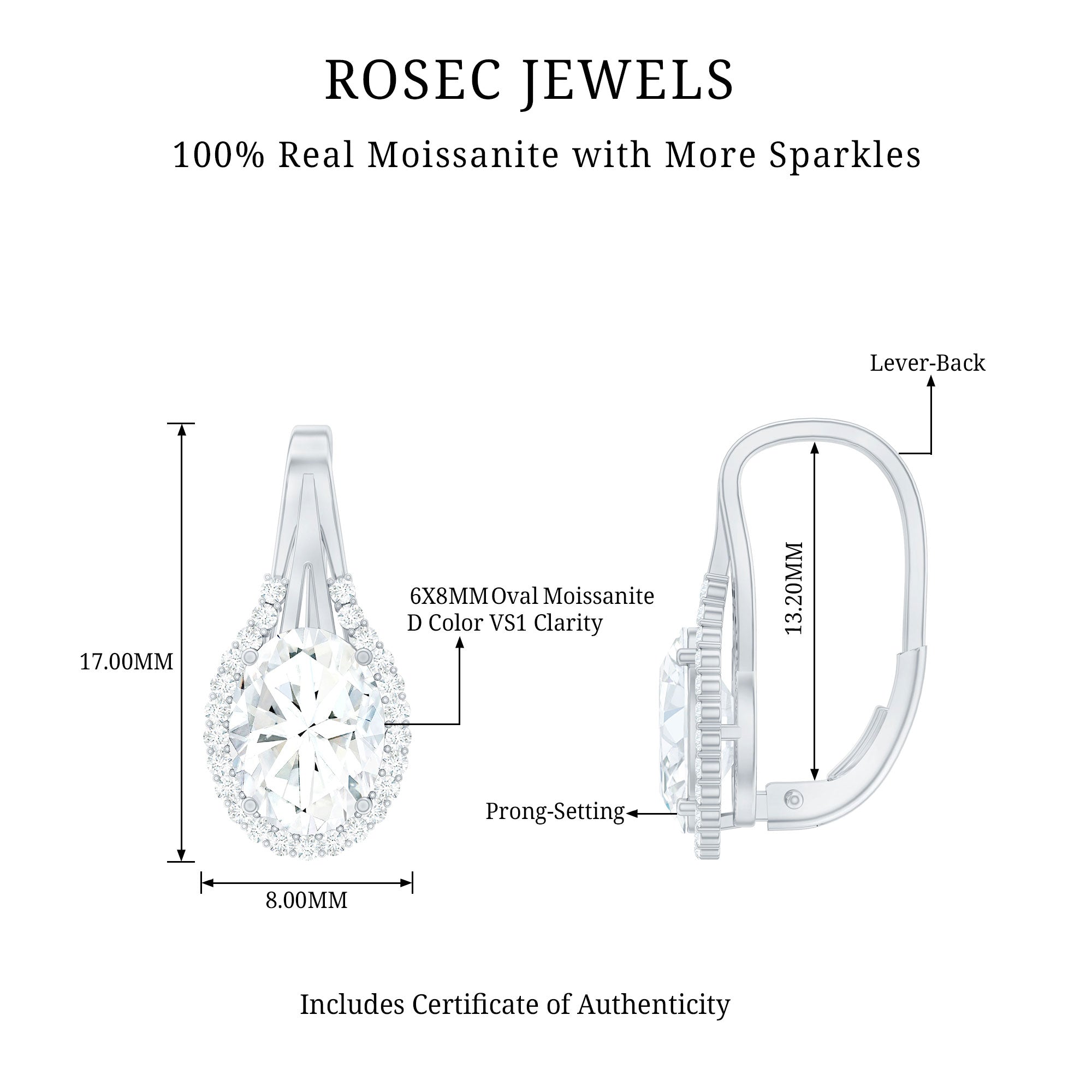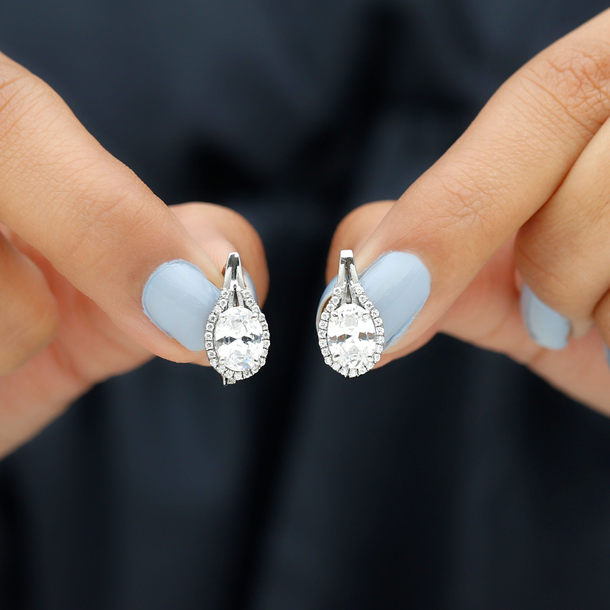 When timeless elegance meets designer detail, the result is truly unforgettable. These Oval Moissanite Earrings are crafted to bring luxurious sparkle and elevated style to any look. Whether youre stepping into a formal event or simply want to feel your best, these Halo Stud Earrings are the perfect balance of sophistication and shine. Crafted in 14k white gold plated silver, each earring showcases a dazzling 6X8 MM oval cut moissanite, securely held in prong setting. The centerpiece is surrounded by a delicate halo of round moissanites, enhancing the center stone’s brilliance and creating a designer aesthetic. The halo is complemented by a polished lever back. These Moissanite Stud Earrings are not just about beauty, they are made for comfort, too. The lever back closure ensures a snug and secure fit while offering easy wear for long hours, making them ideal for everything from special occasions to celebratory nights out. Perfect for marking an anniversary, engagement celebration, or simply treating yourself to something special, these Designer Stud Earrings come with a certificate of authenticity and a beautifully designed jewelry box, ready for gifting or safekeeping.