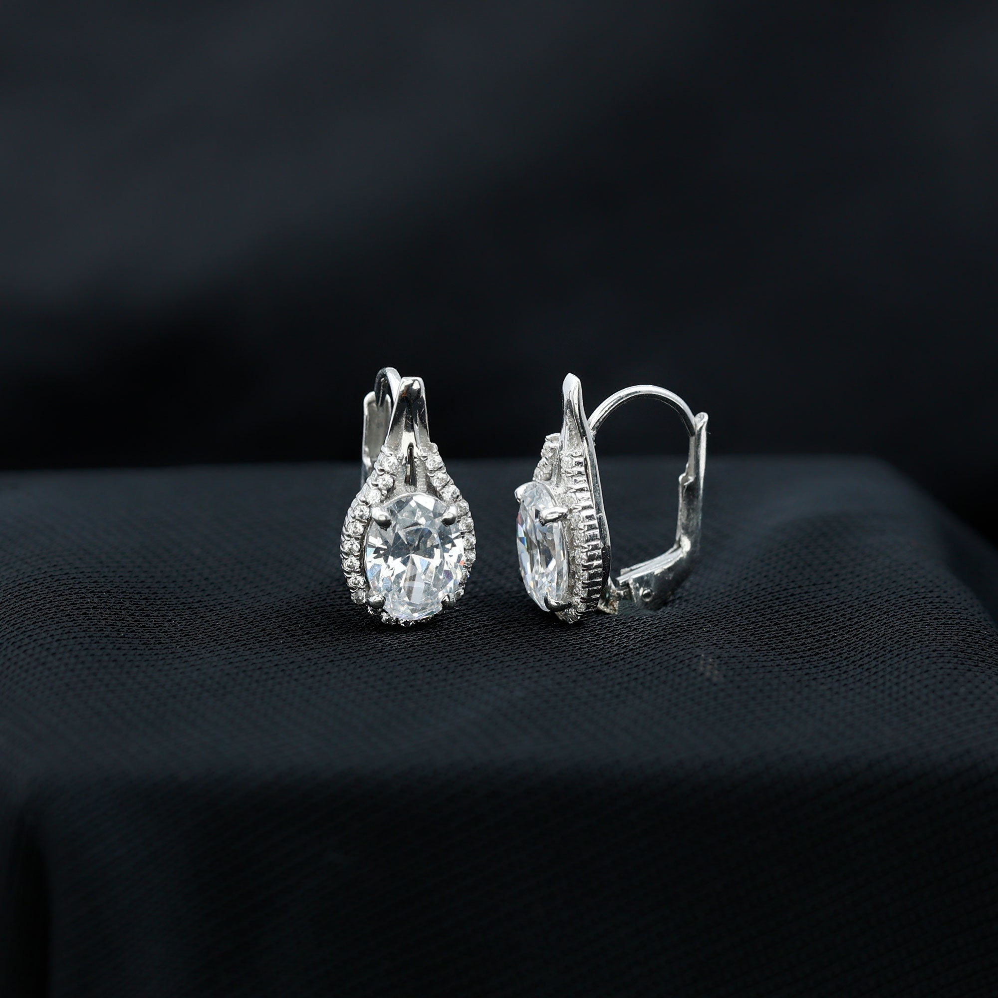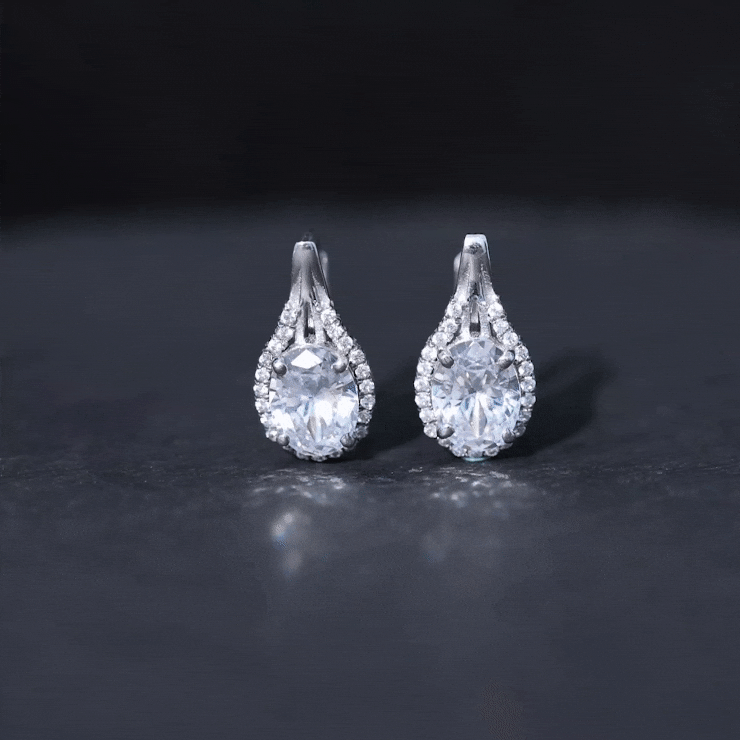 Oval Shaped 6X8 MM Moissanite Designer Earrings in Silver