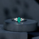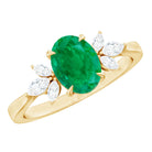 Oval Shaped Emerald Engagement Ring with Marquise Diamond Trio