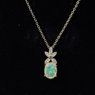Illuminate your bridal ensemble with the glow of this handcrafted Ethiopian Opal Necklace. Designed to capture the essence of elegance and emotion, this Oval Locket Necklace is crafted in 14K yellow gold plated silver, perfect for the bride who seeks meaningful beauty with a timeless twist. At its heart lies a captivating 7X9 MM oval cut Ethiopian Opal, cradled in a secure prong setting. Above the luminous centerpiece rests a finely sculpted floral motif, adorned with round lab grown diamonds. This nature-inspired detail adds a romantic shimmer, enhancing the necklace graceful silhouette. Blending vintage charm with a modern sensibility, this Opal and Diamond Necklace is more than just an accessory, it is a statement of love, light, and individuality. The Flower Pendant is suspended from an elegant, adjustable chain secured by a lobster clasp, offering versatility and comfort whether worn close to the collarbone or slightly lower for a layered look. Lightweight yet striking, it is the perfect finishing touch for your wedding day, bridesmaid gifts, or a meaningful keepsake to mark a special moment. The AAA quality Ethiopian Opal paired with EF-VS quality lab grown diamonds brings an air of refinement that will never go out of style. Presented in a signature jewelry box, this Floral Necklace is ready to be gifted, worn, and treasured, today and for years to come.