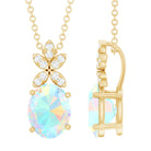 Oval Shaped Ethiopian Opal and Diamond Flower Necklace with Chain