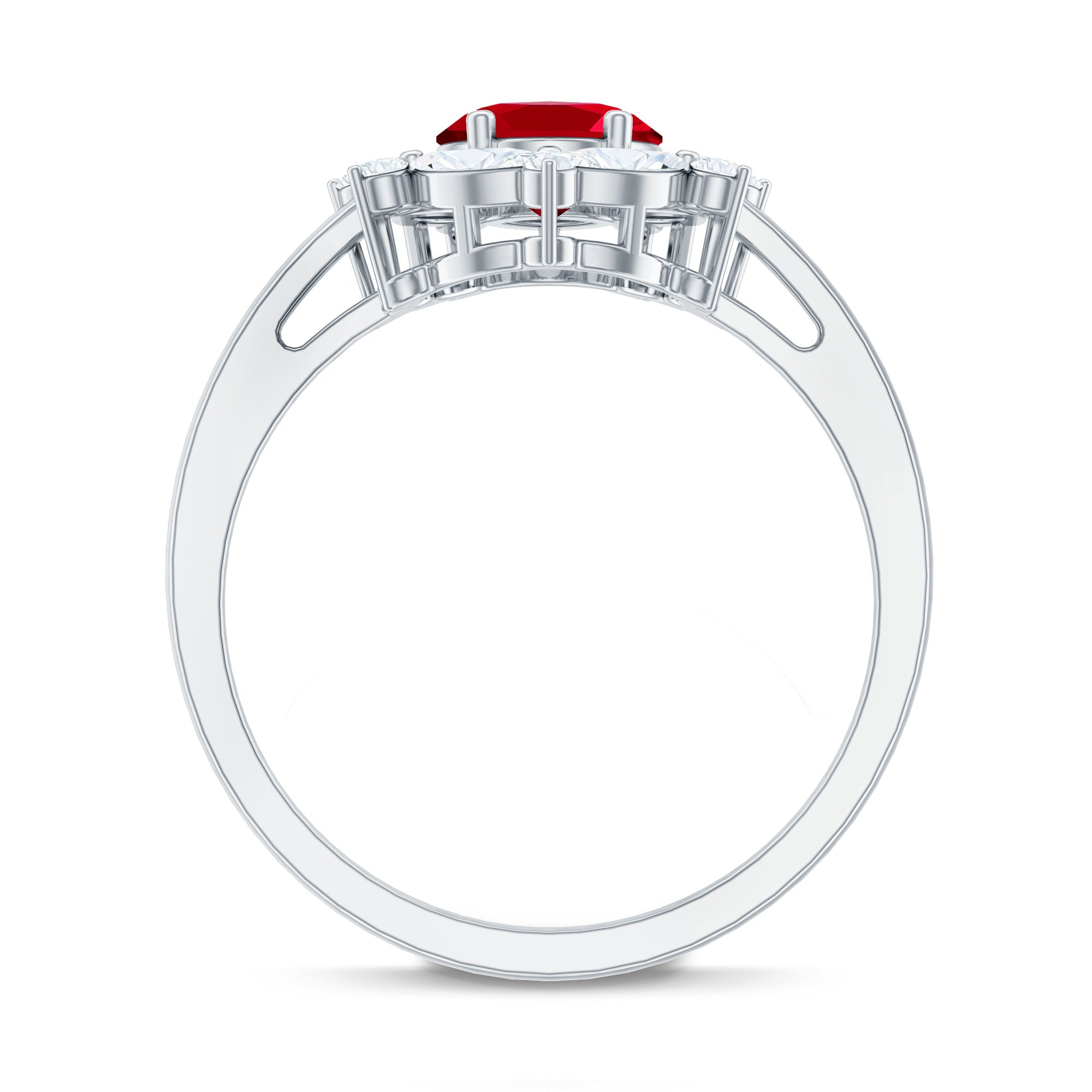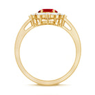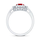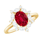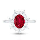 Oval Shaped Lab Created Ruby Statement Engagement Ring with Moissanite