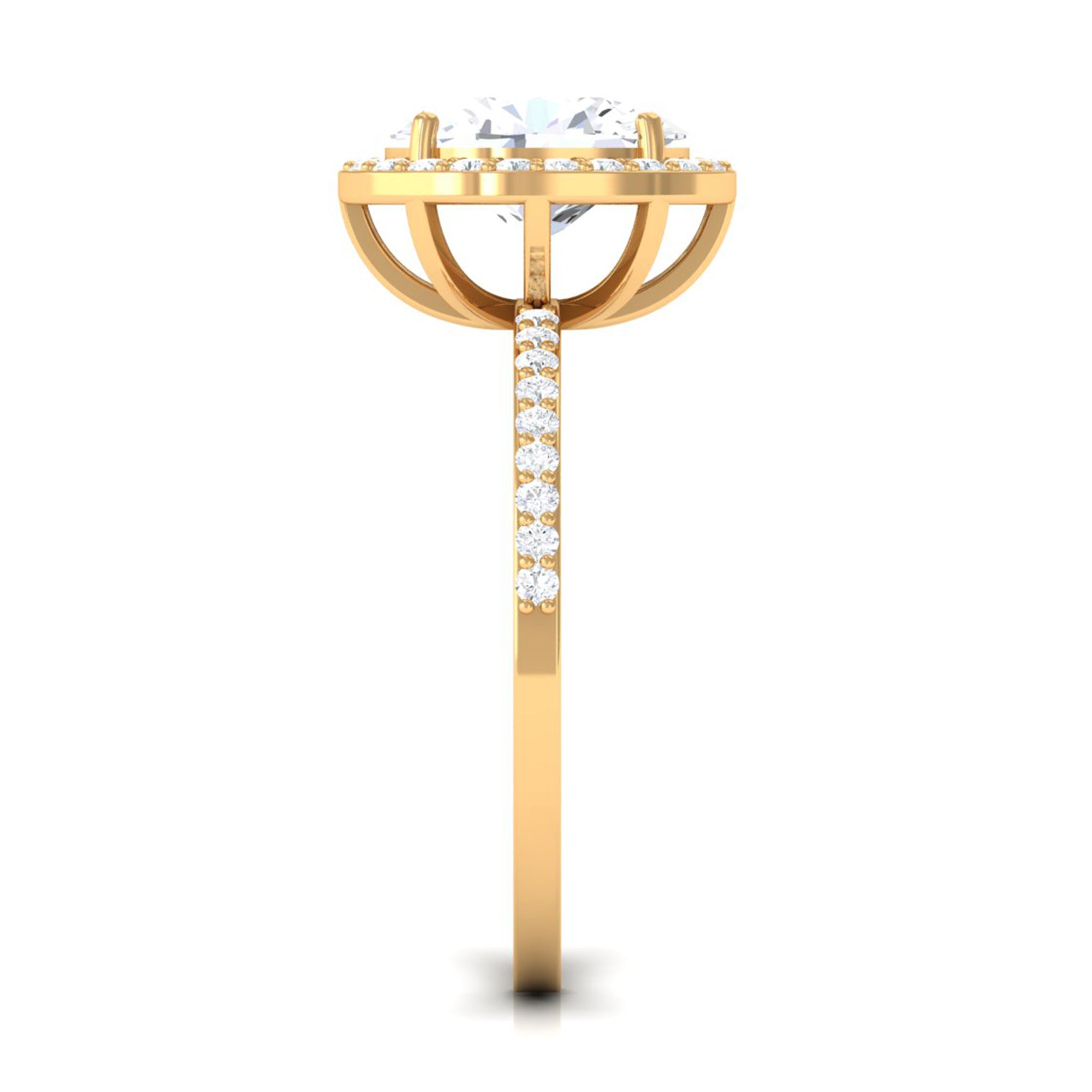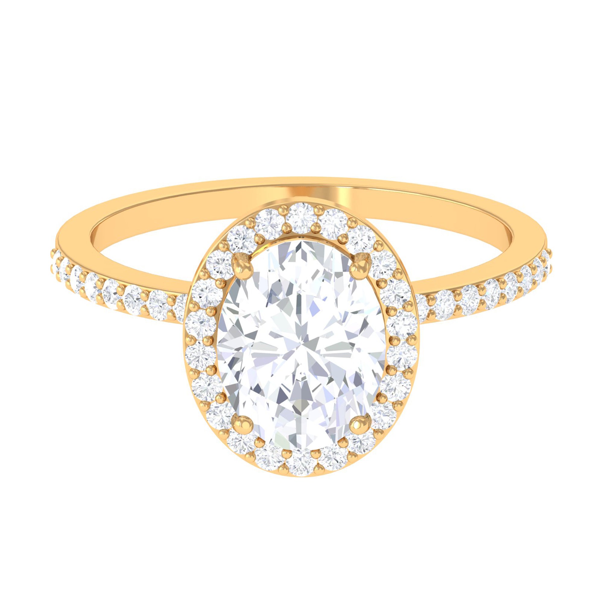 Elevate your love story with the enchanting Engagement Ring. Crafted with utmost precision, this exquisite piece features a brilliant oval-cut Zircon center stone, gracefully surrounded by a halo of sparkling dainty zircon stones also set as side stones. Set in a lustrous band of your choice, this simulated diamond ring is a timeless symbol of your eternal bond.