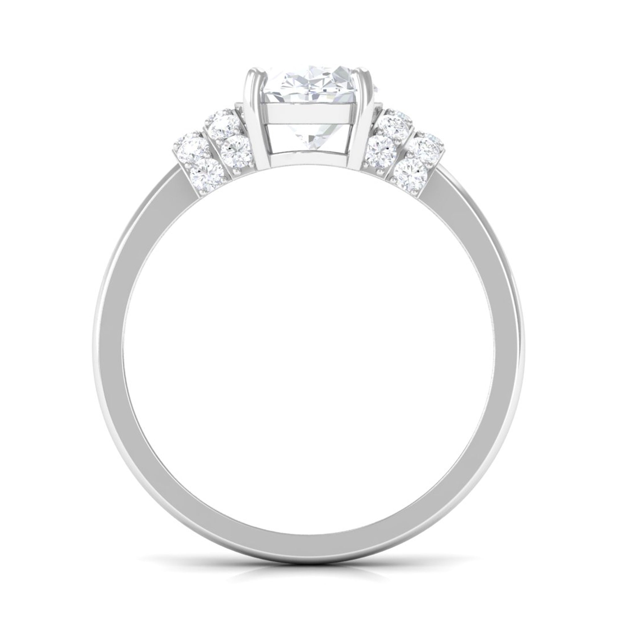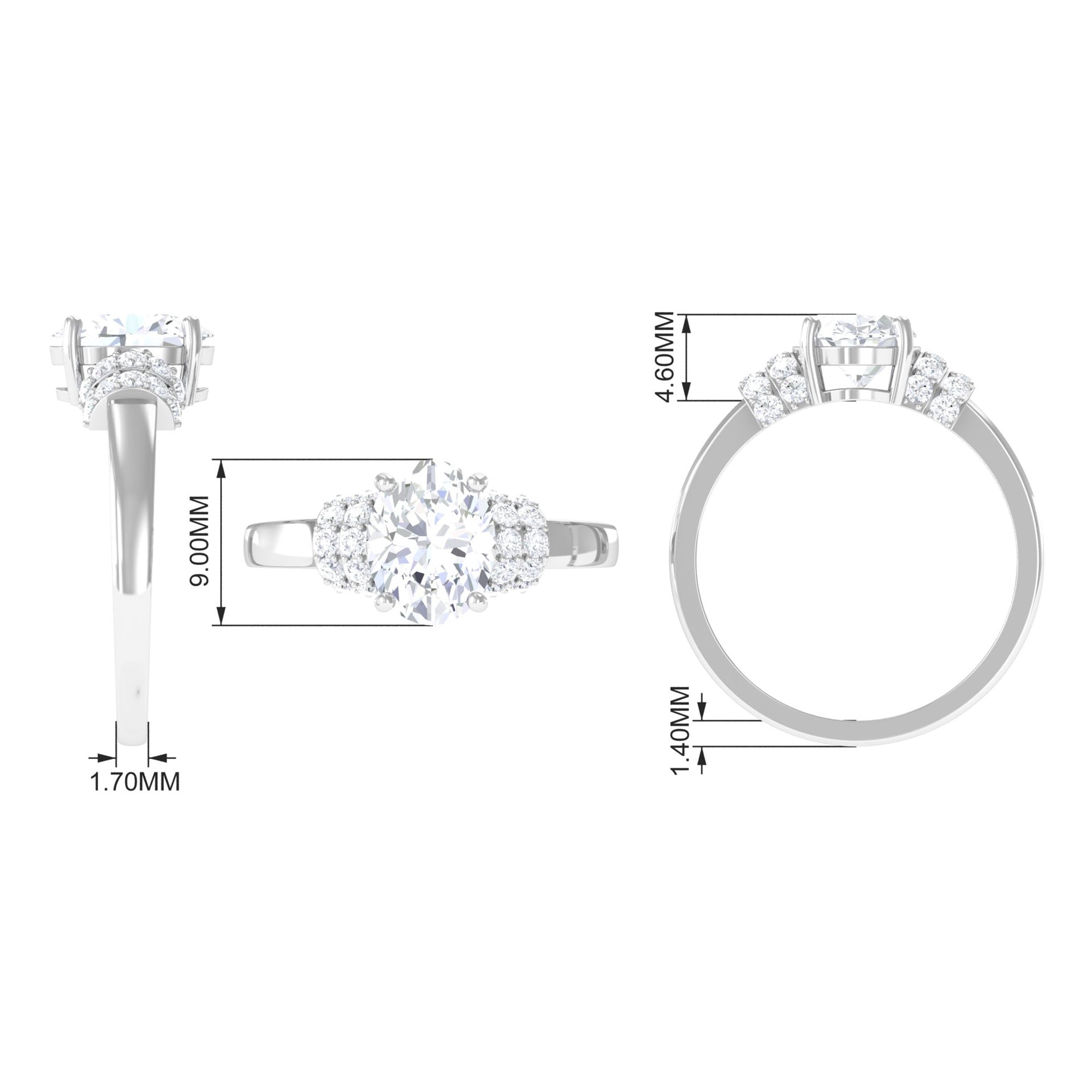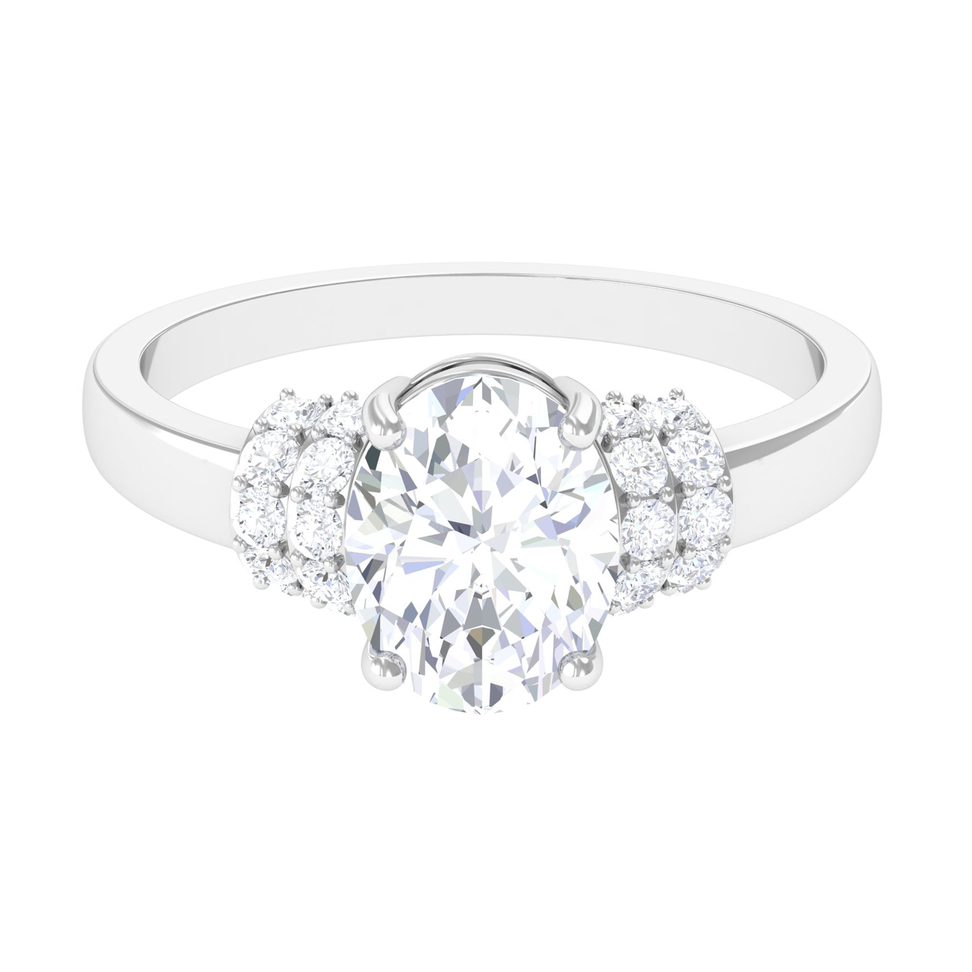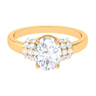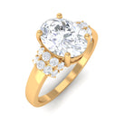 Enhance your elegance with this phenomenal Zircon Engagement Ring. It features a captivating Oval Cut Cubic Zirconia on a unique shank in a prong setting, with a collar of Round Brilliant Zircon. A must-have addition to your collection.