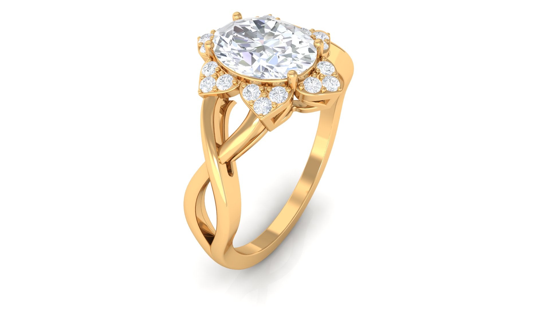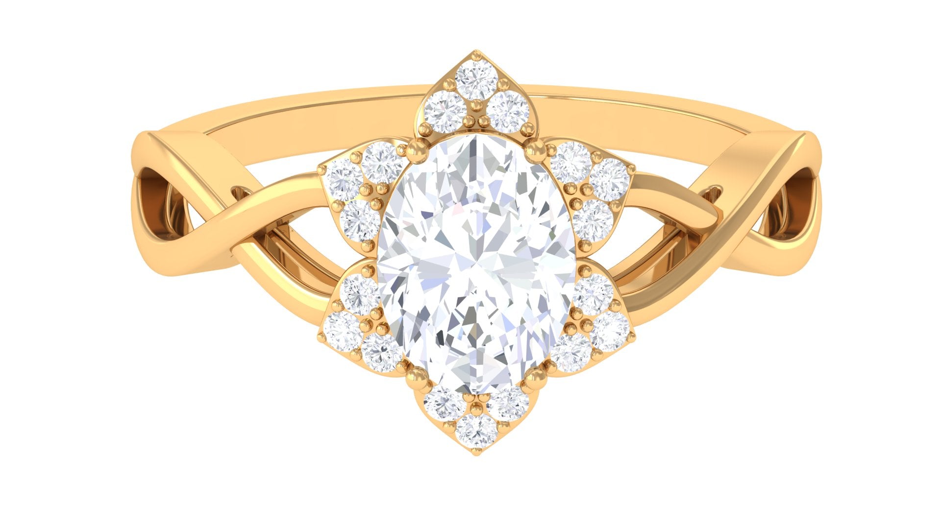 The Oval Cut Zircon in Prong Setting with Floral Halo and a Braided design on Solitaire Engagement Ring, show how much you love her.