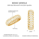 Modern in nature, it is a Wedding Band for Women adorned in Round Brilliant Moissanite Gemstone in an Pave Setting. The Classic Band is a stunning piece loveable to wear and gets a lot of compliments. The beautiful design of this Band Ring will make your special one awestruck. This Statement Band Ring beholds the shine of D-VS1 Quality Moissanite which will make the occasion memorable forever. This Wedding Anniversary Band undergoes strict quality checks to ensure the top-notch quality of this ring. This Certified Moissanite Ring will be delivered to you in the classic jewelry box with the certificate of gemstone authentication.
