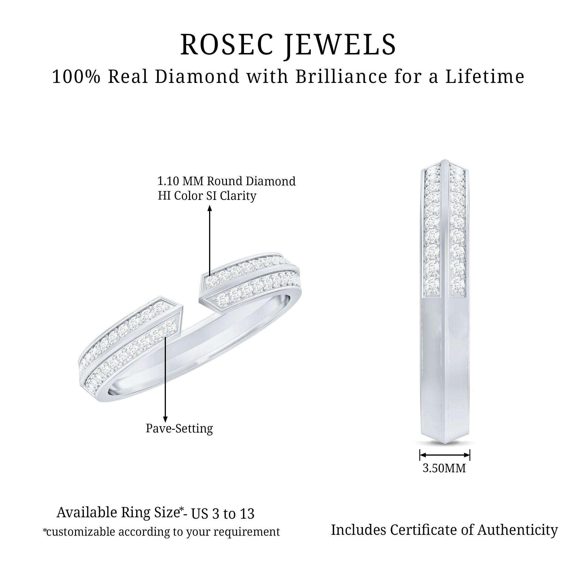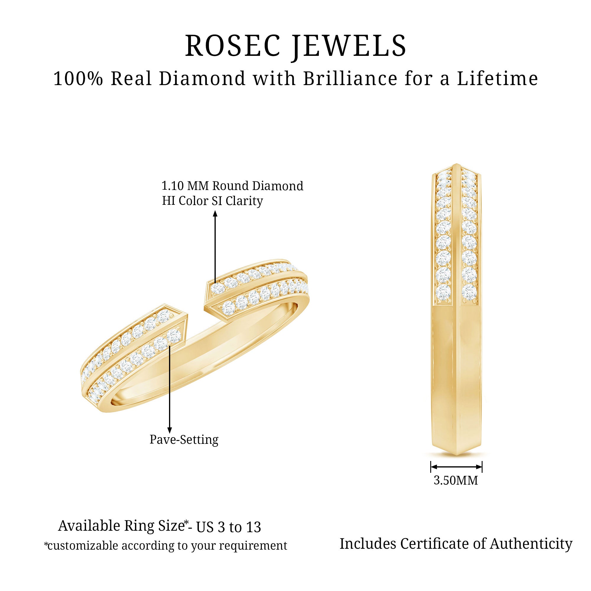 Indulge in the harmonious fusion of sophistication and masculine allure with this Contemporary Cuff Ring. Adorned with radiant Round Shape Diamond gemstones elegantly nestled in a Pave Setting, this exquisite ring is designed to make a lasting and memorable statement.