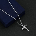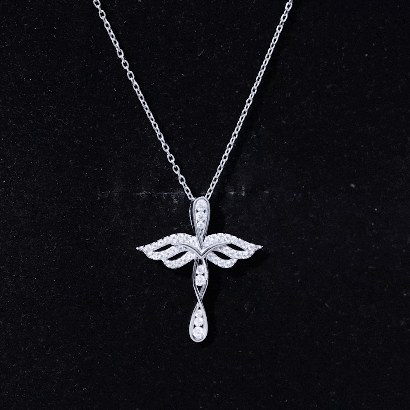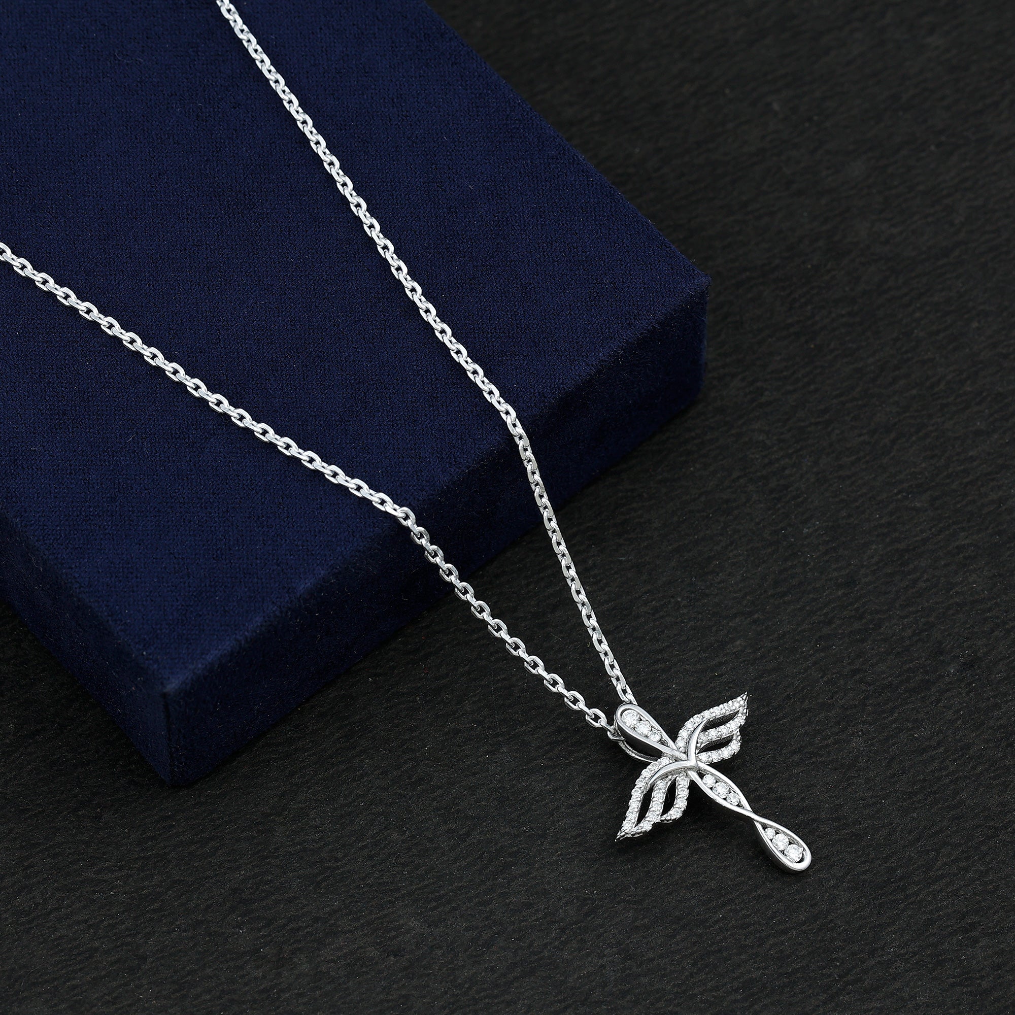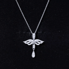 Pave Set Moissanite Angel Wings Cross Necklace with Silver Chain