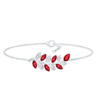 Enhance your wrist with this Leaf Bracelet, featuring marquise & pear shape Lab Created Ruby set in prong setting. Express your affection by presenting this Lab Created Ruby Bracelet to your beloved; its captivating charm makes it a wonderful and considerate gift for her. The exquisite harmony between the luxurious AAAA Quality Created Ruby stones narrates a story of balance, where sophistication intertwines with commitment. Meticulously crafted and designed to captivate, this Minimal Bracelet serves as a genuine symbol of everlasting love. Ideal for a proposal, anniversary, or significant promise, this Chain Bracelet for Women stands as an unforgettable representation of your deepest intentions. Delivered in a signature jewelry box and offered in a range of ring sizes, this Bracelet is prepared for gifting and ready to commence the next chapter of your romantic journey.