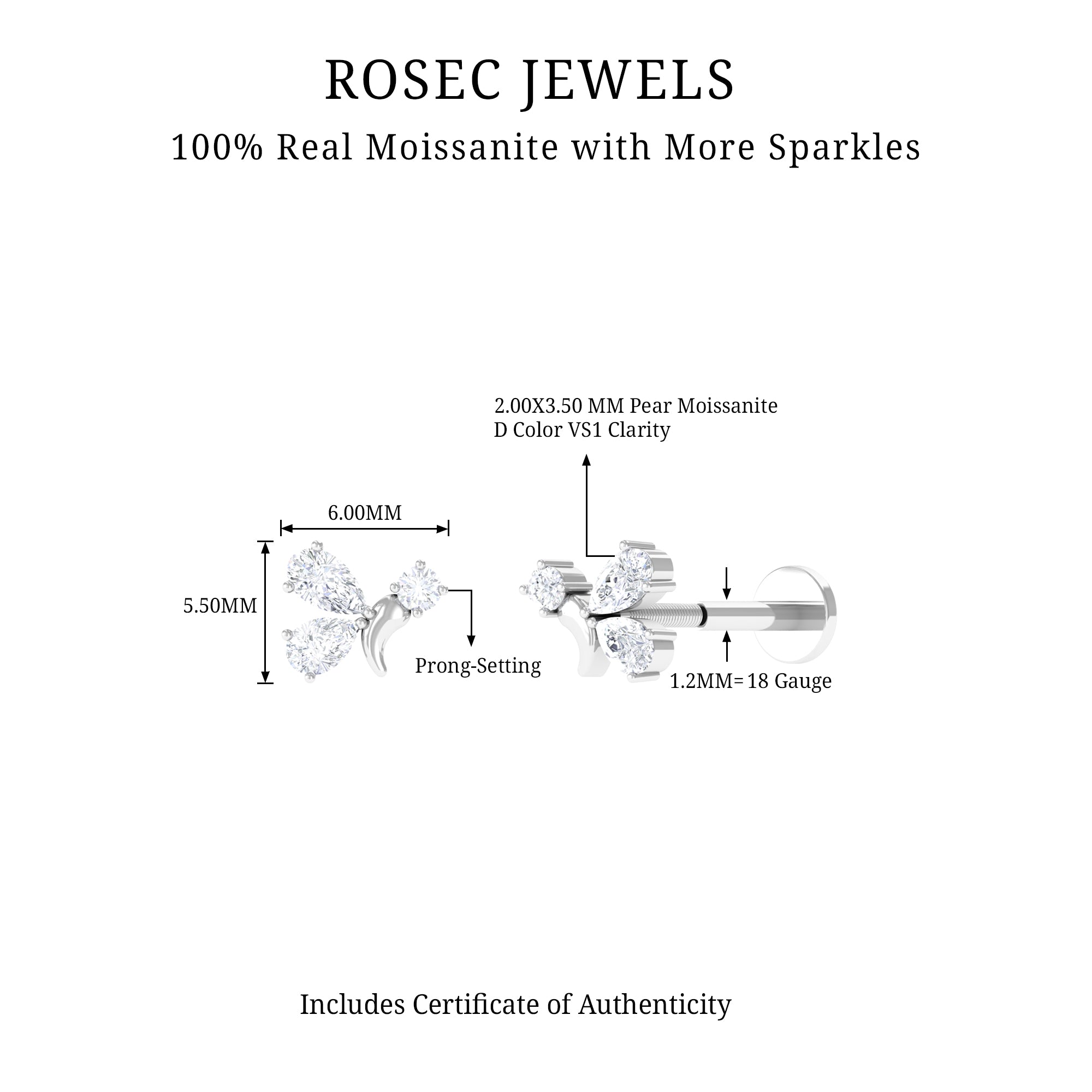 Our Moissanite Fly Earring is a captivating piece of jewelry that will leave everyone enchanted. It features Round and Pear Shape Moissanites set in Solid Metal, making it an eye-catching Piercing Jewelry. You can wear it on your Helix, Cartilage, or Upper Lobe Piercing. This Helix Earring would make a wonderful gift for her, adding happiness and laughter to her day.