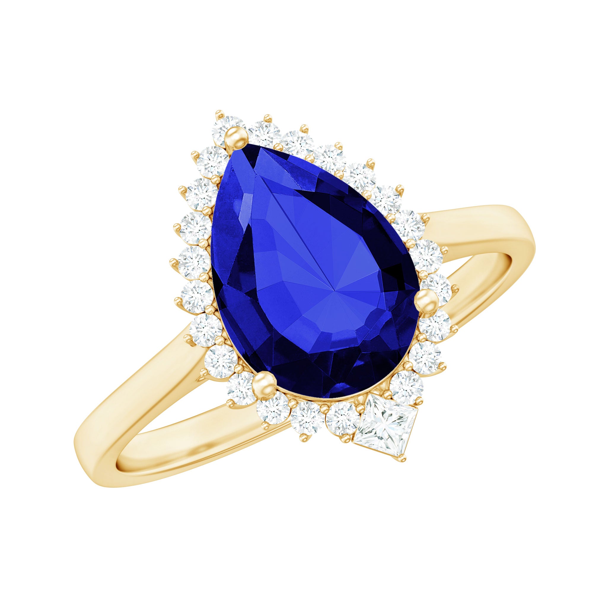 Pear Created Blue Sapphire Cocktail Halo Ring with Diamond