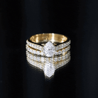 This Lab Grown Diamond Ring Set is unique, bold, and exquisite, serving as a significant symbol of love that beautifully captures a couples journey together. With a commitment symbol to embark on a new chapter in life, this eye-catching Diamond Bridal Set boasts ideal brilliance, elegantly embracing romance and providing a perfect celebration to express your love. Adorned with a 6X8 MM Pear Shaped Lab Grown Diamond in Prong Setting, complemented by the brilliance of side stones. The wedding band is also embellished with lab diamonds that grace half of the band for a stunning stacking appearance. This Teardrop Engagement Ring Set is utterly enchanting, radiating grace and undeniable charm, making it perfect for celebrating your unique love. Showcasing the EF Color VS Clarity Lab Diamond, it sparkles brilliantly. Enhance the beauty of your special day with this breathtaking Diamond Engagement Ring Set, a true showstopper with a timeless design that will be treasured for years to come. Make a lasting impression with this Diamond Wedding Set, the ideal ring set for your beloved.