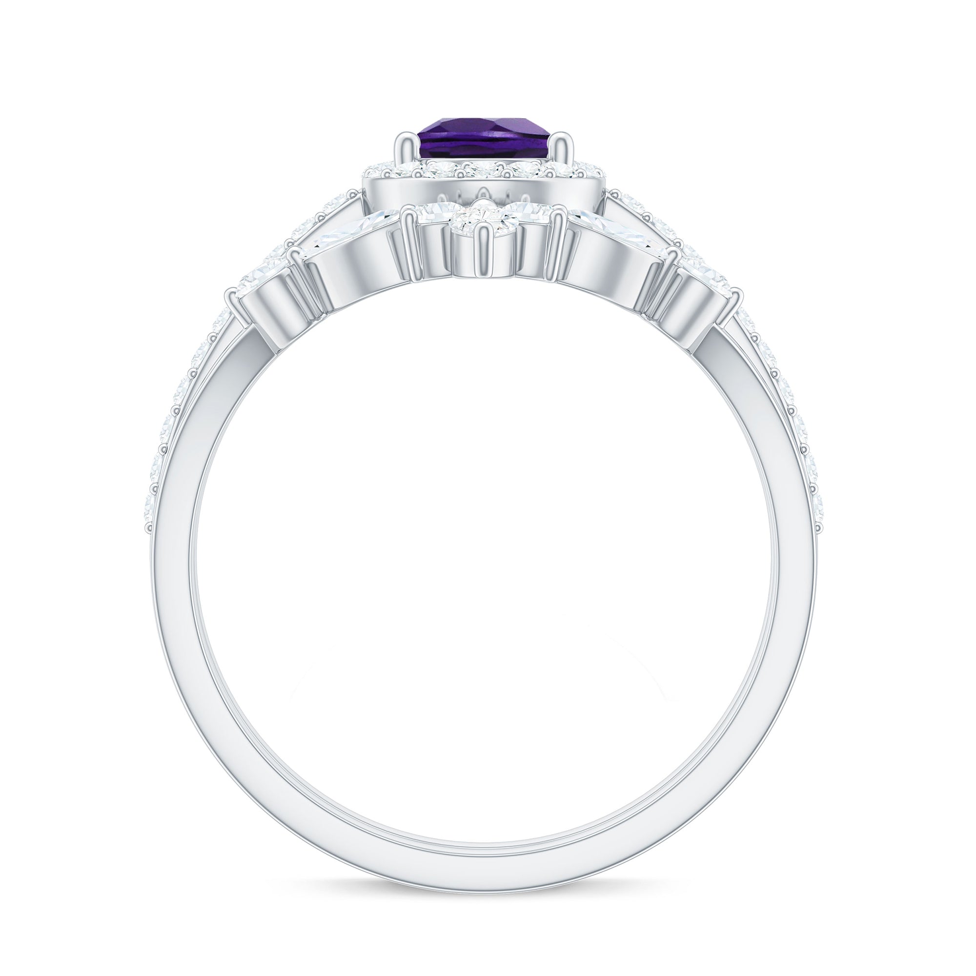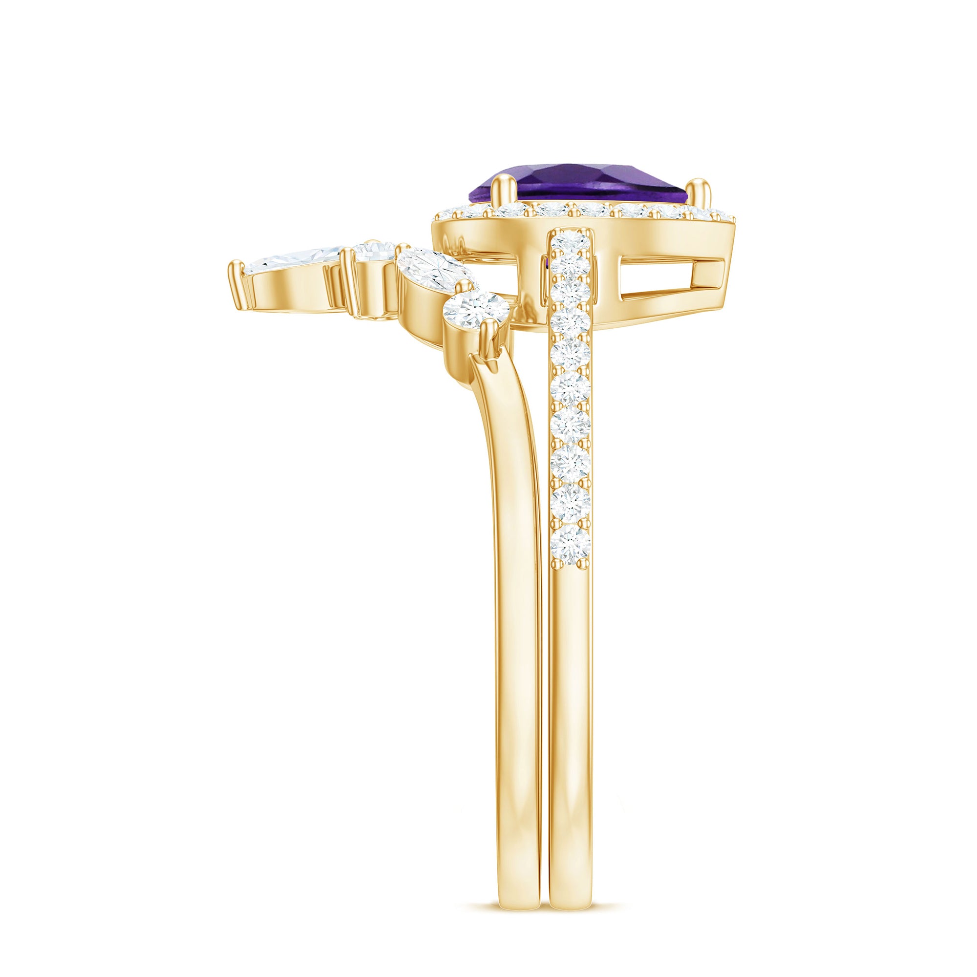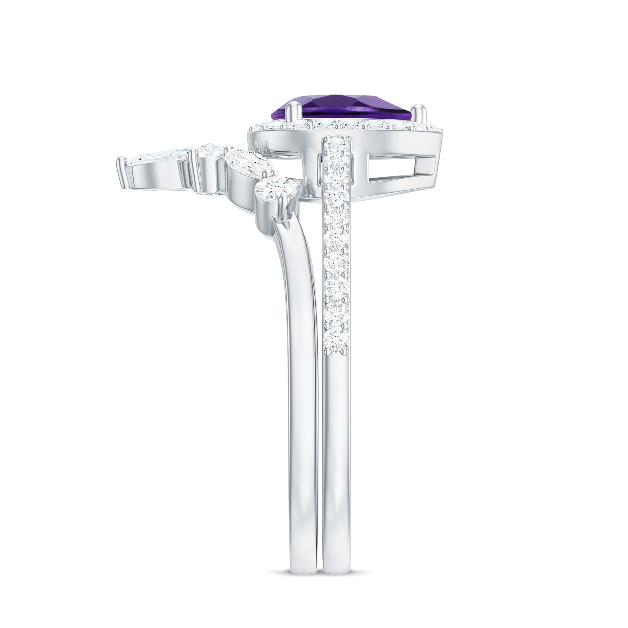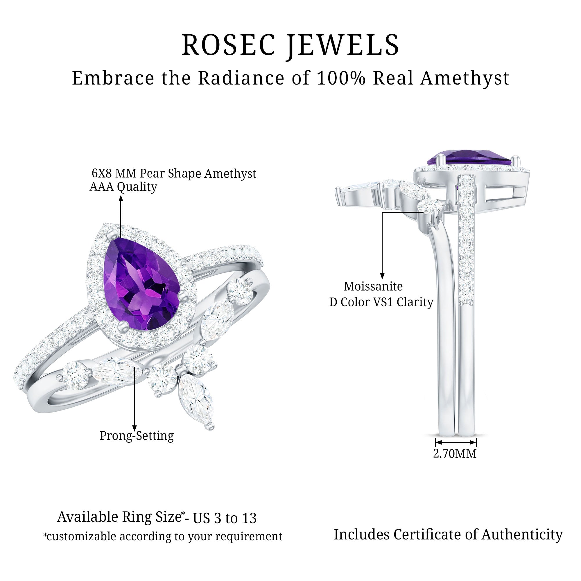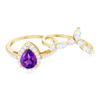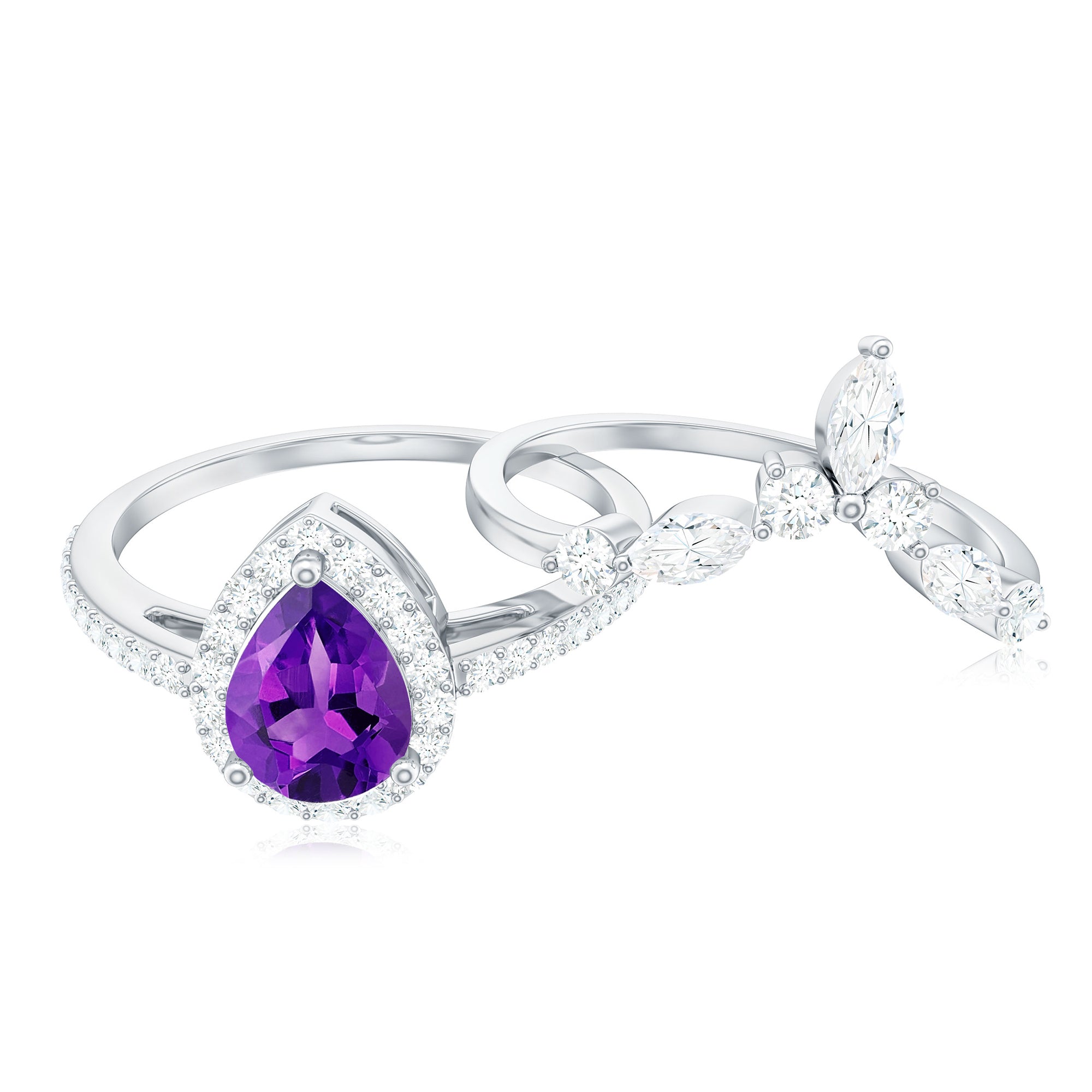 Pear Cut Amethyst Designer Bridal Ring Set with Moissanite