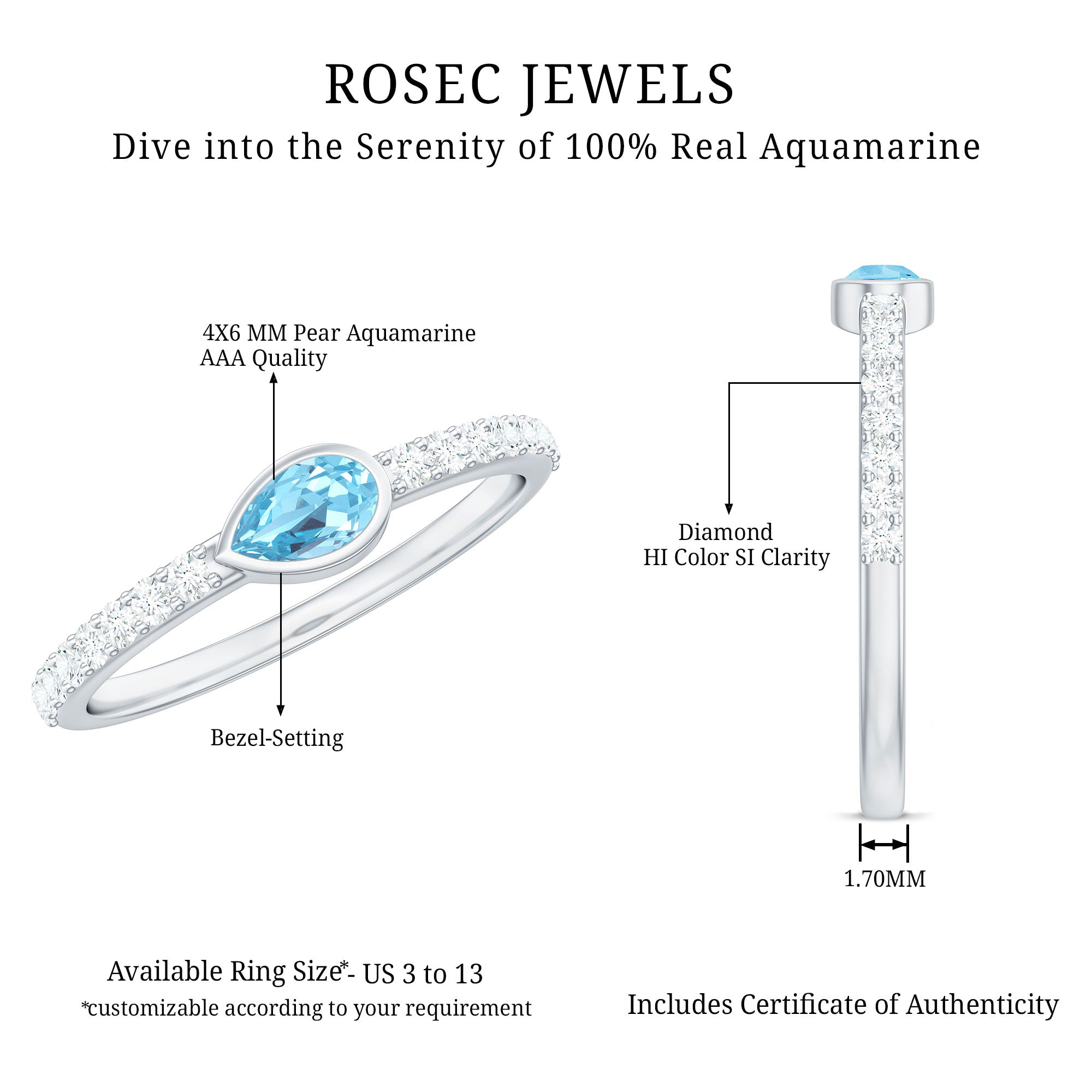 Celebrate a promise like no other with this Aquamarine East West Promise Ring, accompanied by Diamond, a captivating symbol of commitment.