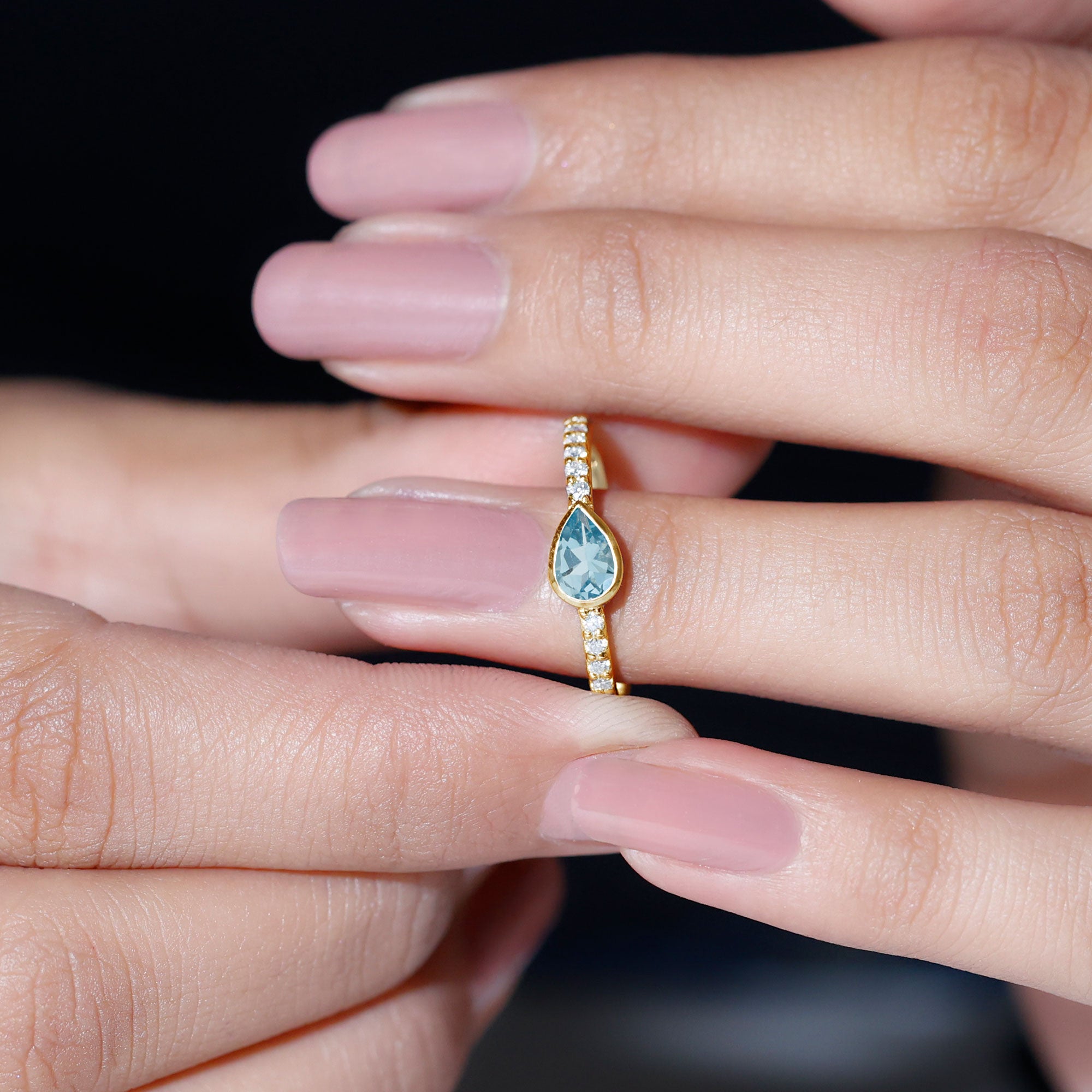 Pear Cut Aquamarine East West Promise Ring with Diamond