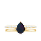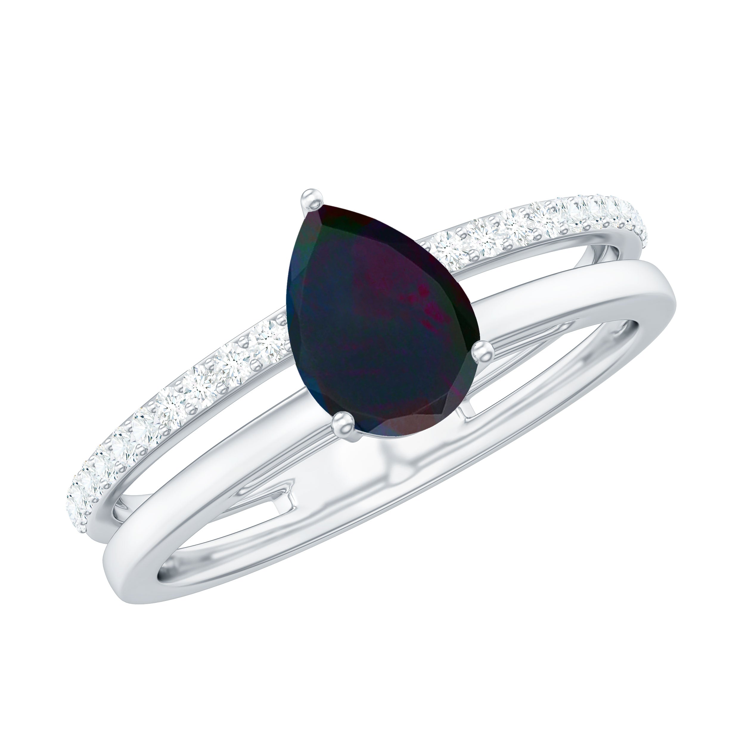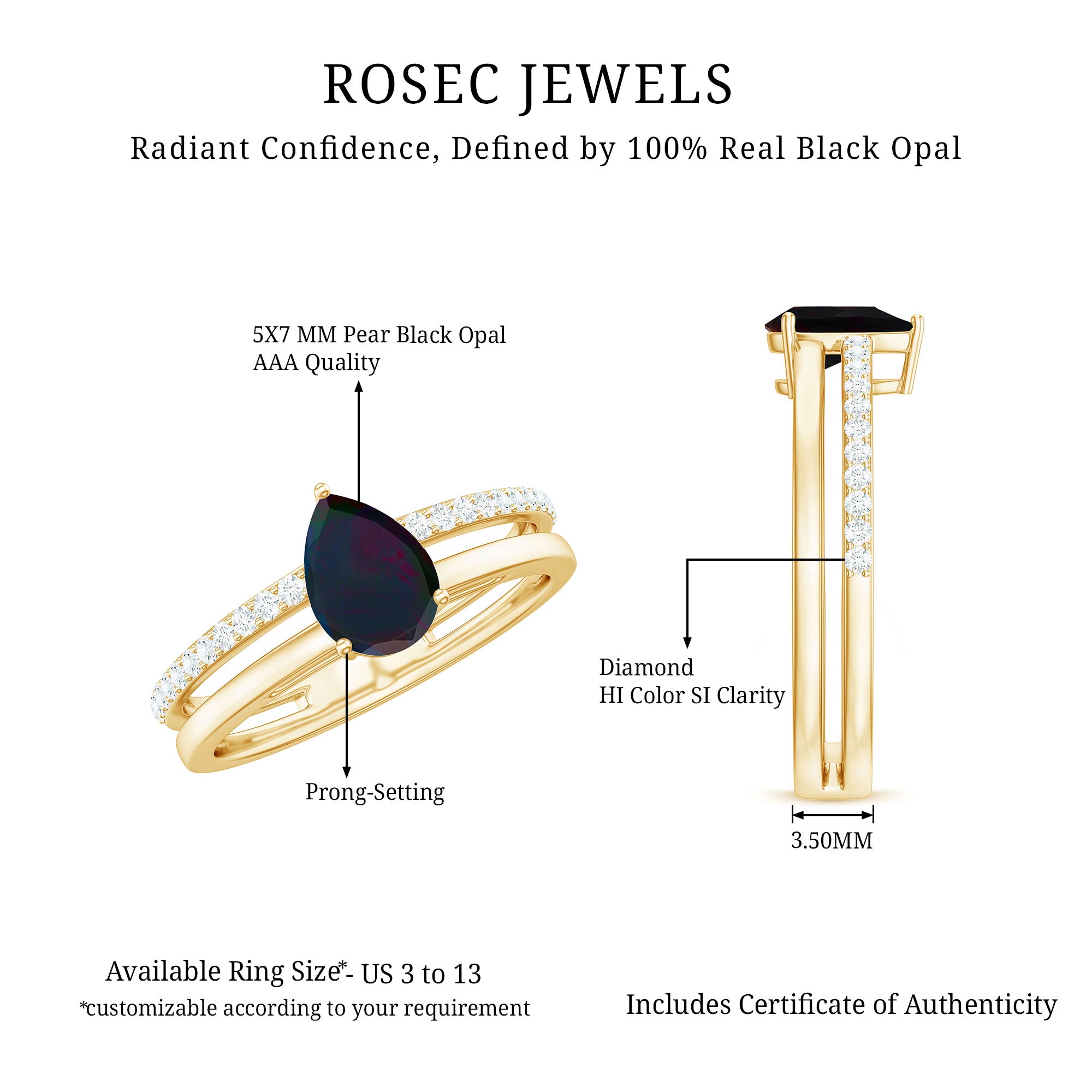 Pear Cut Black Opal and Diamond Double Band Engagement Ring