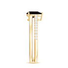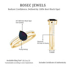 Embrace the uniqueness and understated elegance of this captivating Black Opal Ring. The Pear Cut Black Opal takes center stage in a secure prong setting, complemented by sparkling Round Diamond stones on the engagement ring. The double band design adds a touch of glamour, making it the perfect accessory to elevate your outfit and steal hearts with its timeless beauty.