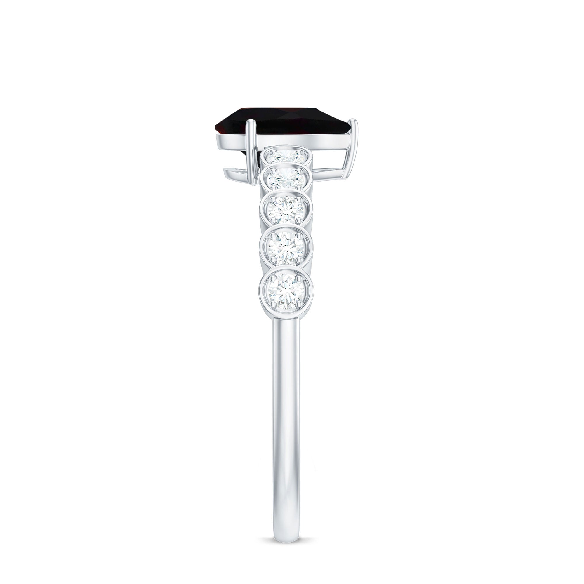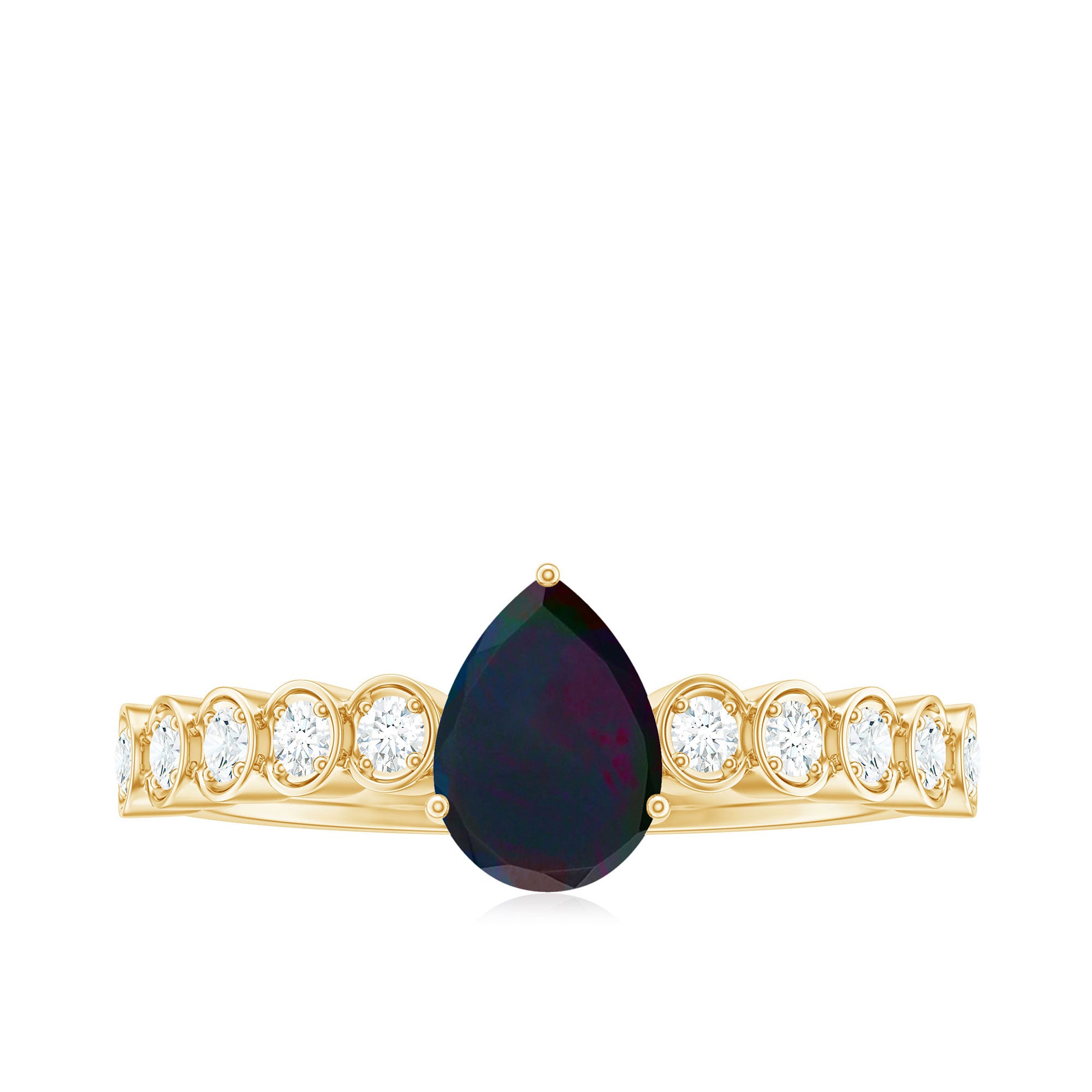 Pear Cut Black Opal and Diamond Side Stone Engagement Ring