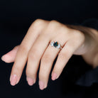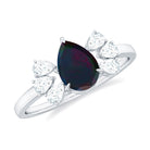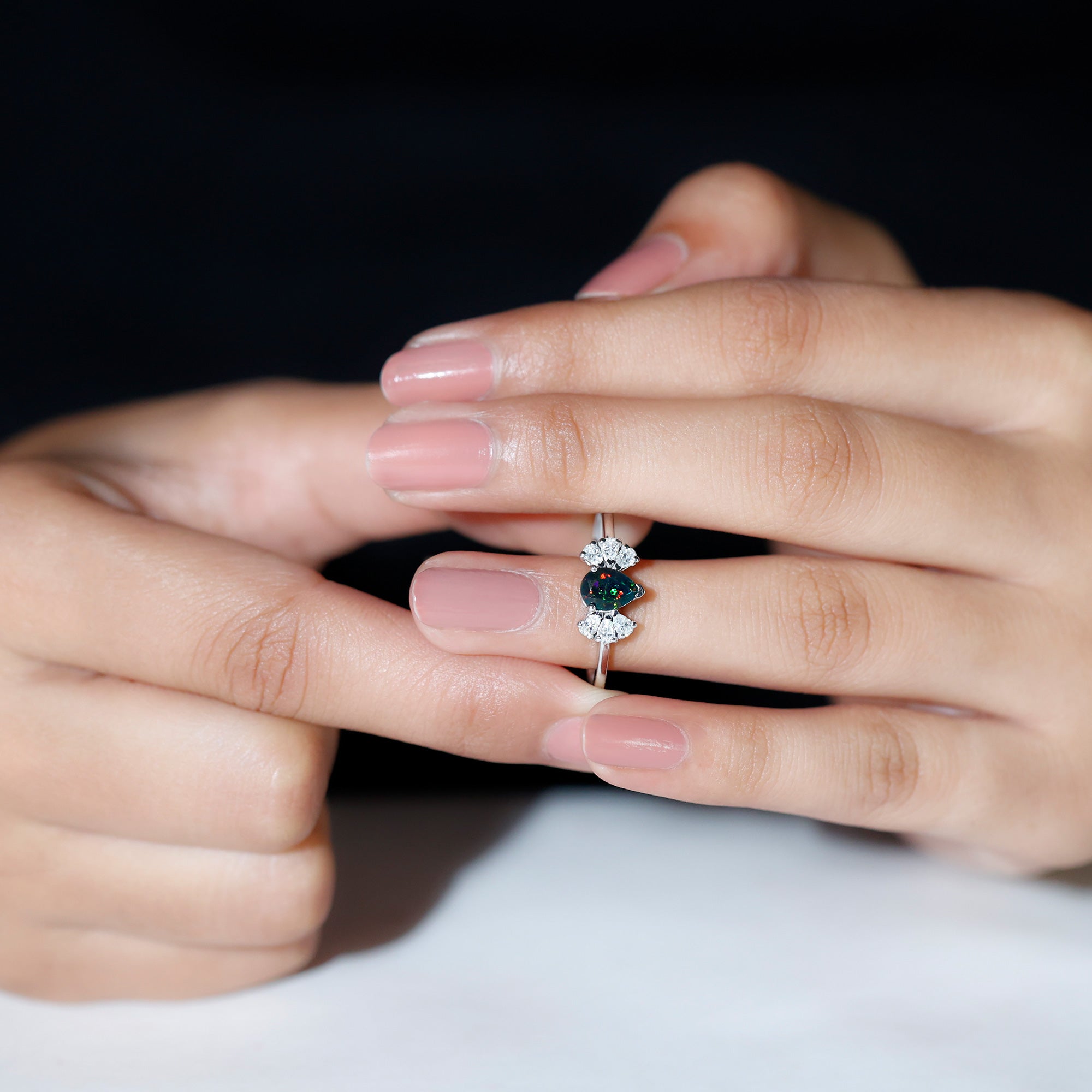 Pear Cut Black Opal Solitaire Engagement Ring with Diamond Trio