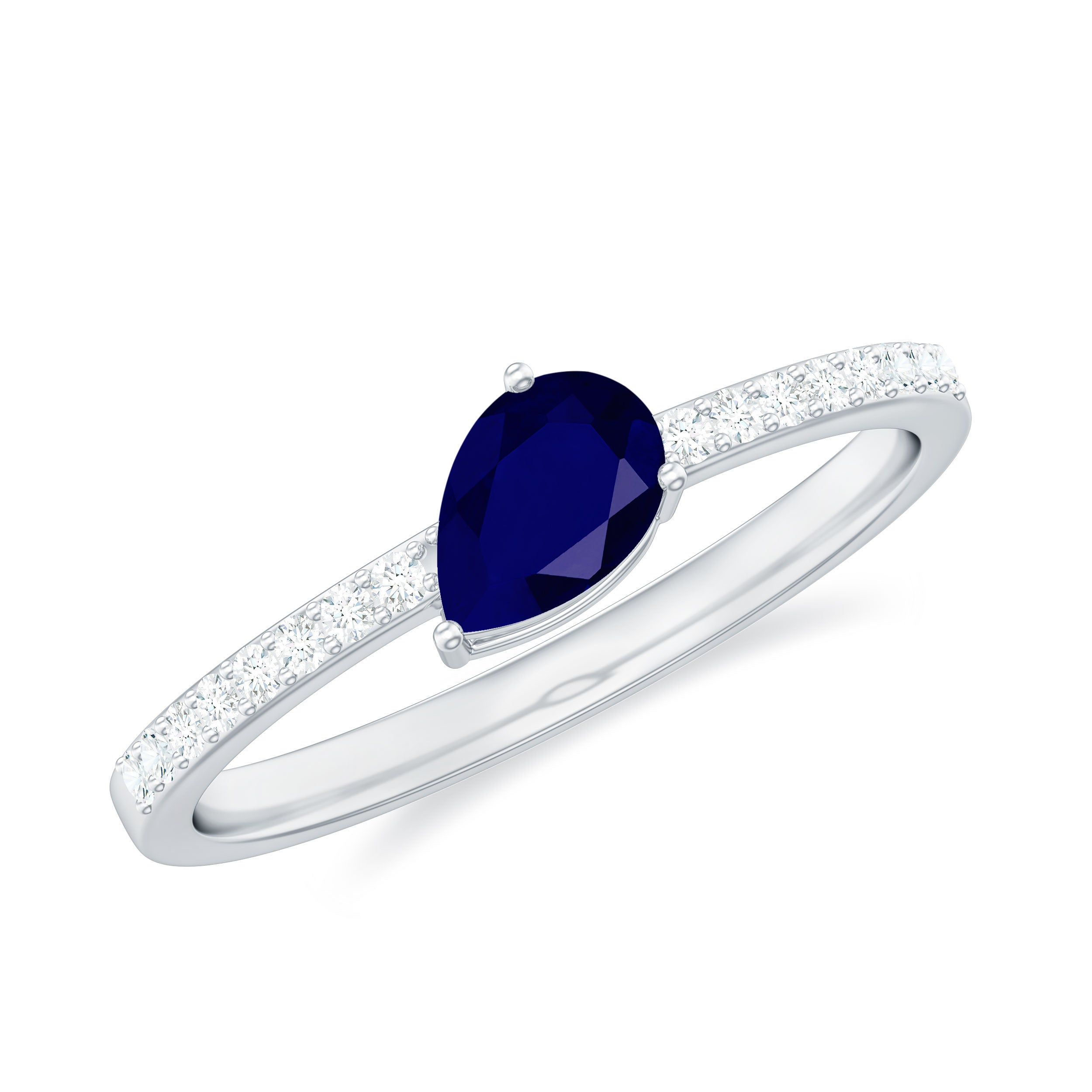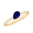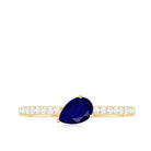 Pear Cut Blue Sapphire Solitaire Ring with Diamond Side Stones