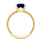 Pear Cut Created Blue Sapphire Solitaire Ring with Hidden Moissanite