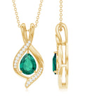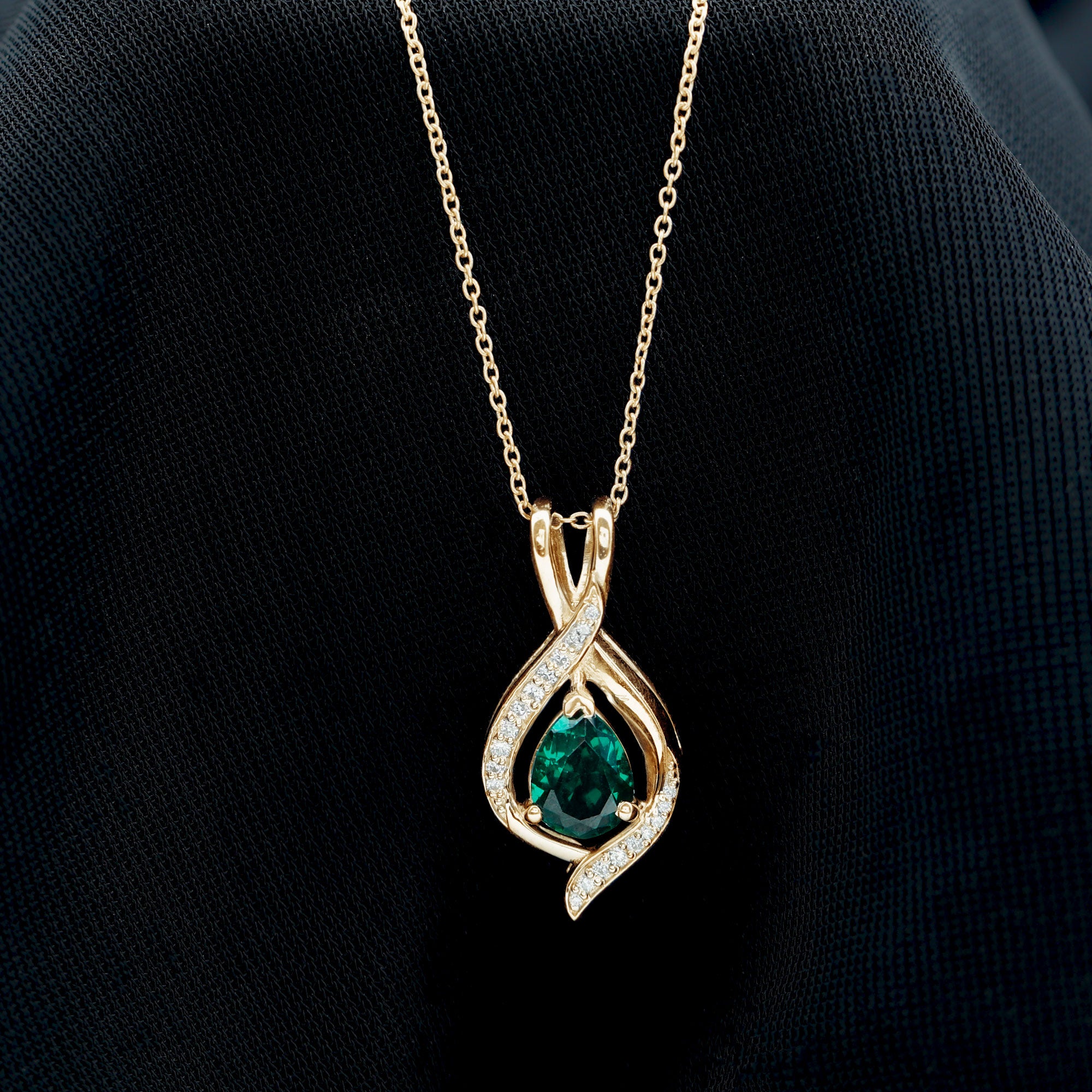 Pear Cut Created Emerald Teardrop Pendant with Moissanite