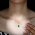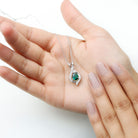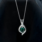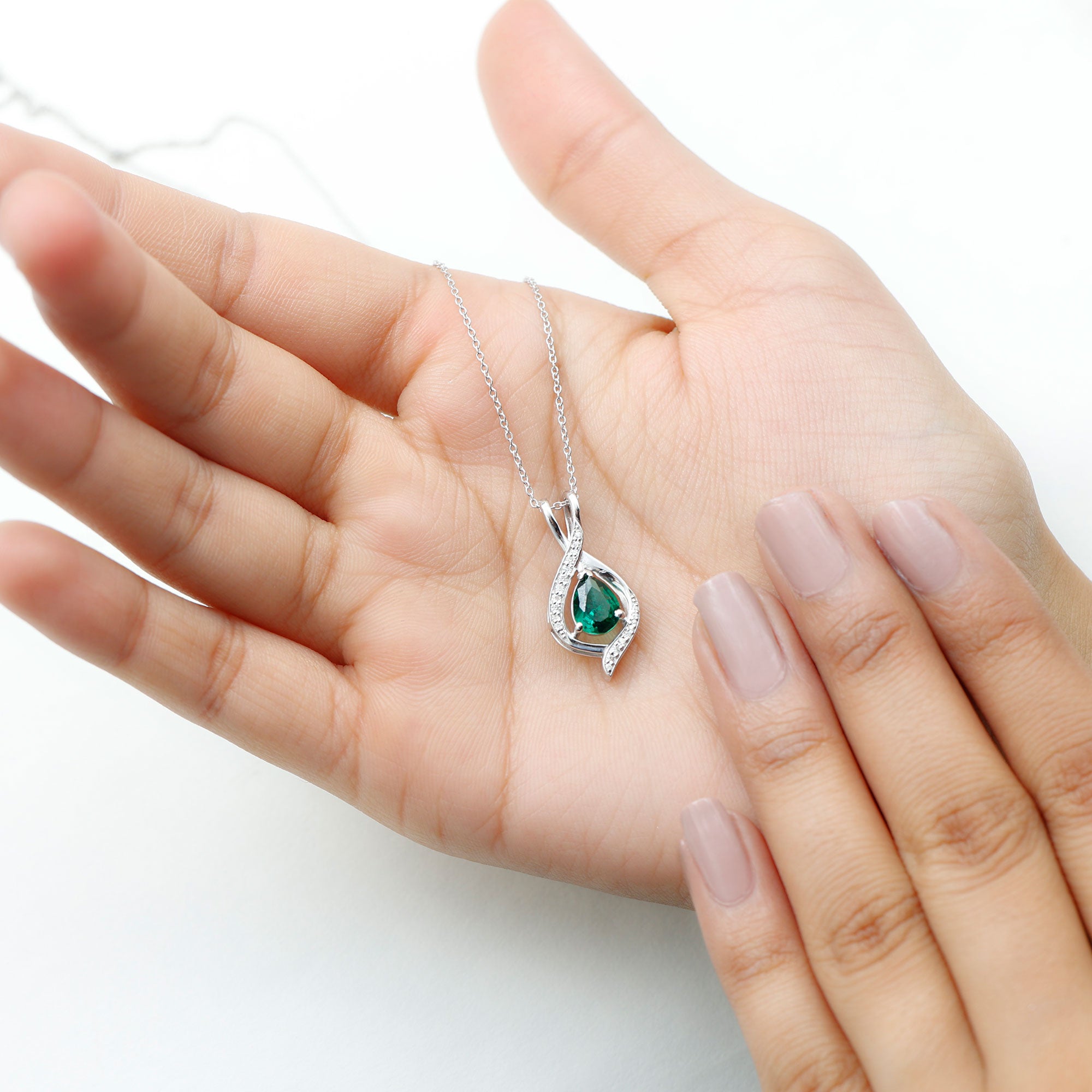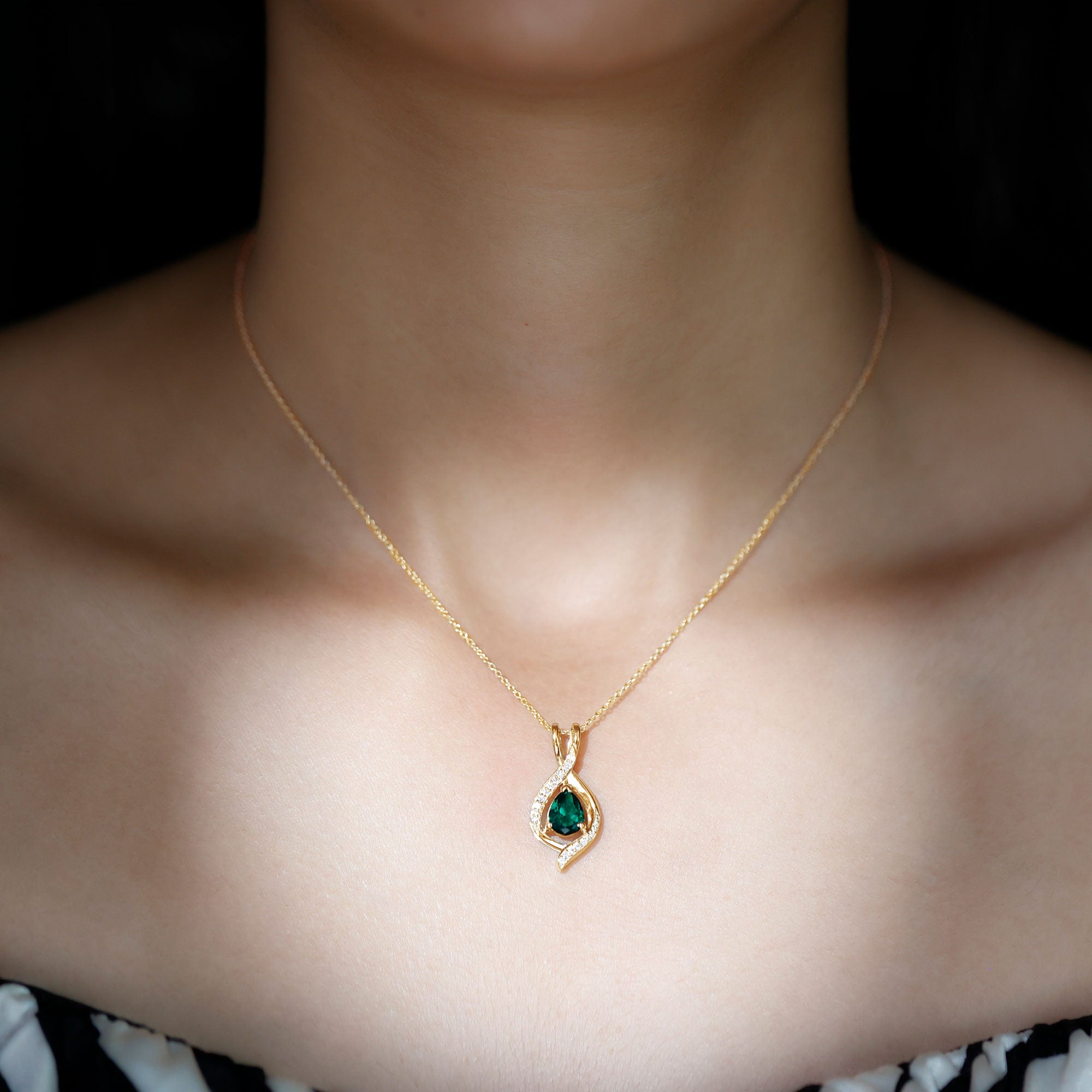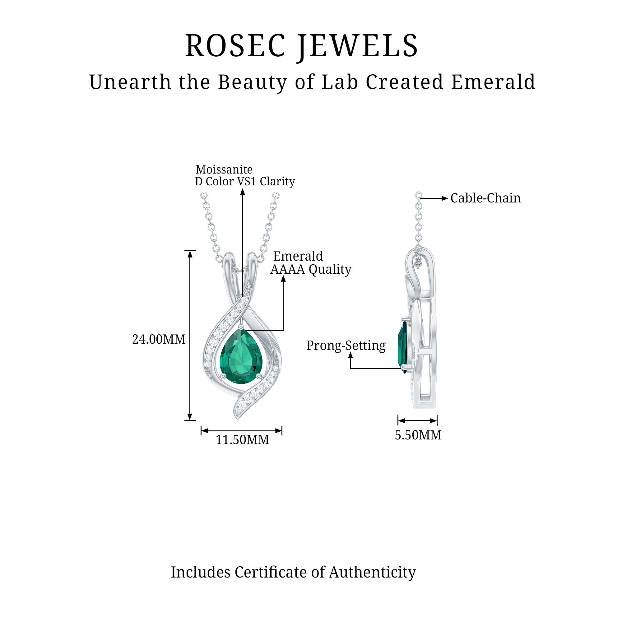 This Lab Grown Emerald Pendant Necklace is a classic piece that is precisely crafted for your special look. It features a 6X8 MM Pear Shaped Lab Created Emerald securely placed in Prong Setting and is adorned with round shape smaller moissanite making an infinity design that adds charm. This Teardrop Necklace beholds the classic shine of AAAA Quality Lab Grown Emerald making it the perfect dazzler for the special occasion. This pendant will be delivered to you in a classic jewelry box for further storage when not in use.