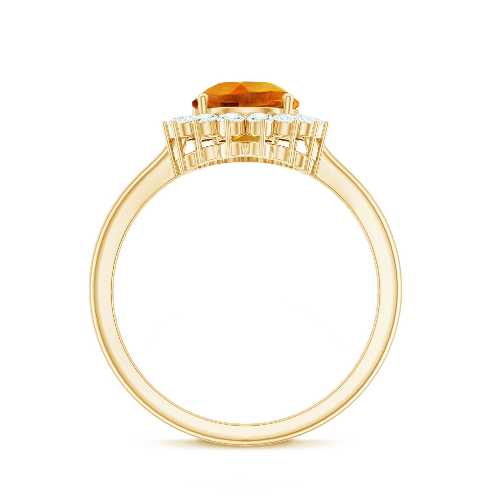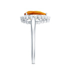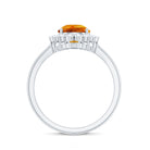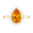 The unique Halo Engagement Ring is embellished with Pear Shaped Lab Created Orange Sapphire secured in 3 Prong Setting while dainty Round Shape Diamond surrounded as Halo. You can style this Created Orange Sapphire Ring with your everyday or party attires to make everyone a fan of your style.